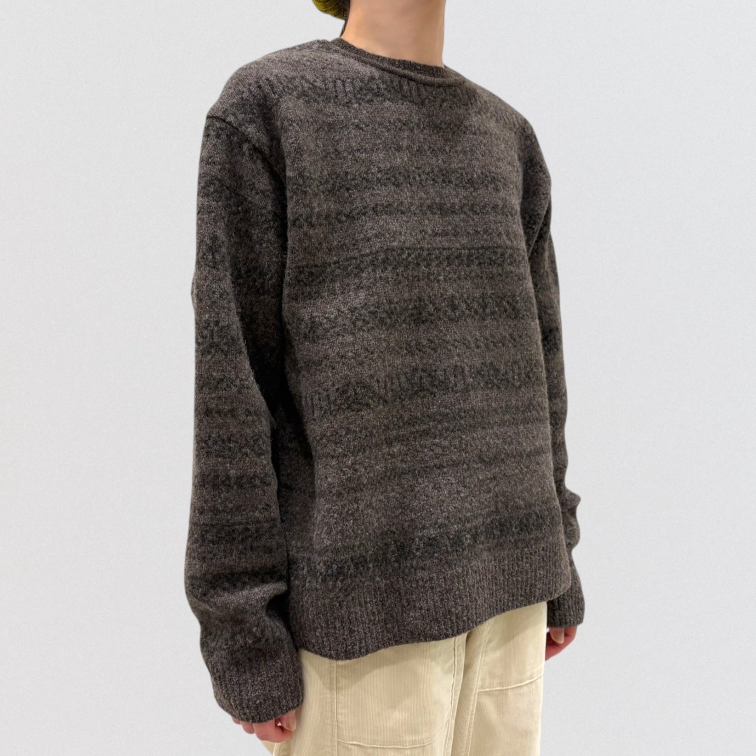 ふんわりとした毛羽感と上品なフェアアイル柄で、冬の装いにやさしい表情を添えるニット。
