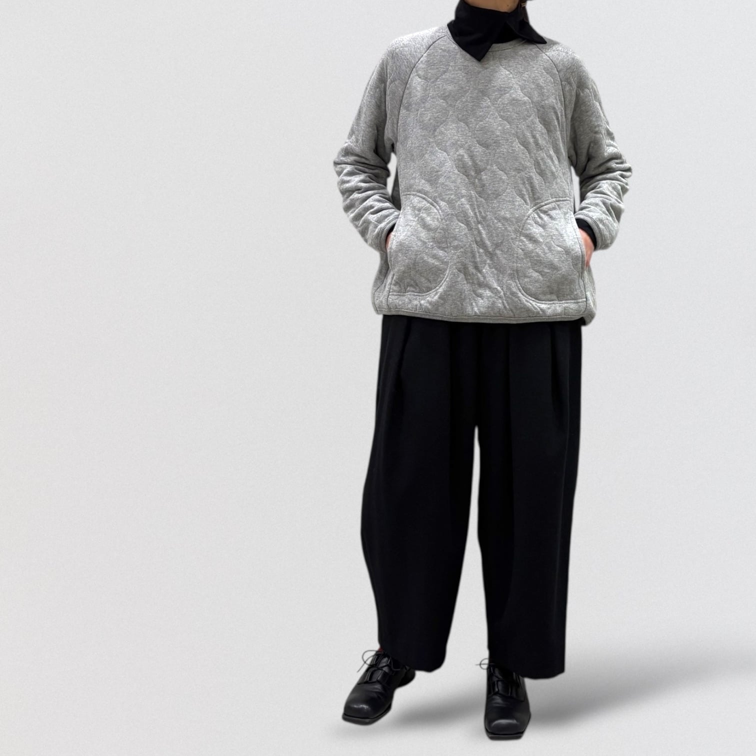 衿ぐり、袖口、裾はリブ処理をし型崩れもありません。