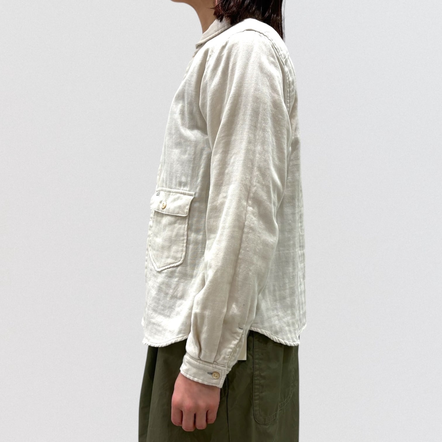 三重織ガーゼ生地を使用した、ワークシャツです。