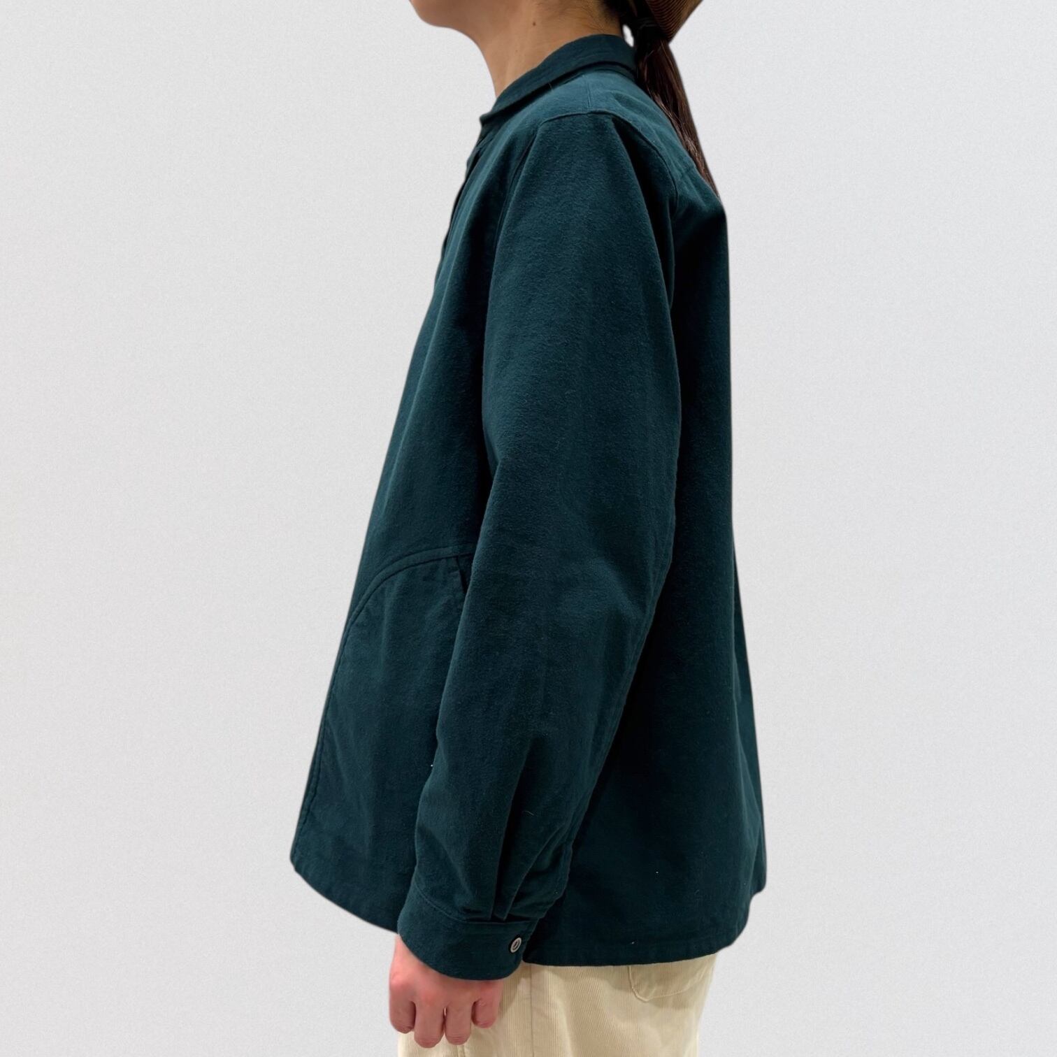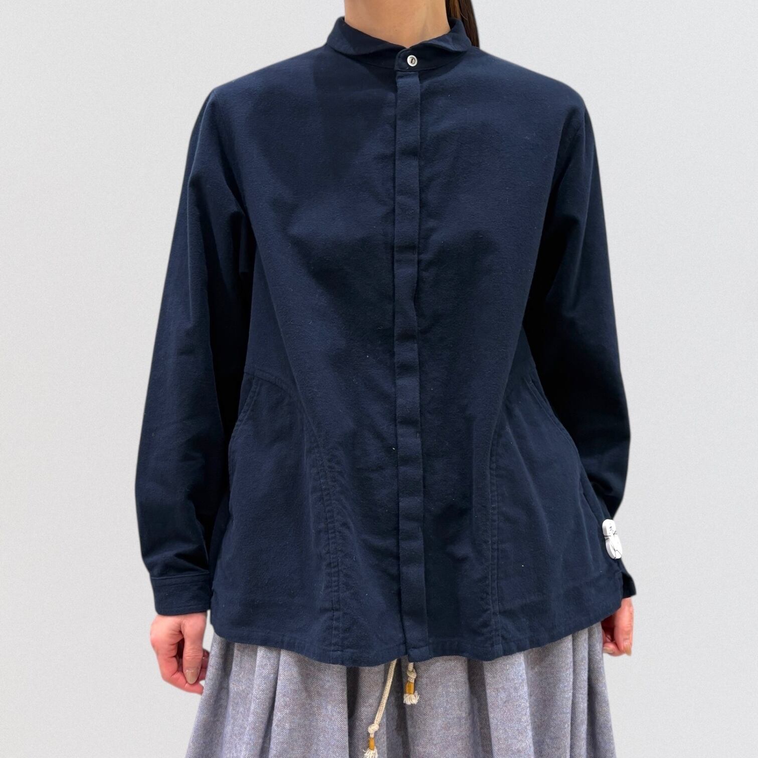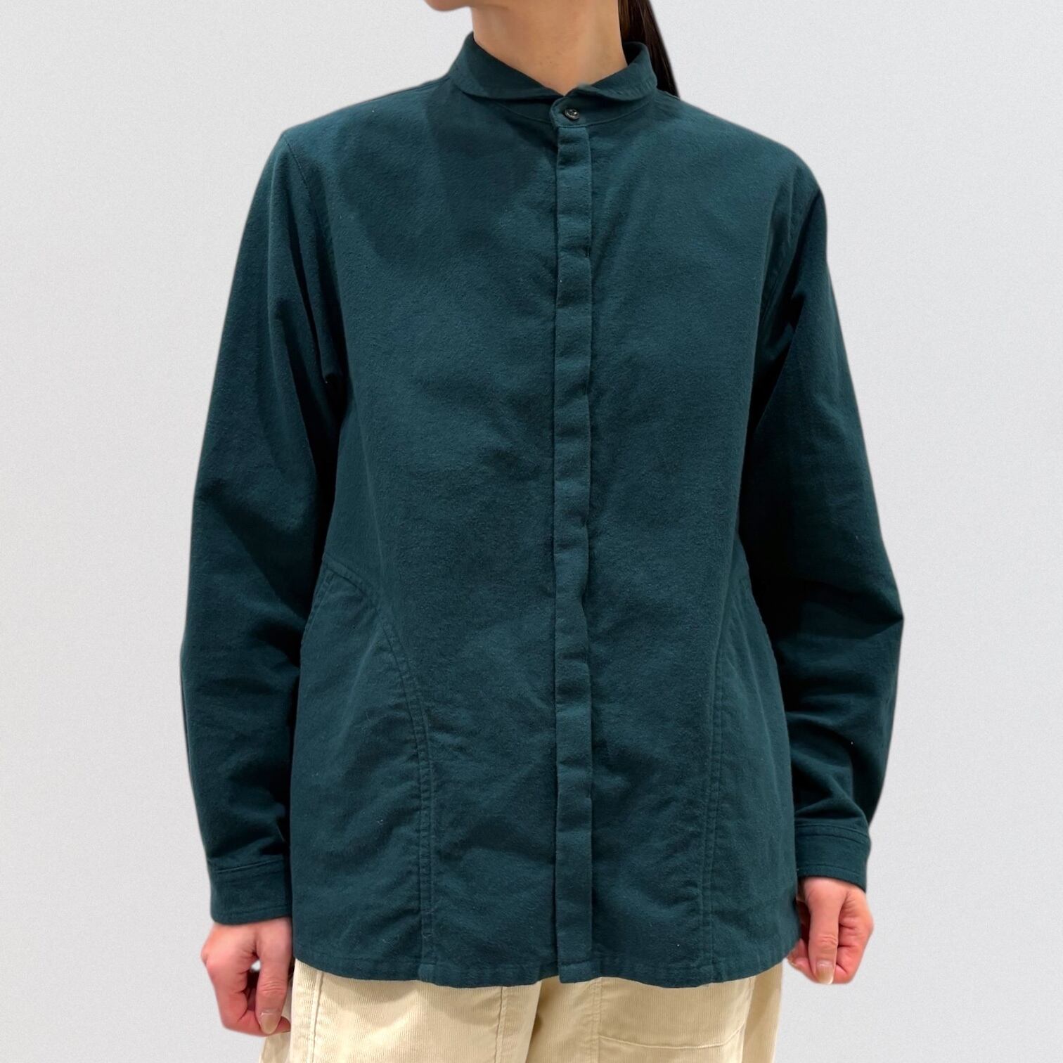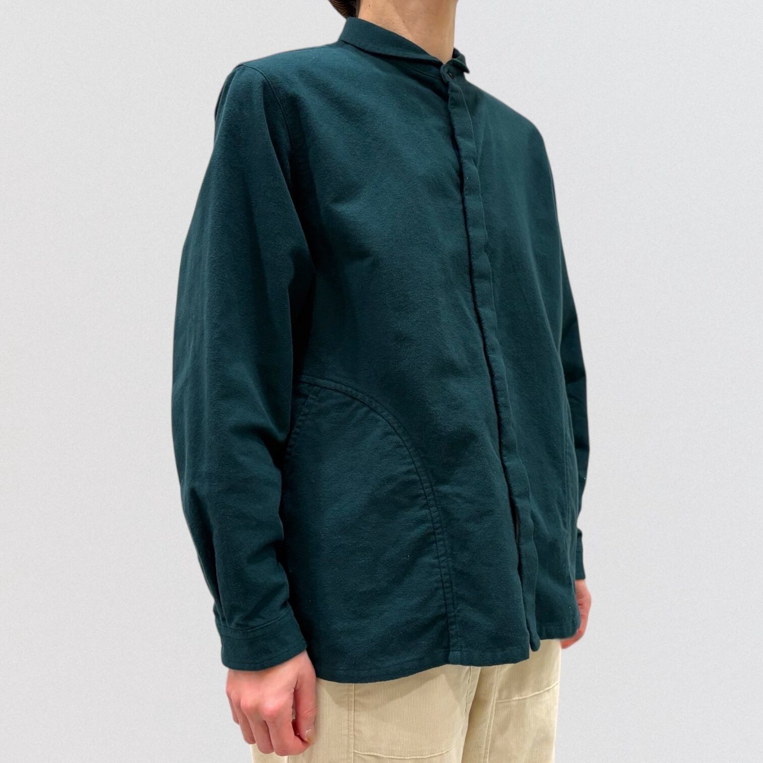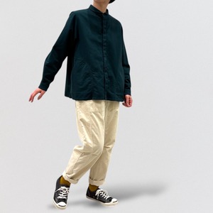 メンズヴィンテージウェアに見られるワークシャツを、vmらしいアレンジで仕上げたシャツです。
