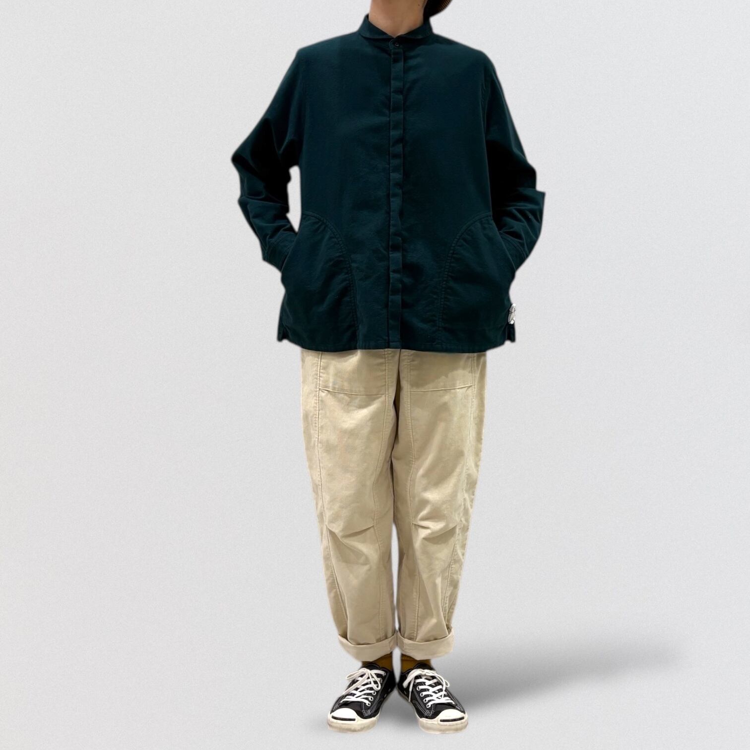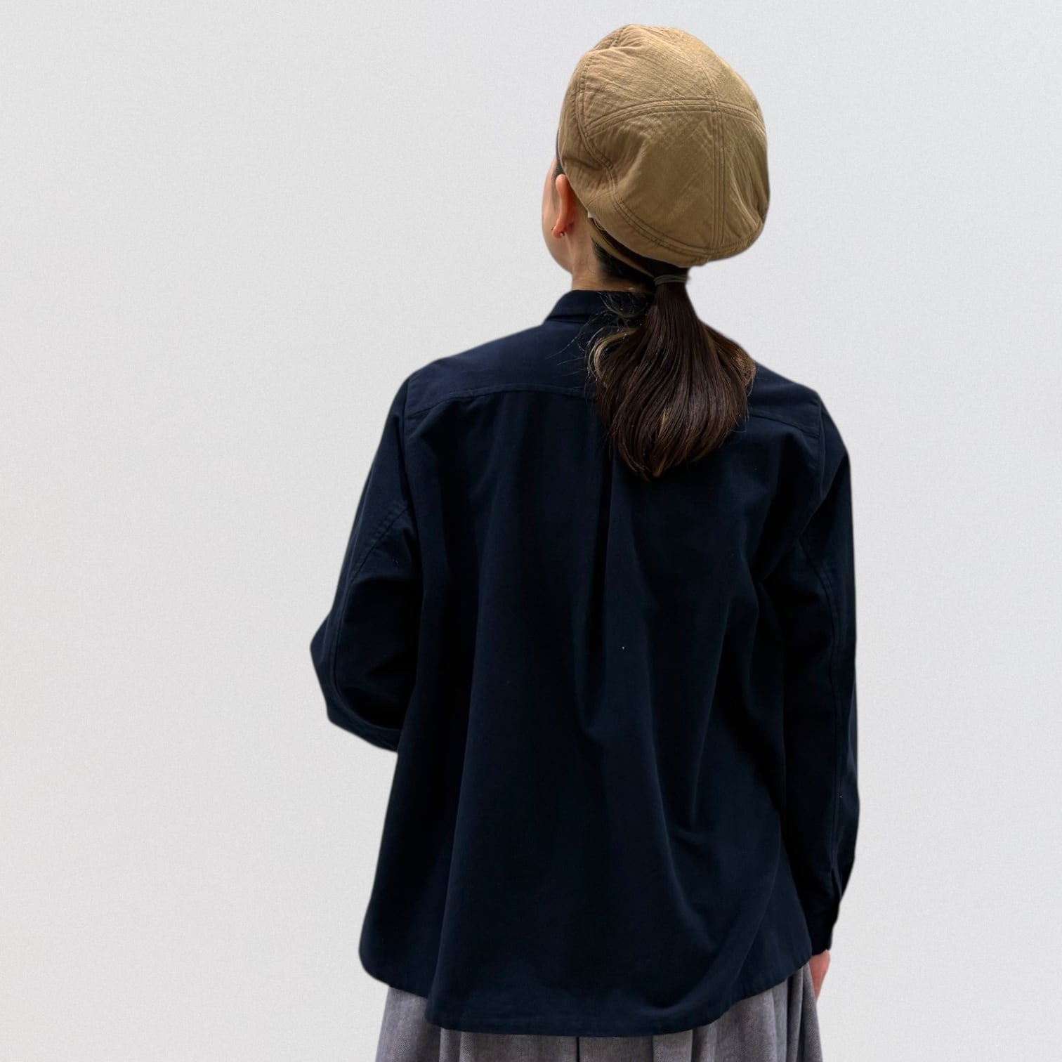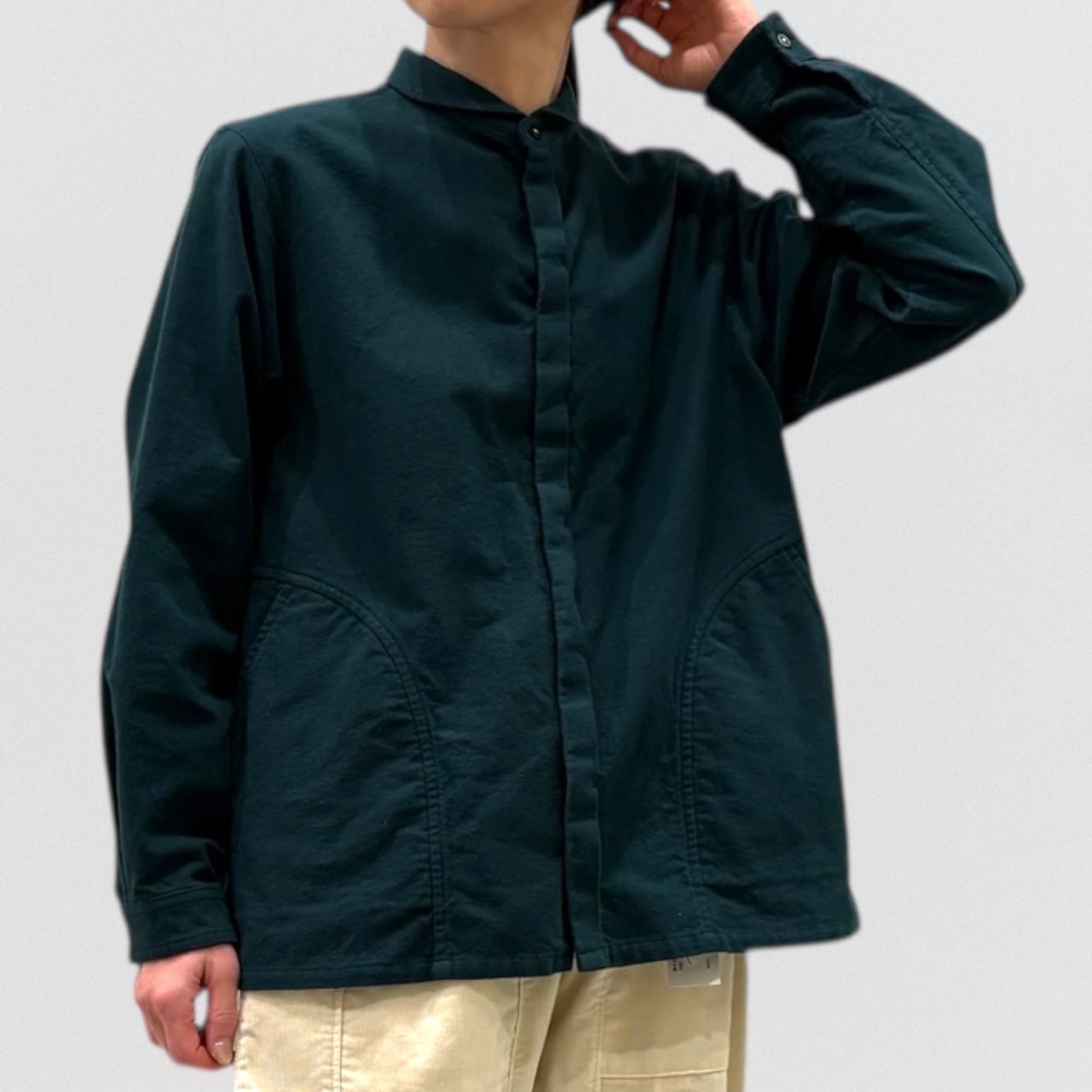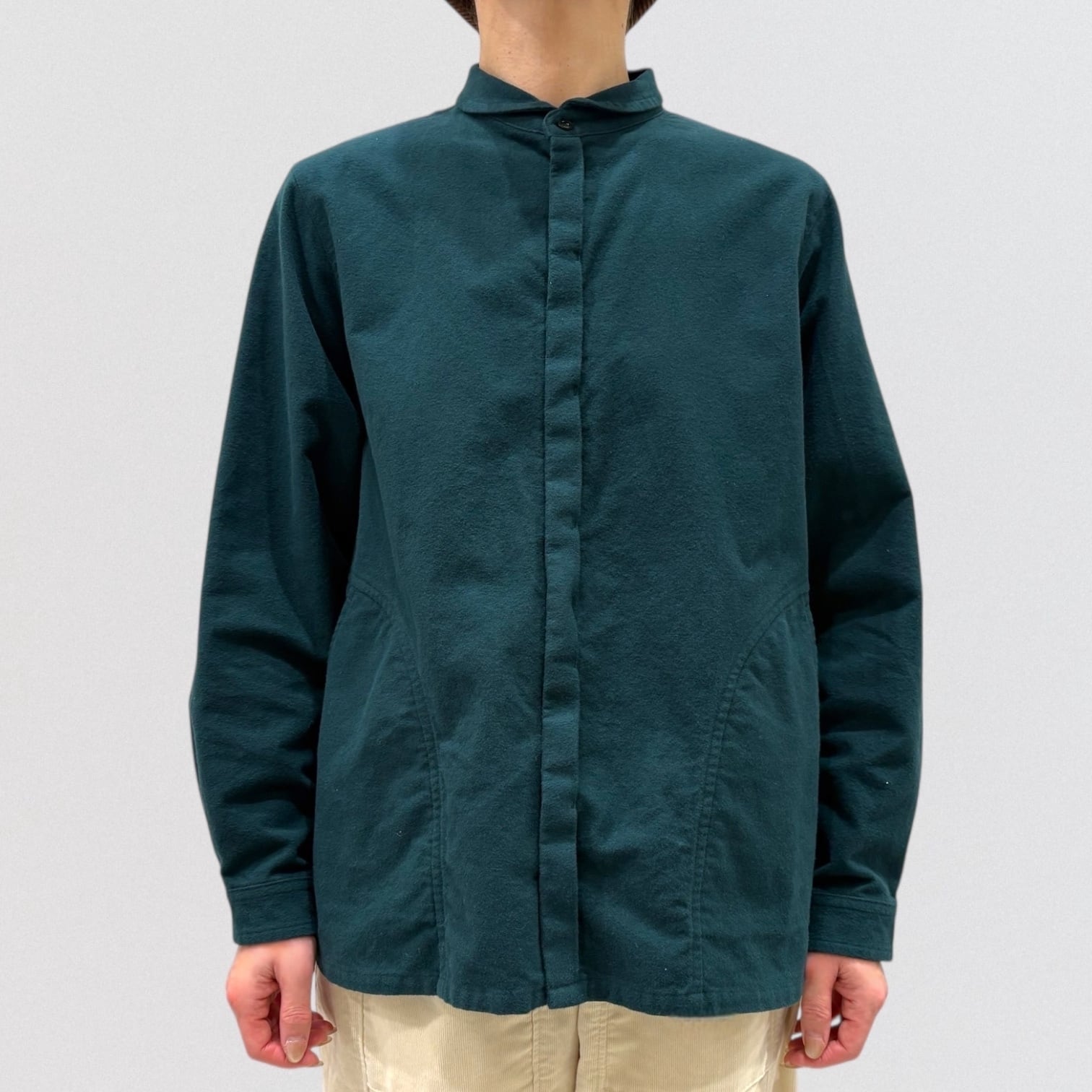 メンズヴィンテージウェアに見られるワークシャツを、vmらしいアレンジで仕上げたシャツです。