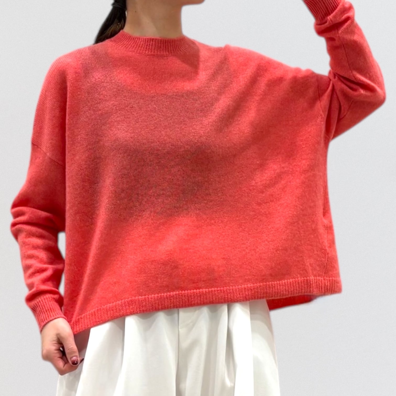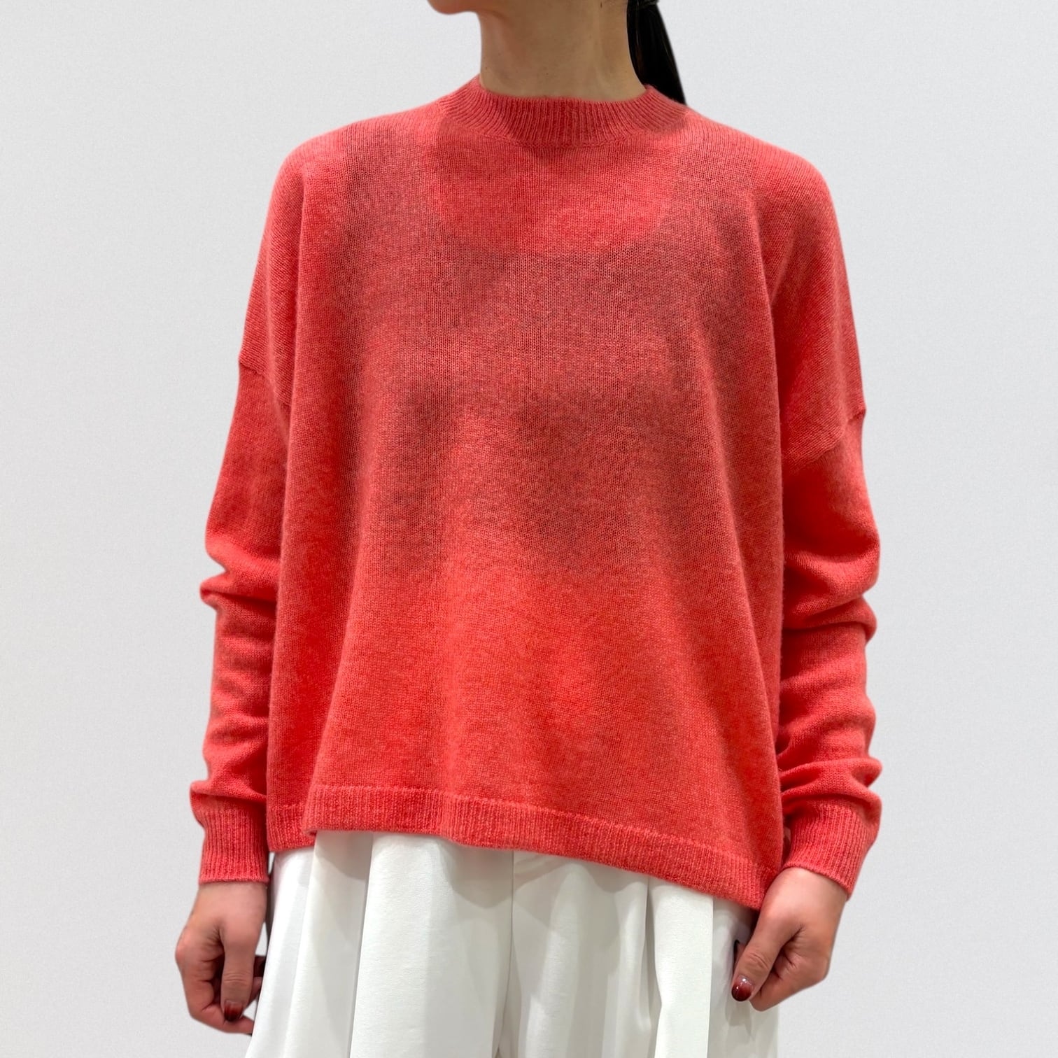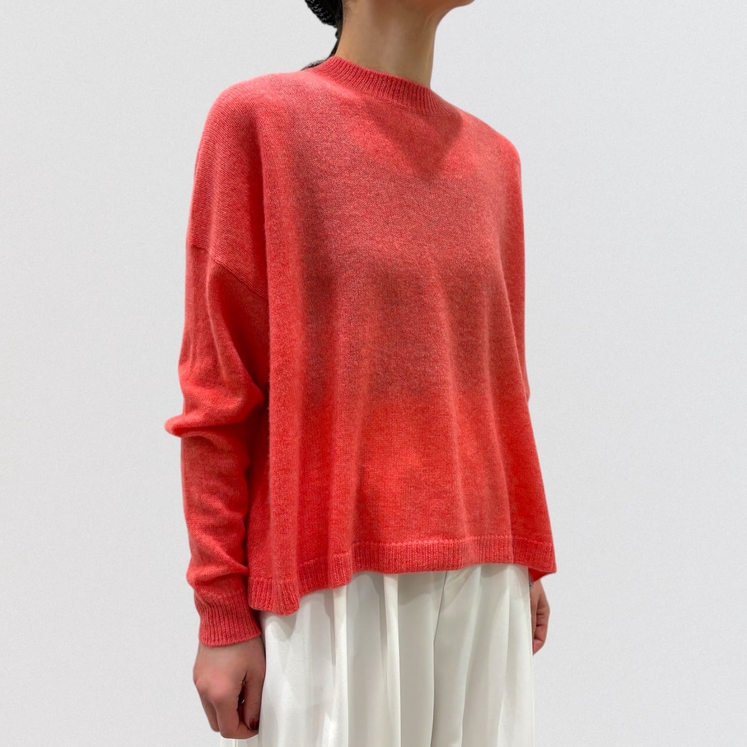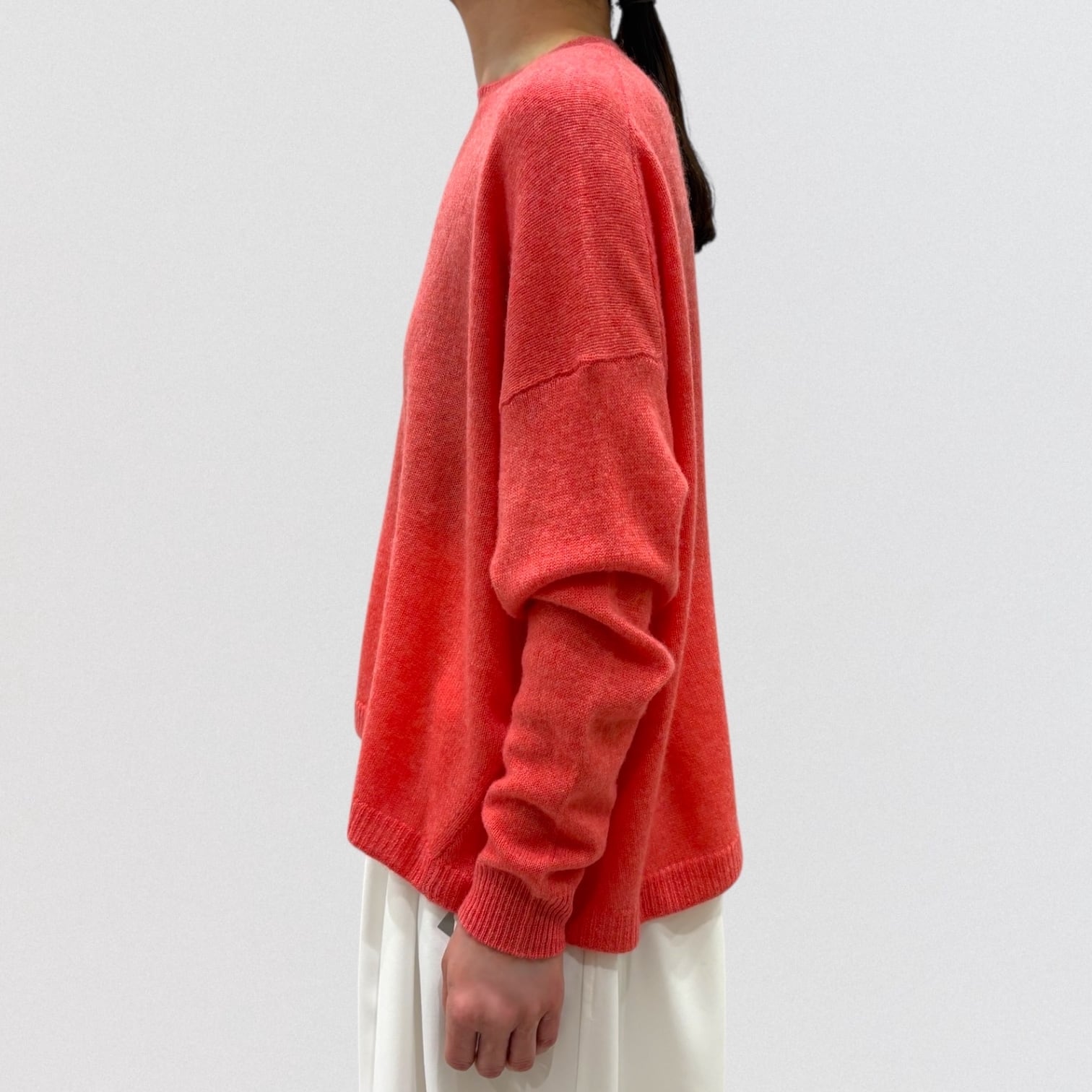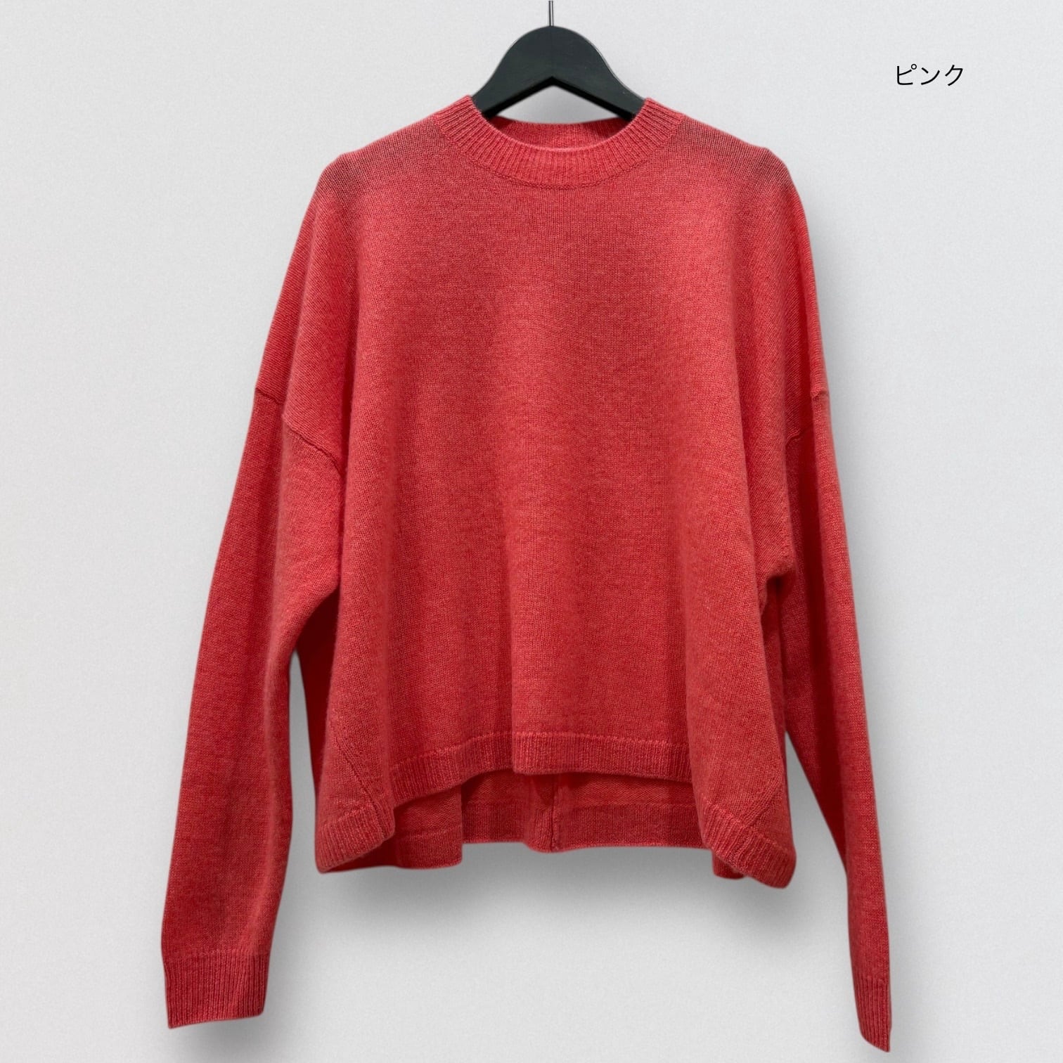 上品さ漂うカシミヤ100%のワイドシルエットのクルーネックセーター。