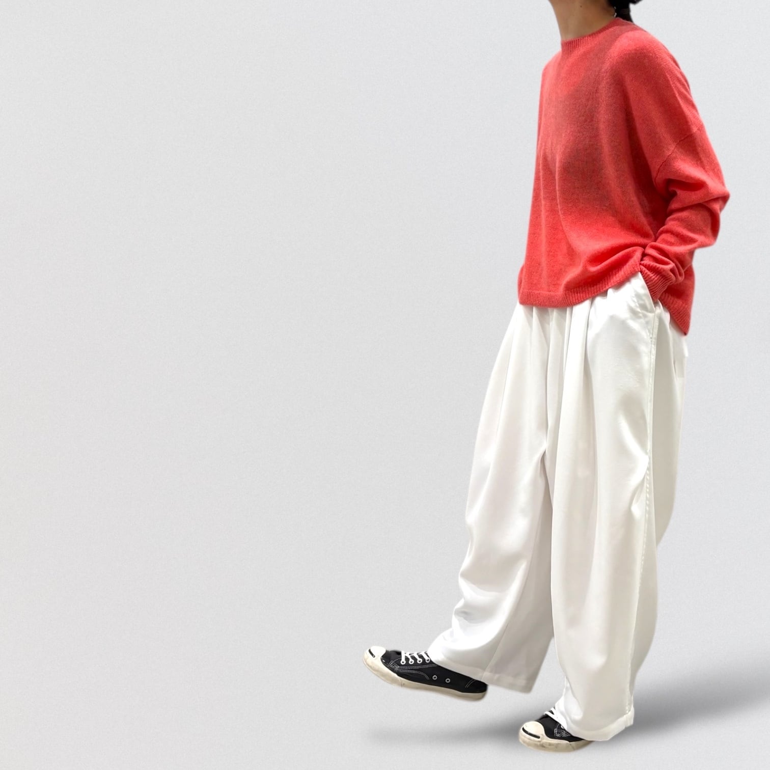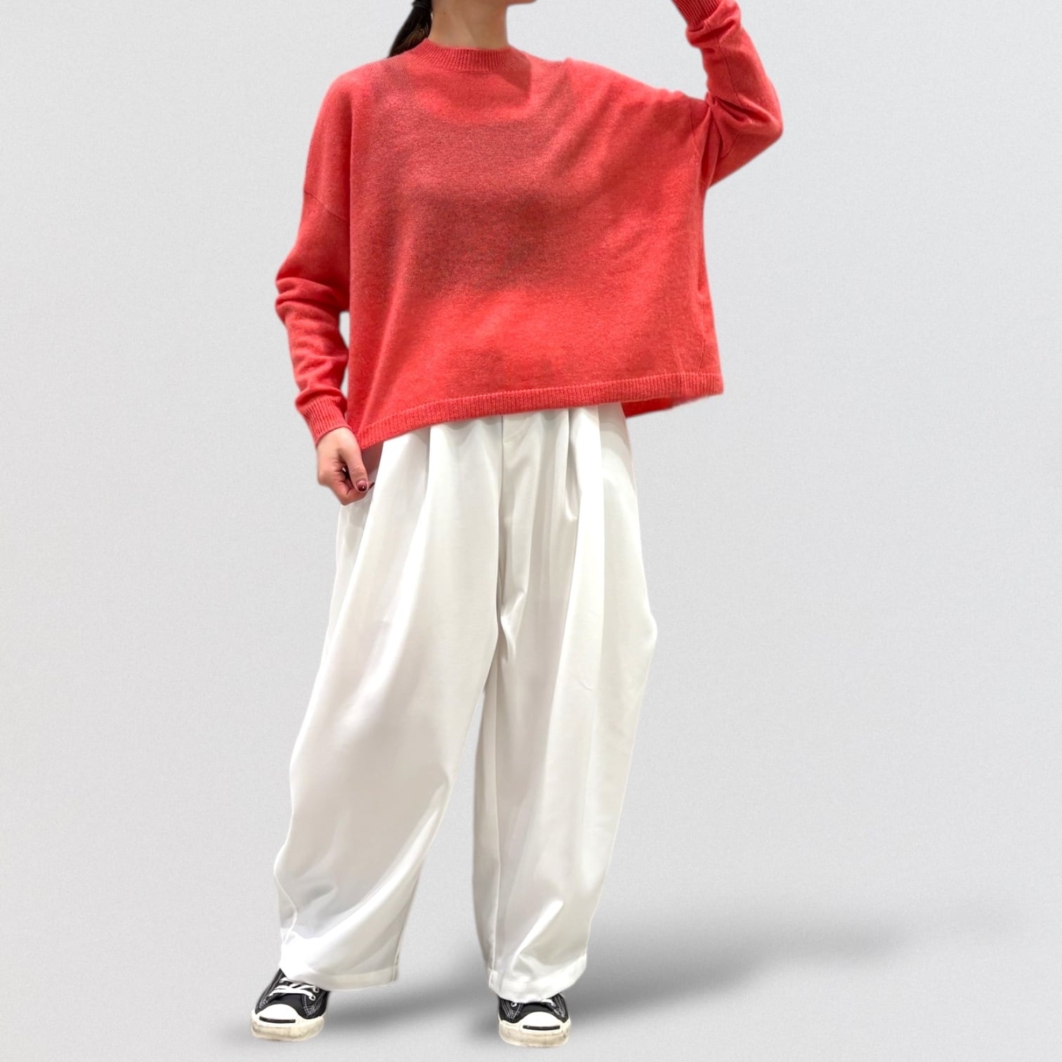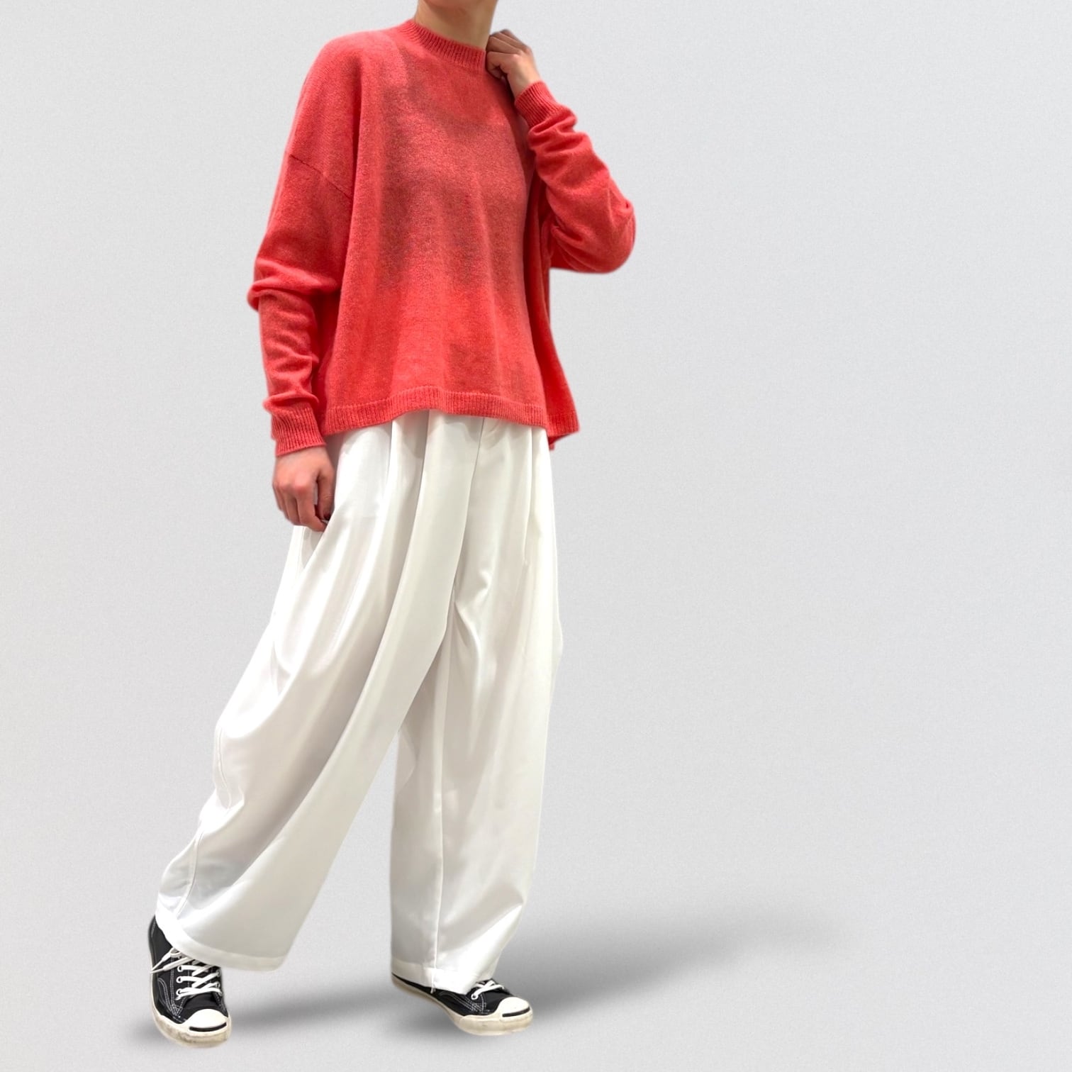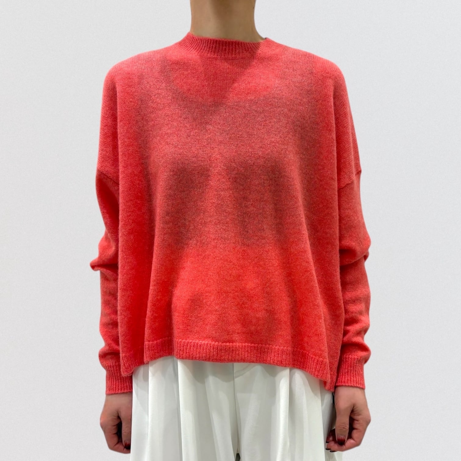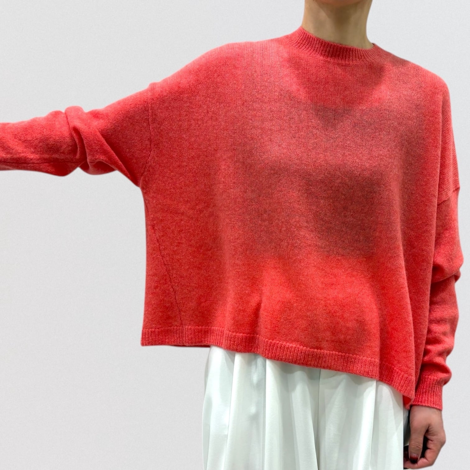 上品さ漂うカシミヤ100%のワイドシルエットのクルーネックセーター。