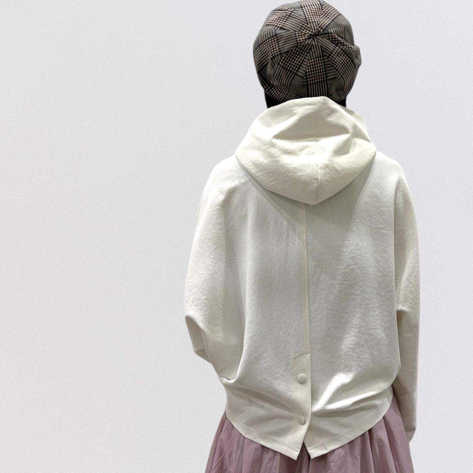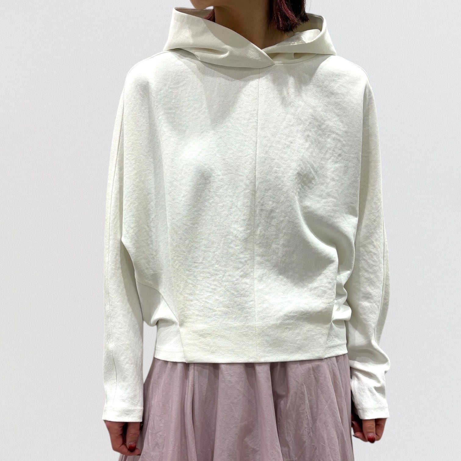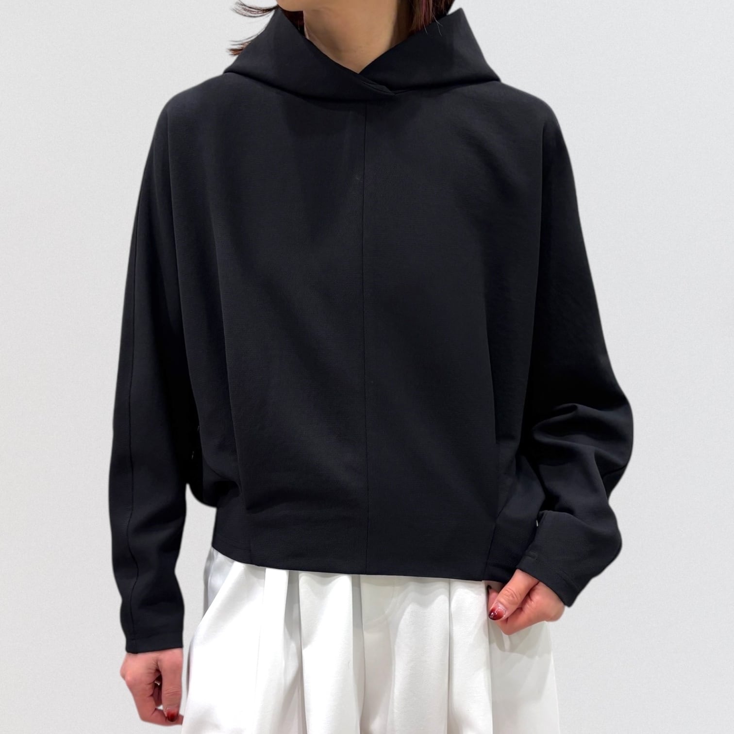 軽やかな着心地とデザイン性を兼ね備えたショート丈のパーカー。