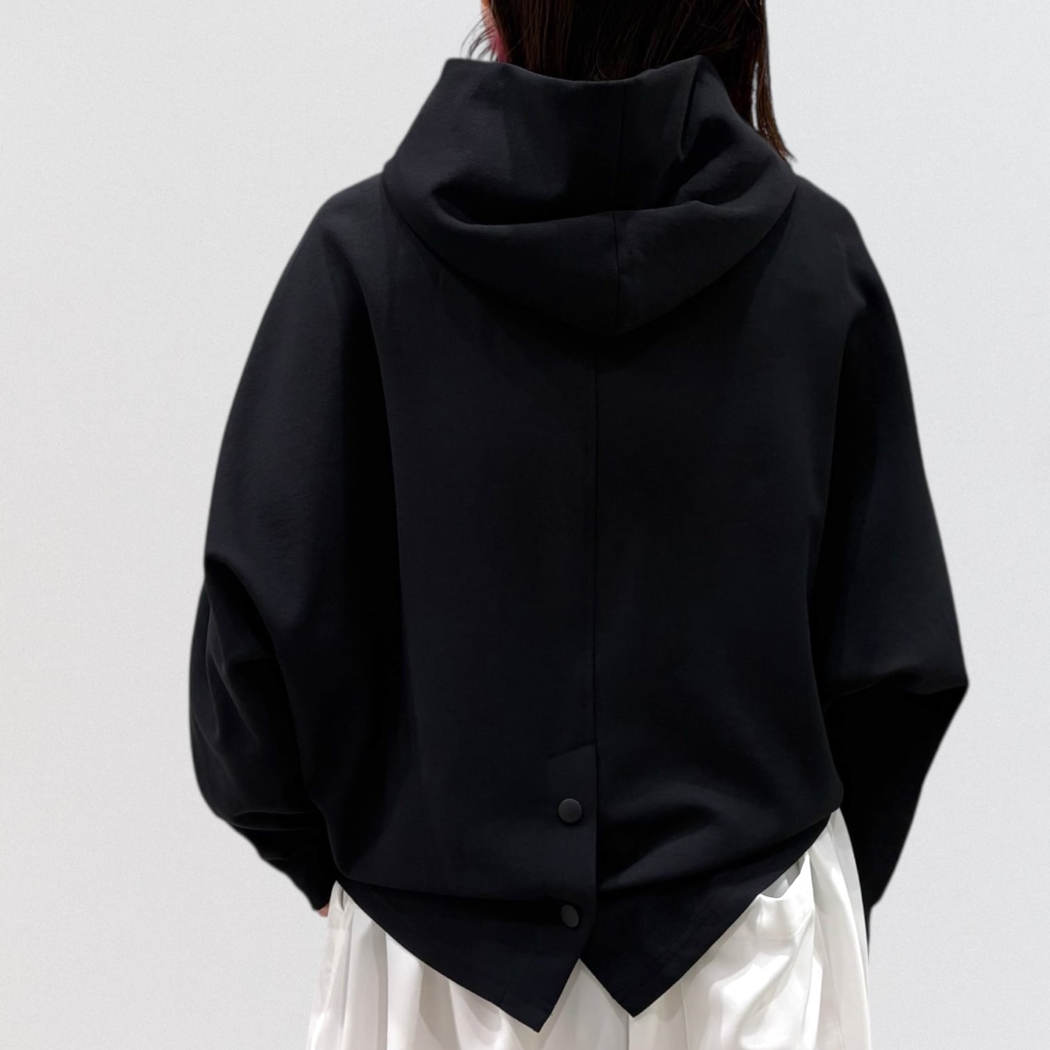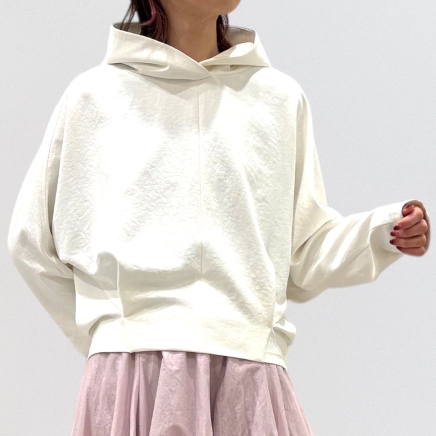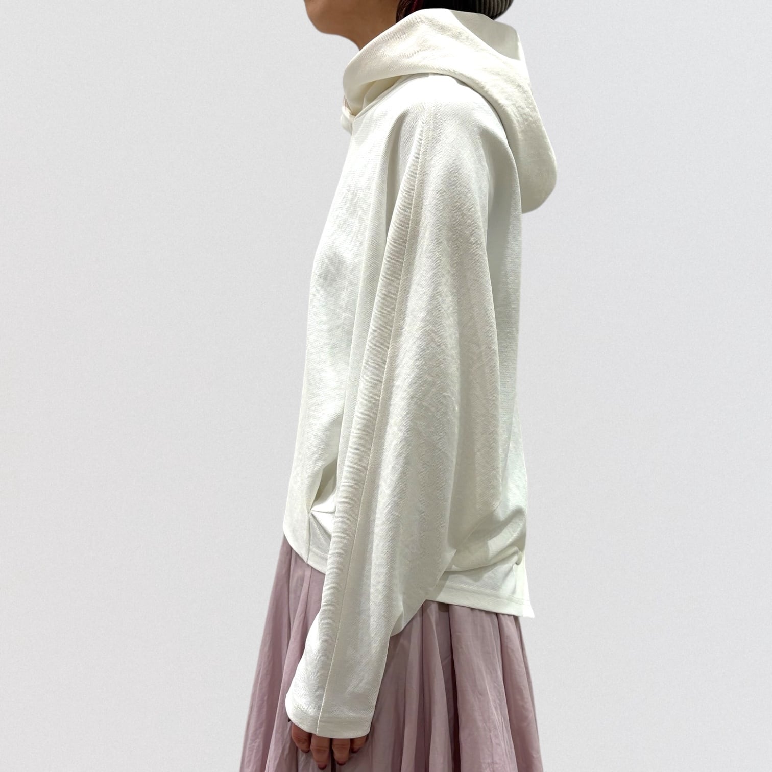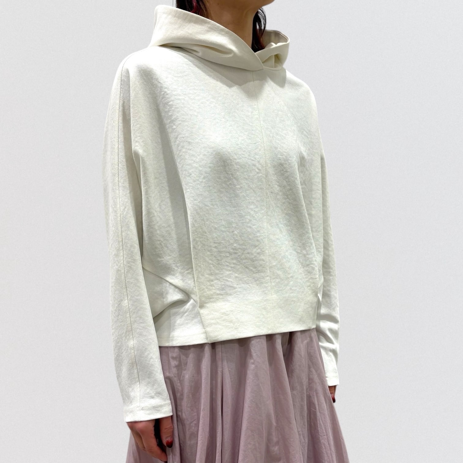 軽やかな着心地とデザイン性を兼ね備えたショート丈のパーカー。