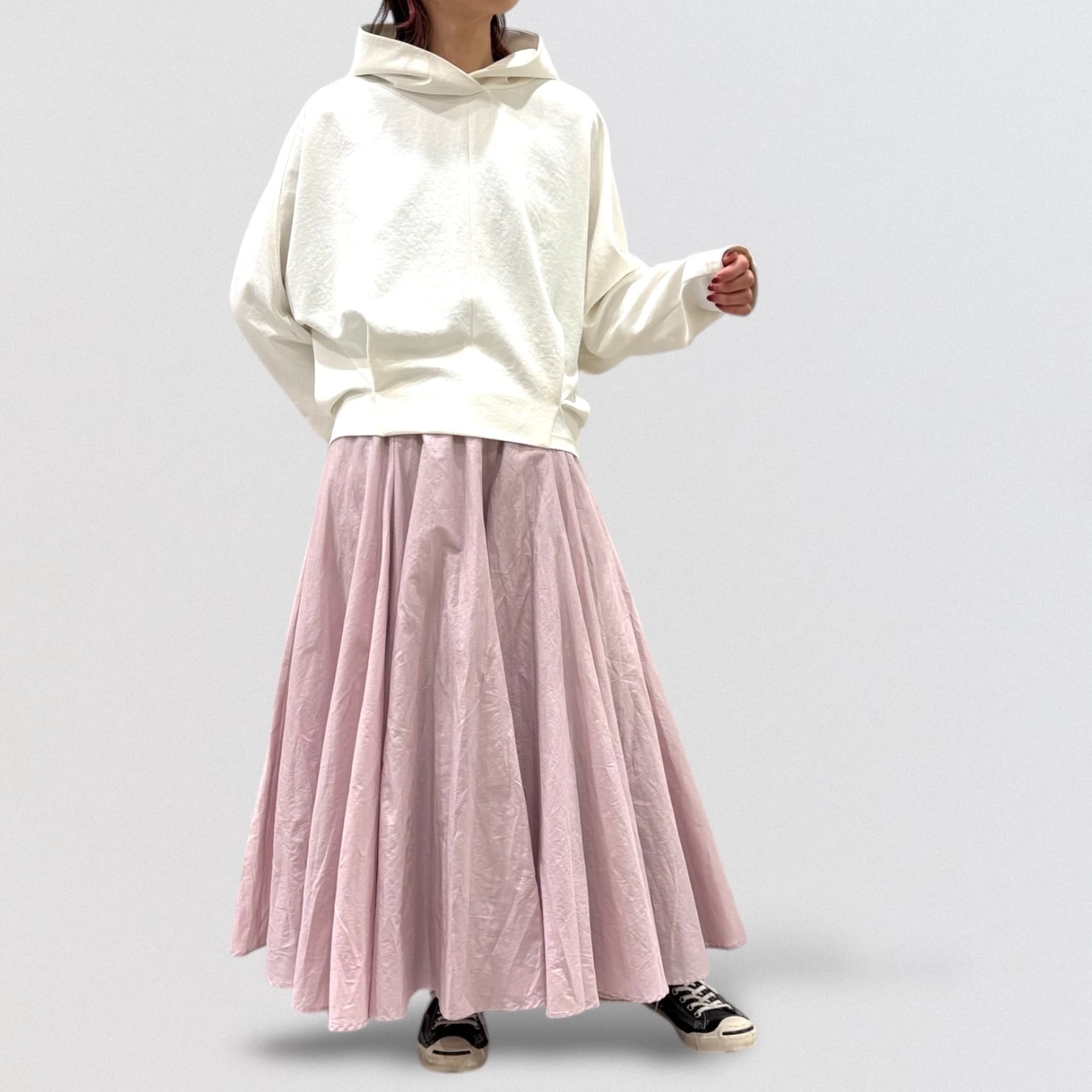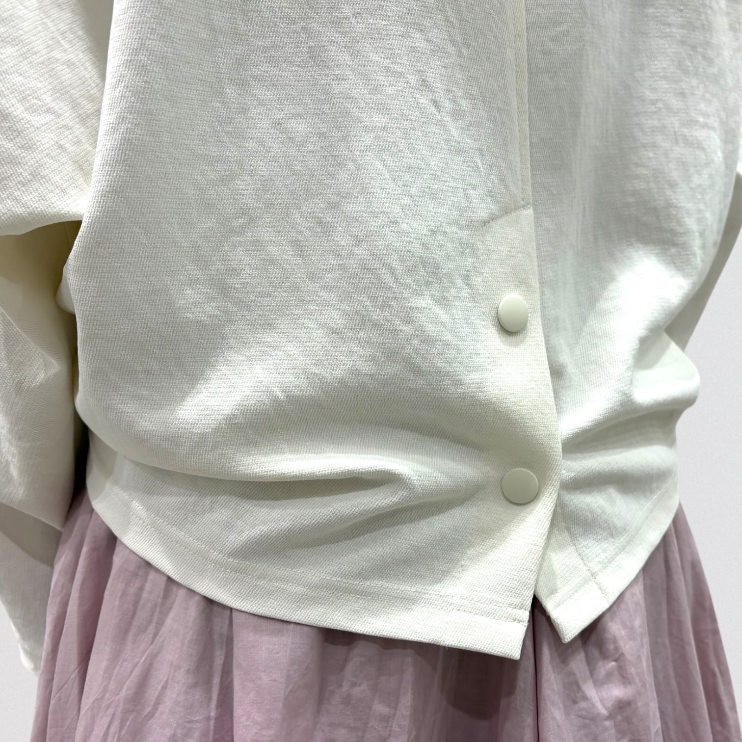 冬に人気だったデザインをポリエステル素材に変え、さらに柔らかくしなやかなシルエットに。