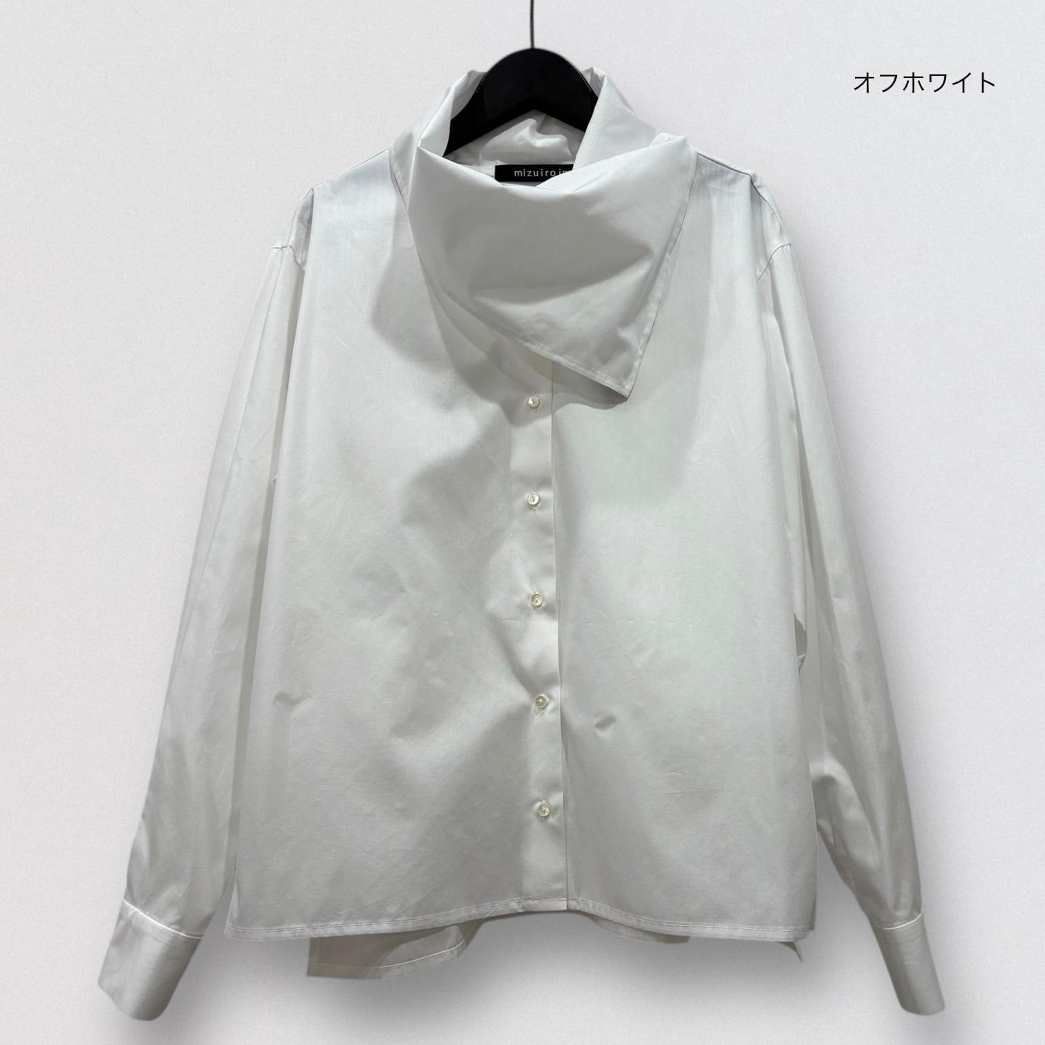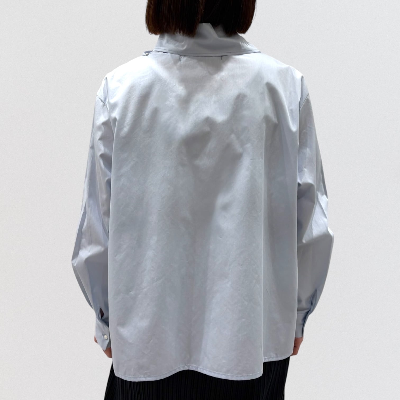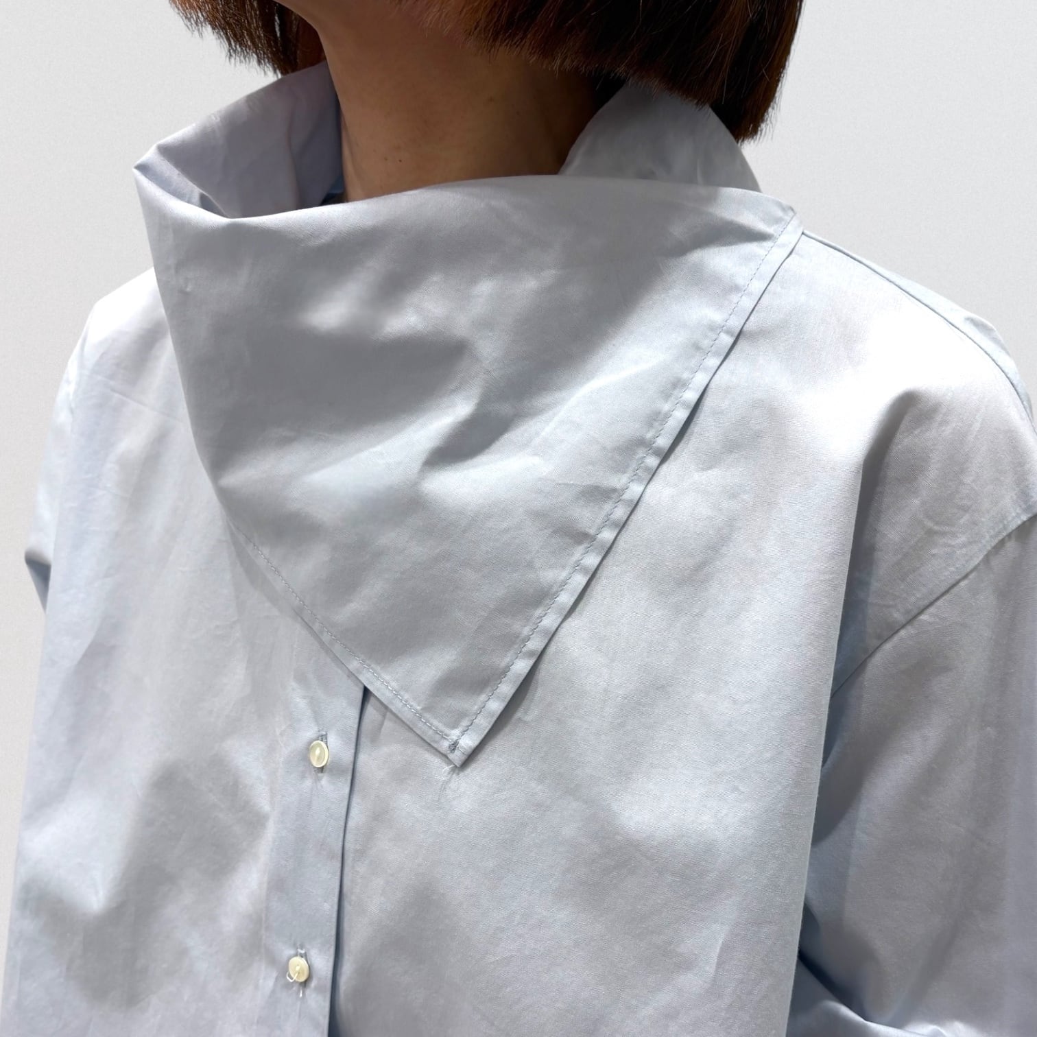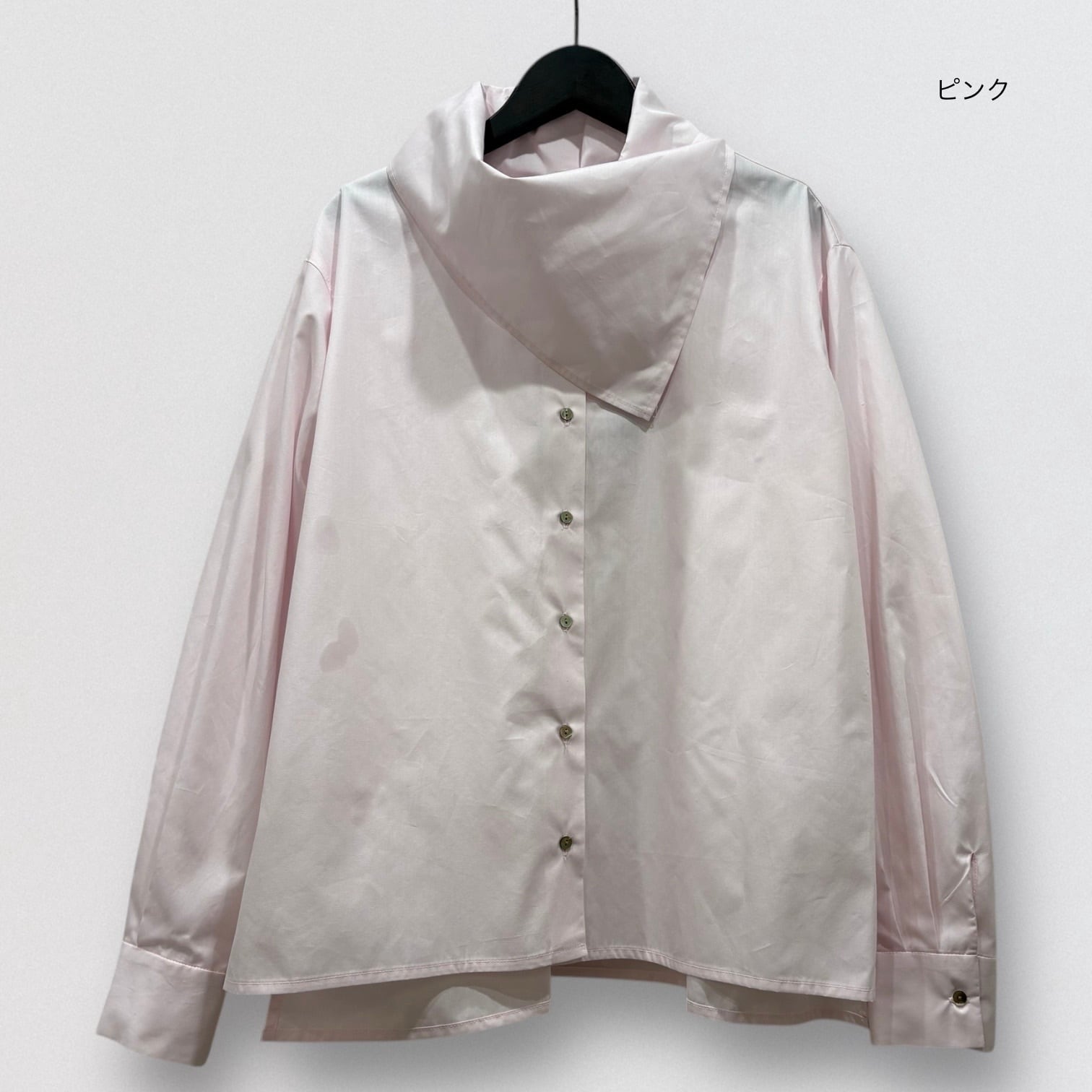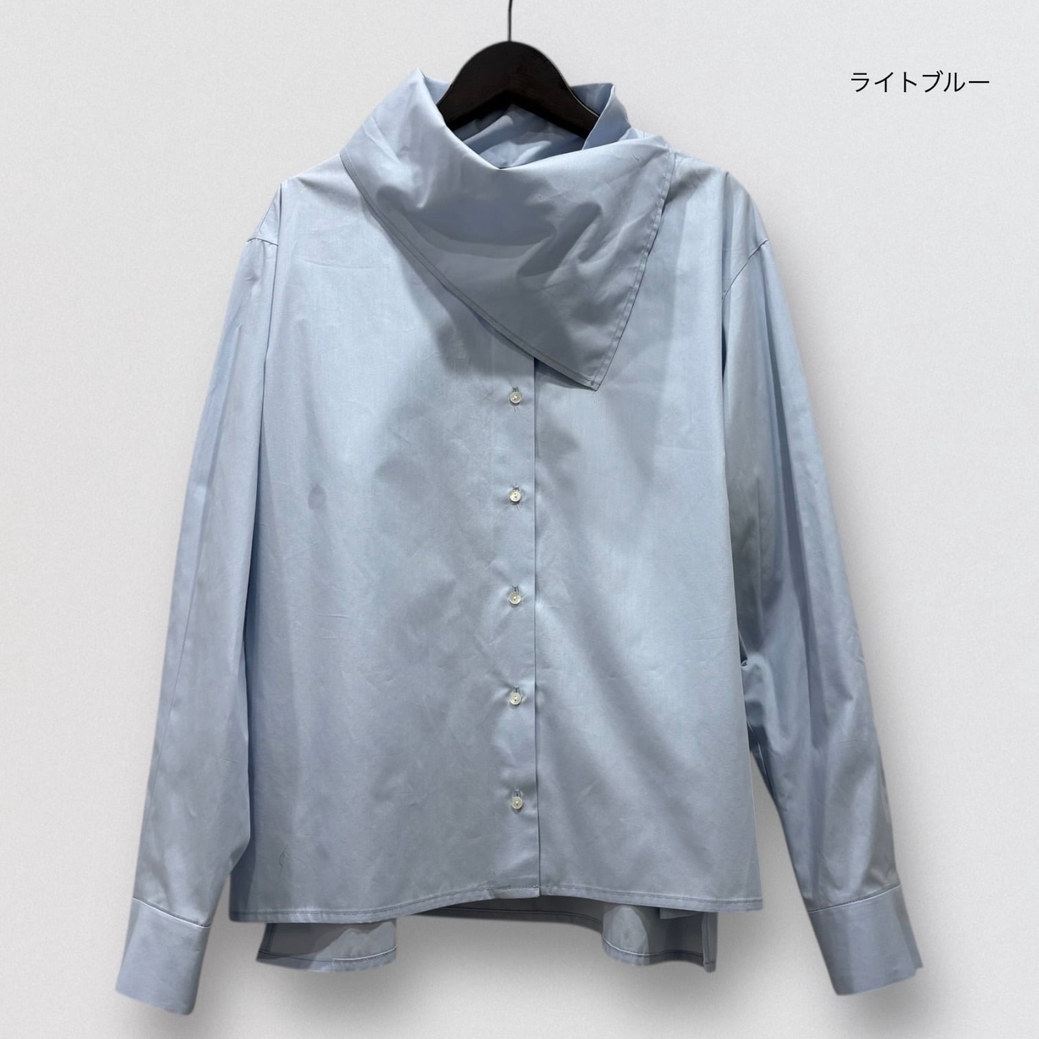 襟にドッキングしたスカーフが特徴のスカーフカラーシャツです。