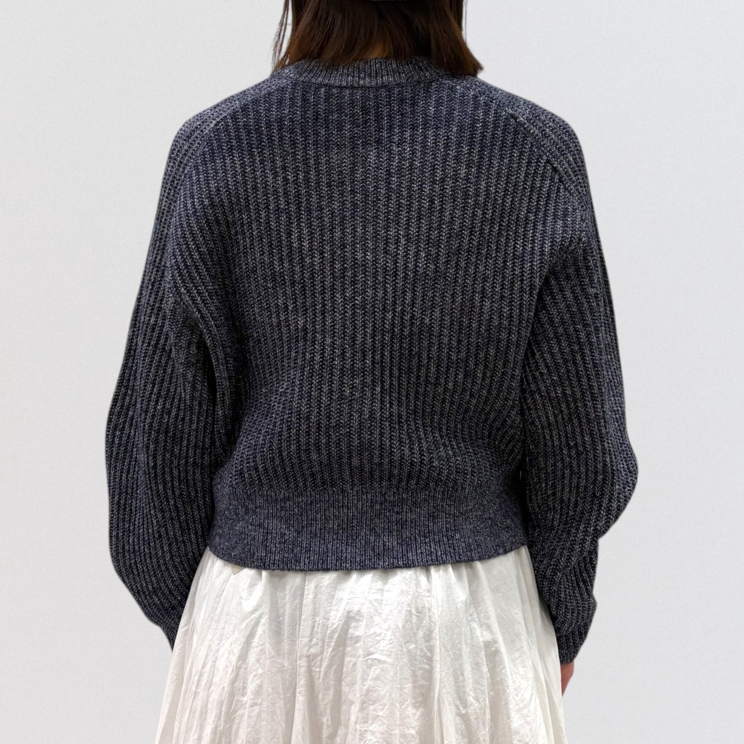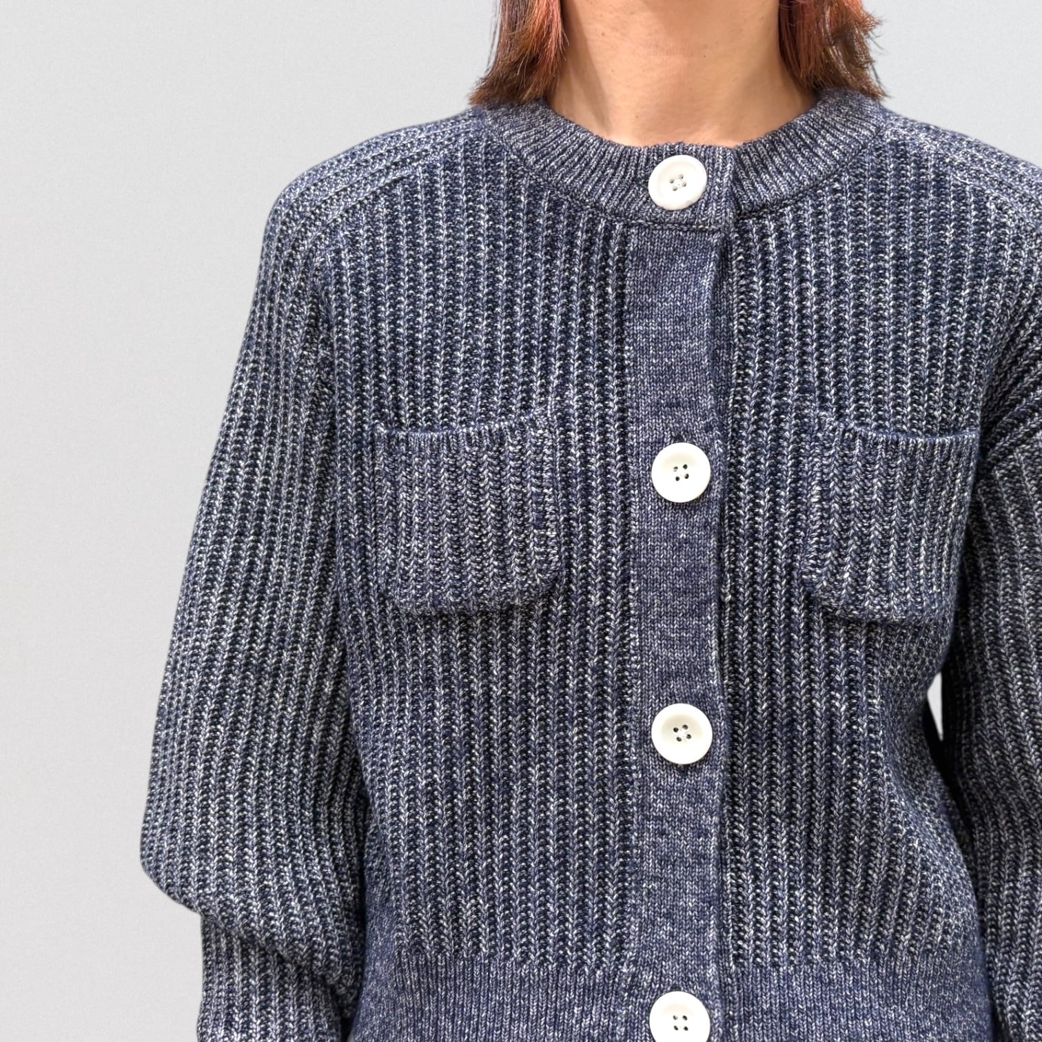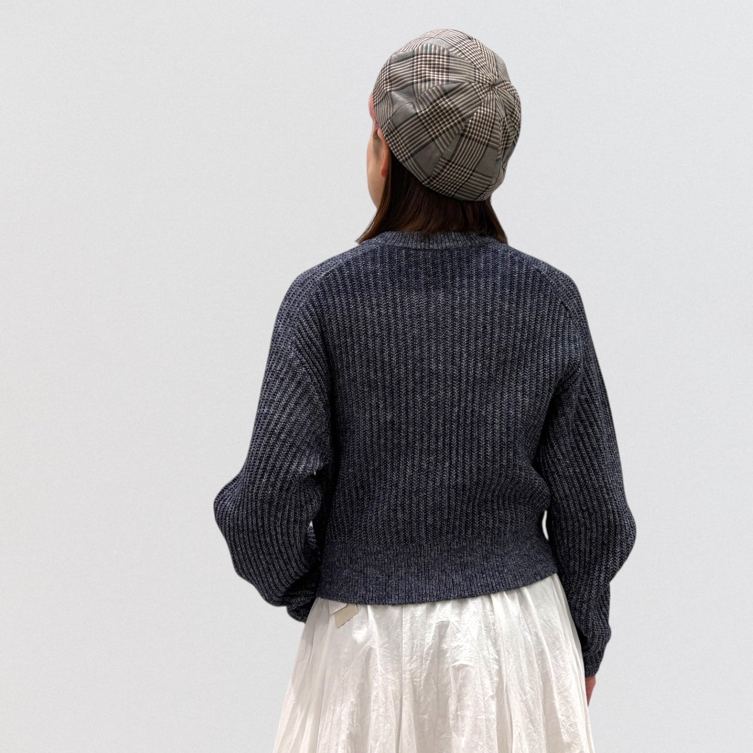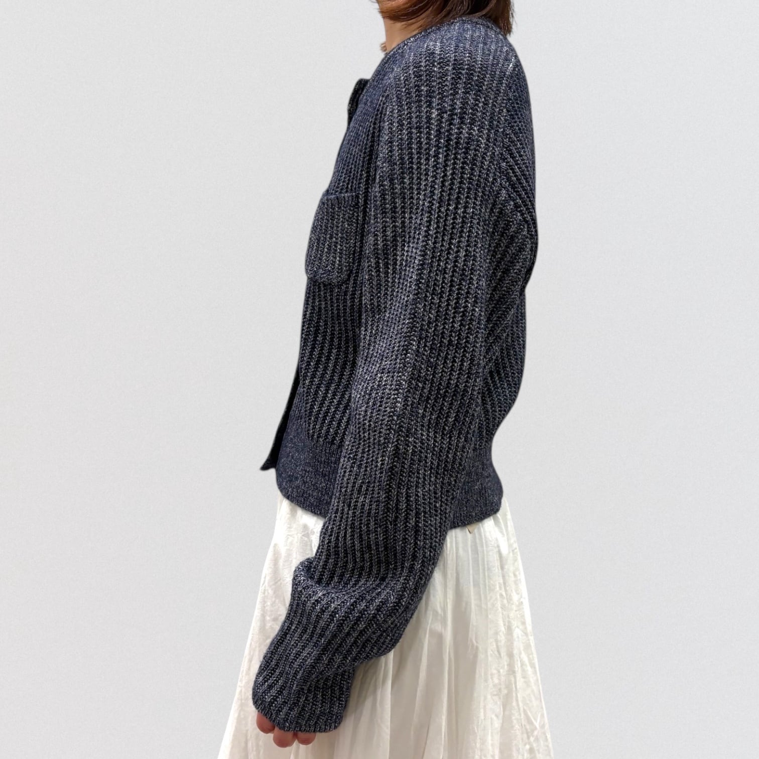 リブニットのショート丈カーディガンです。