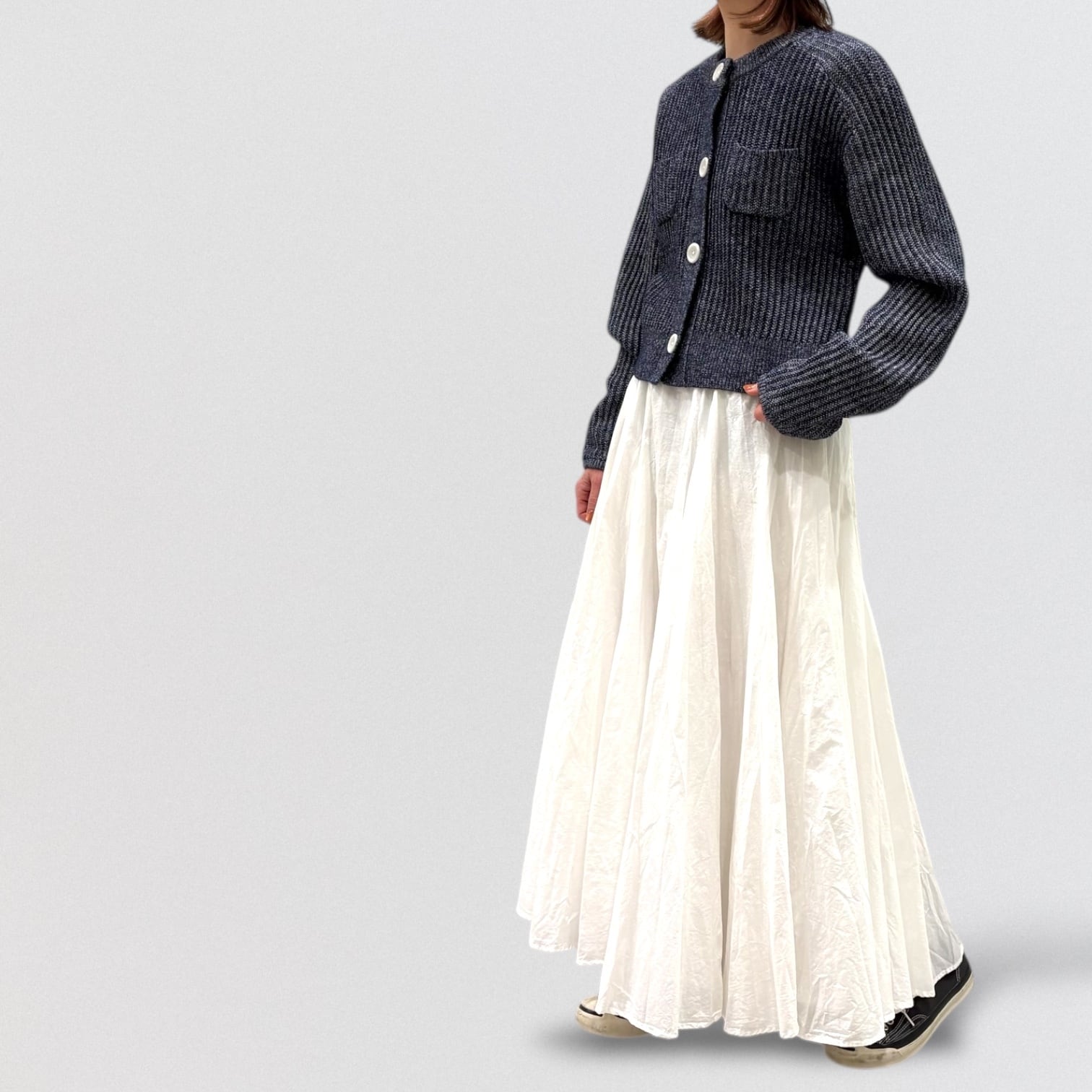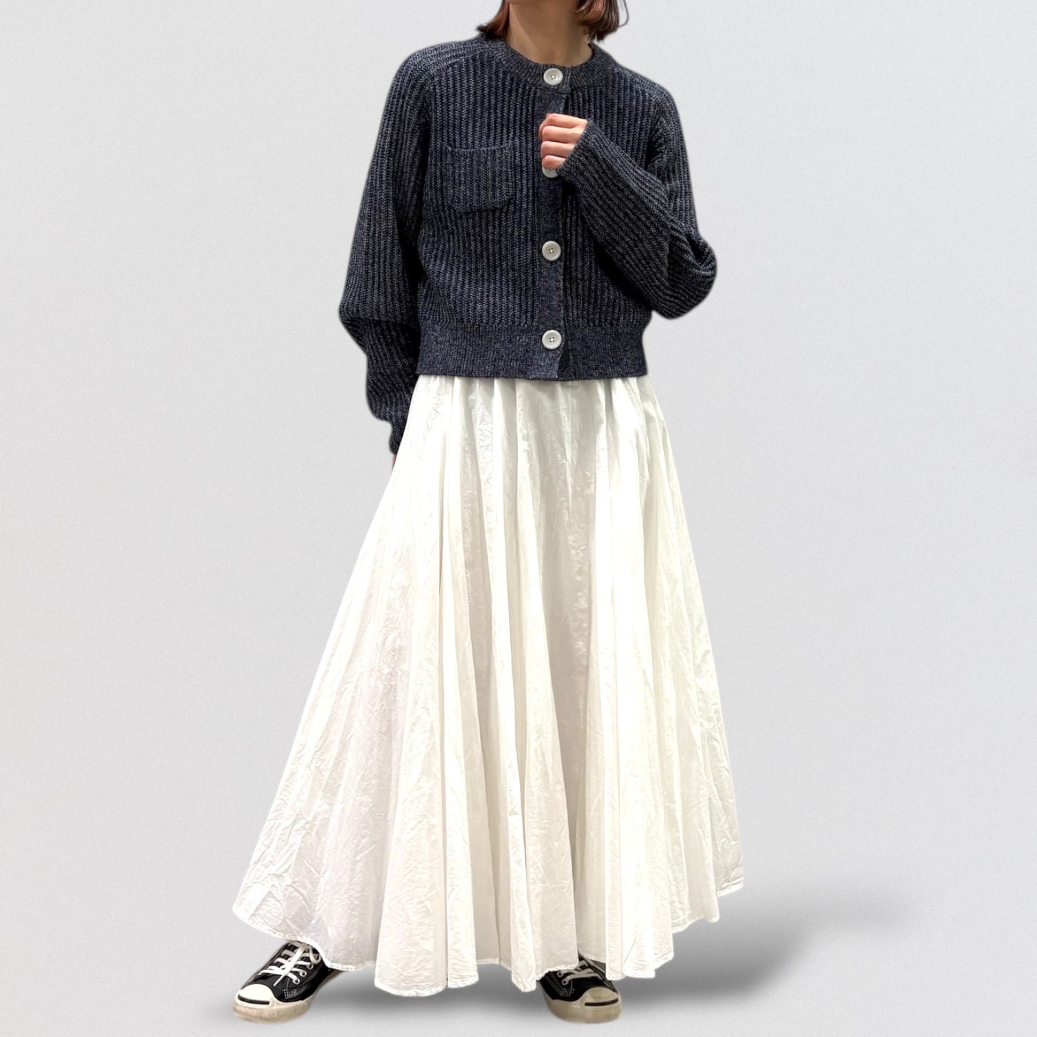 スカート、パンツ、ワンピースと組み合わせは選びません。