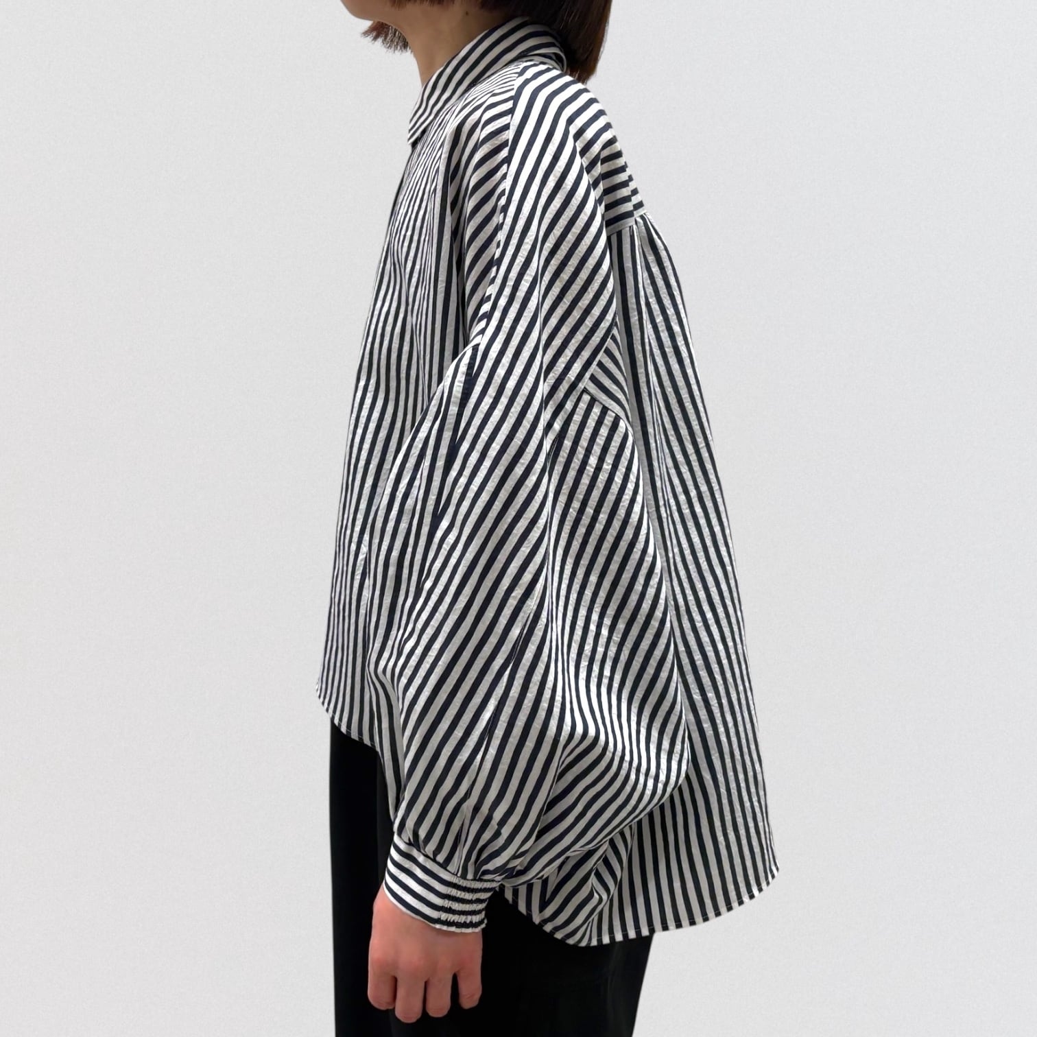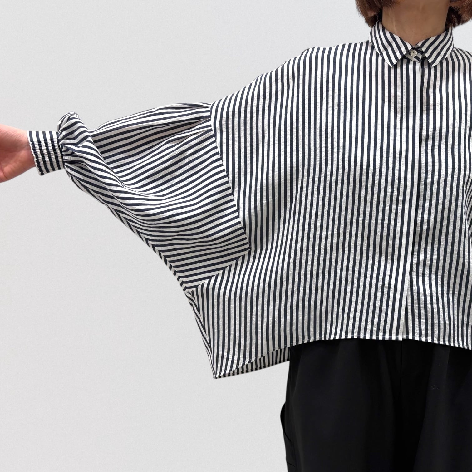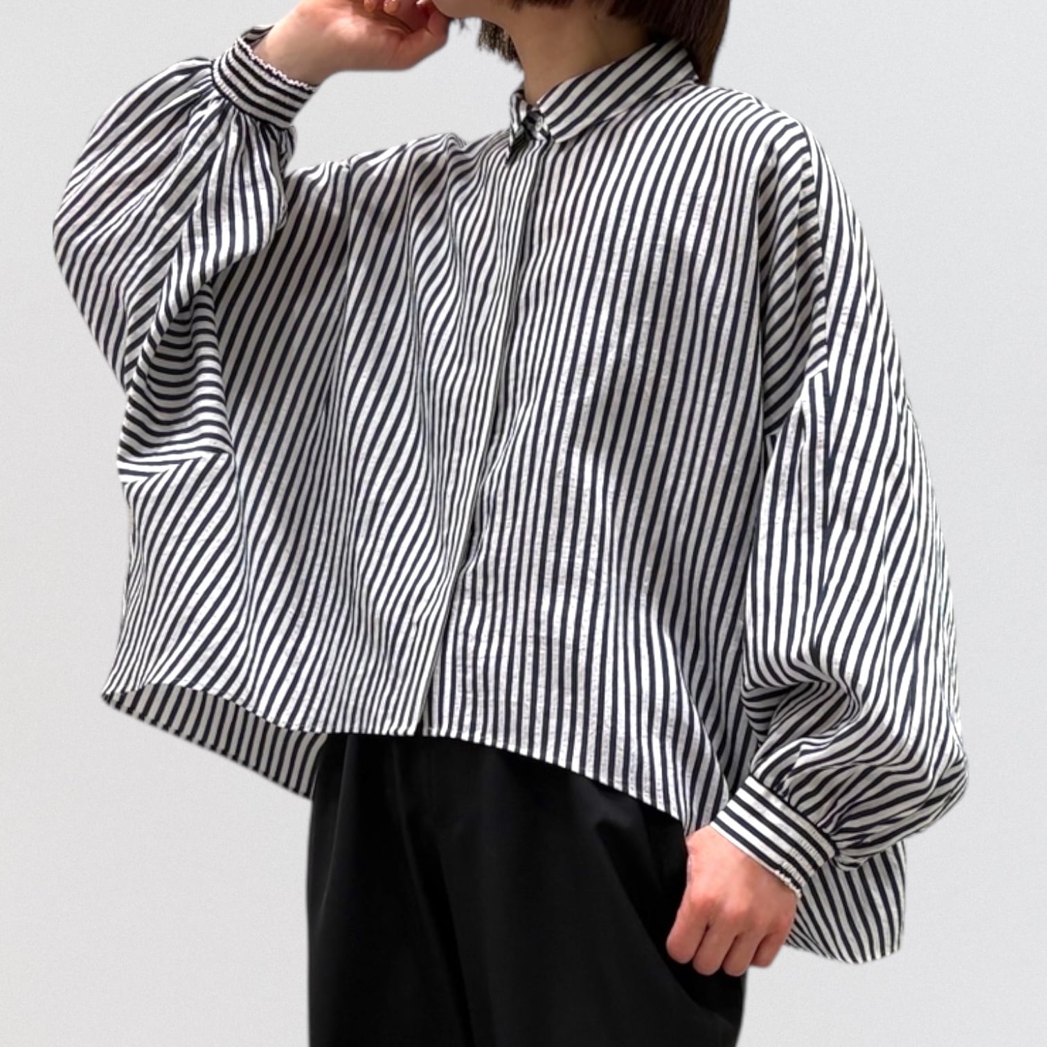 PASSIONEのストライプドルマンワイドシャツです。