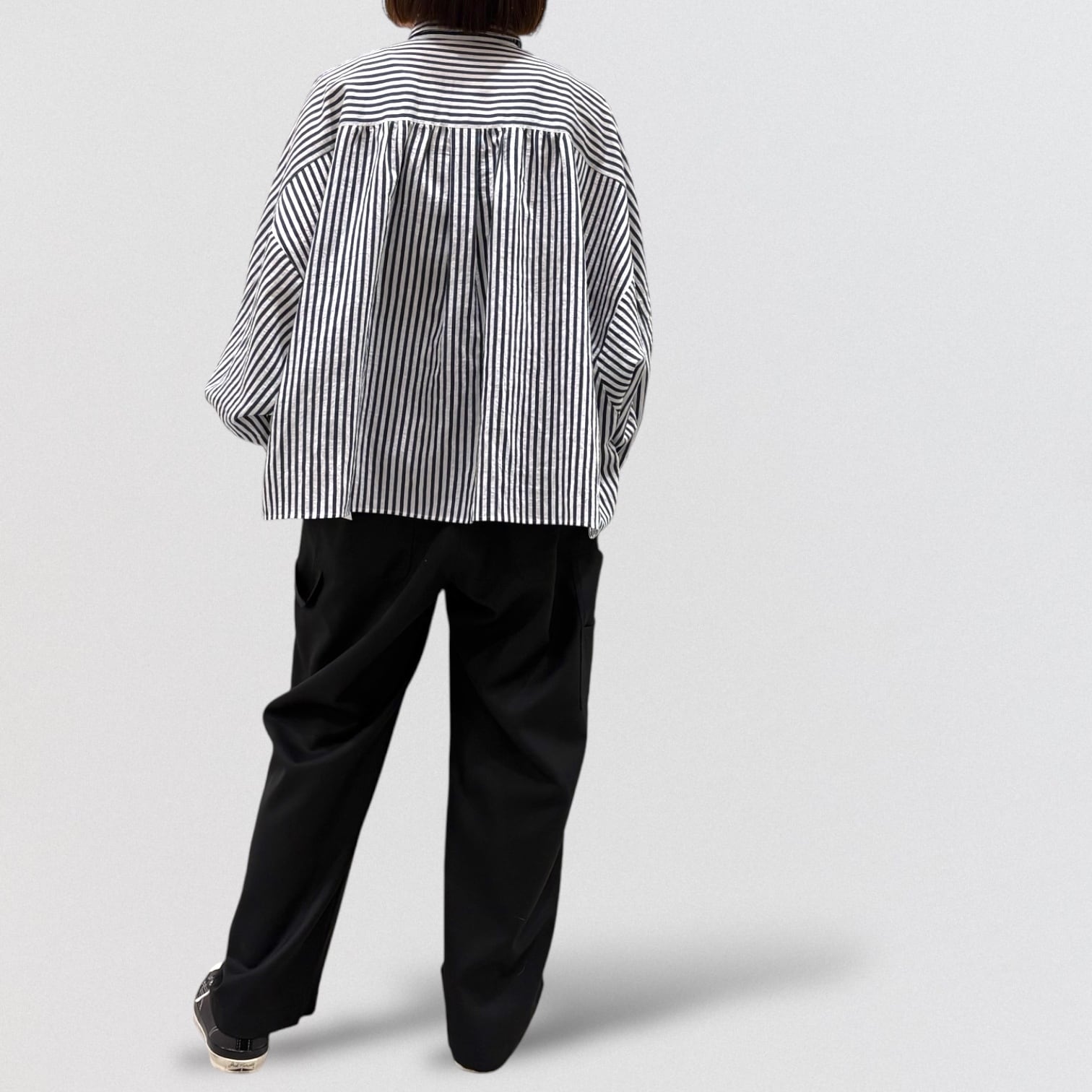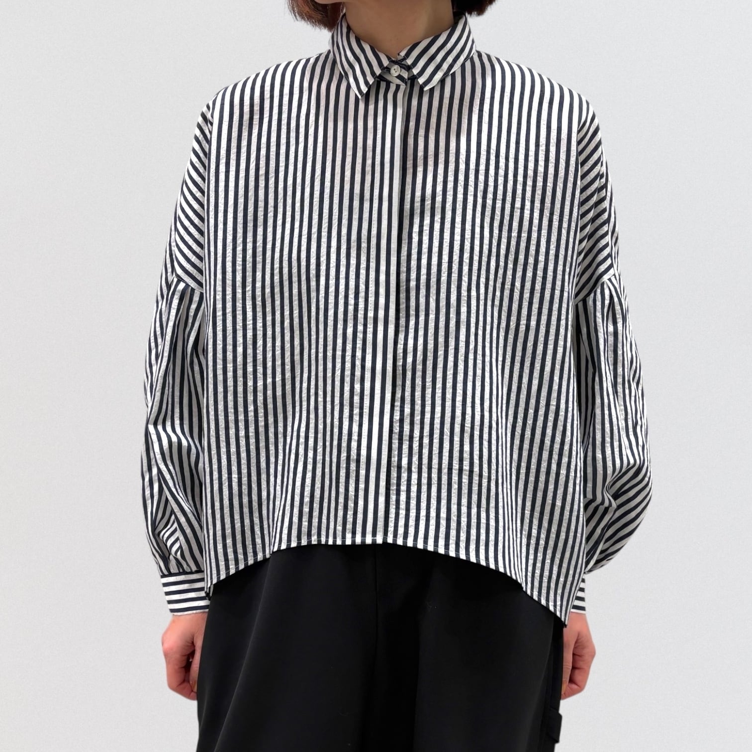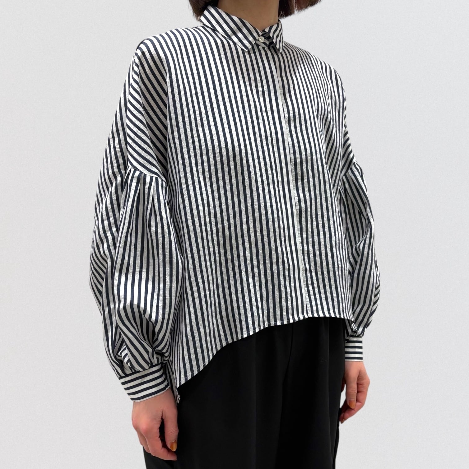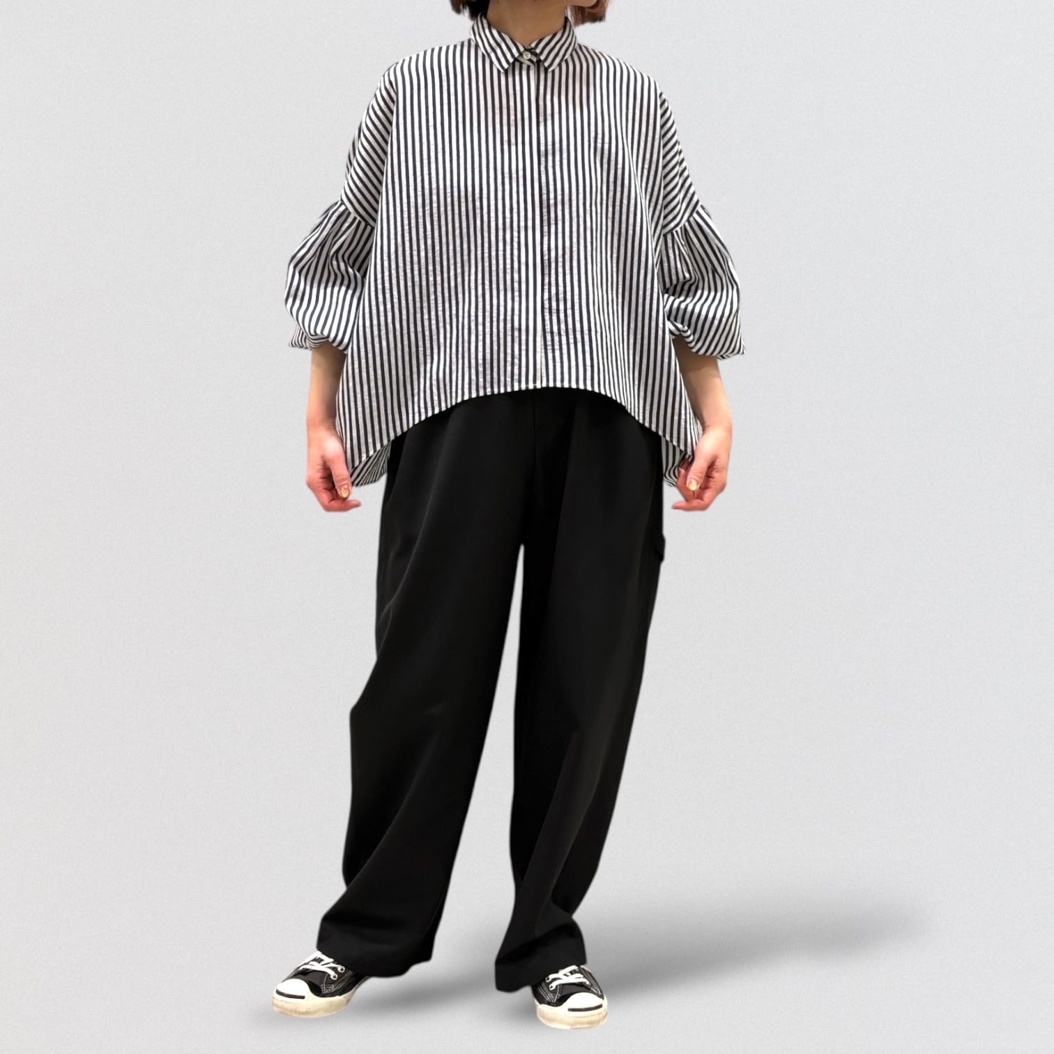 PASSIONEのストライプドルマンワイドシャツです。