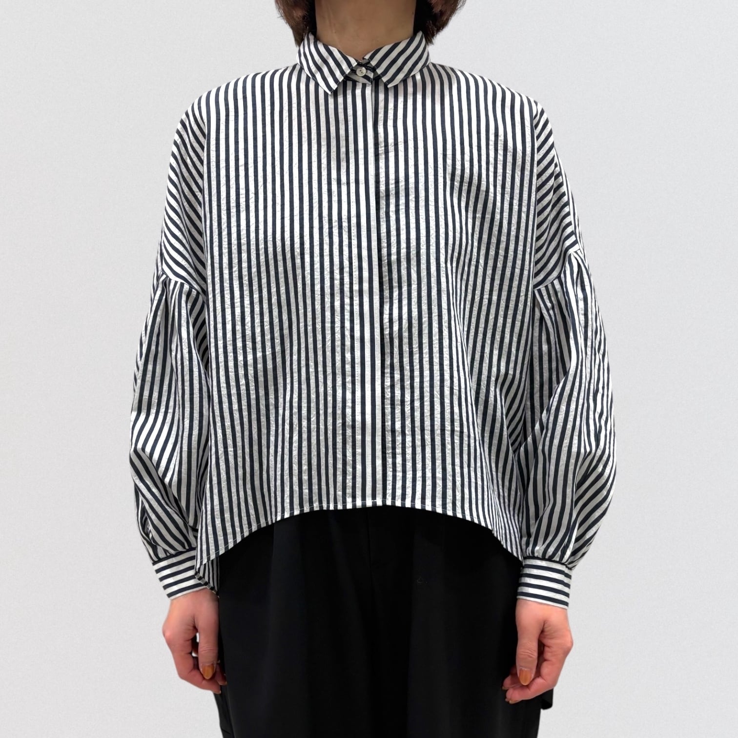 袖口の絞りが、ふんわりとした袖、手首周りをスッキリと華奢に見せてくれます。