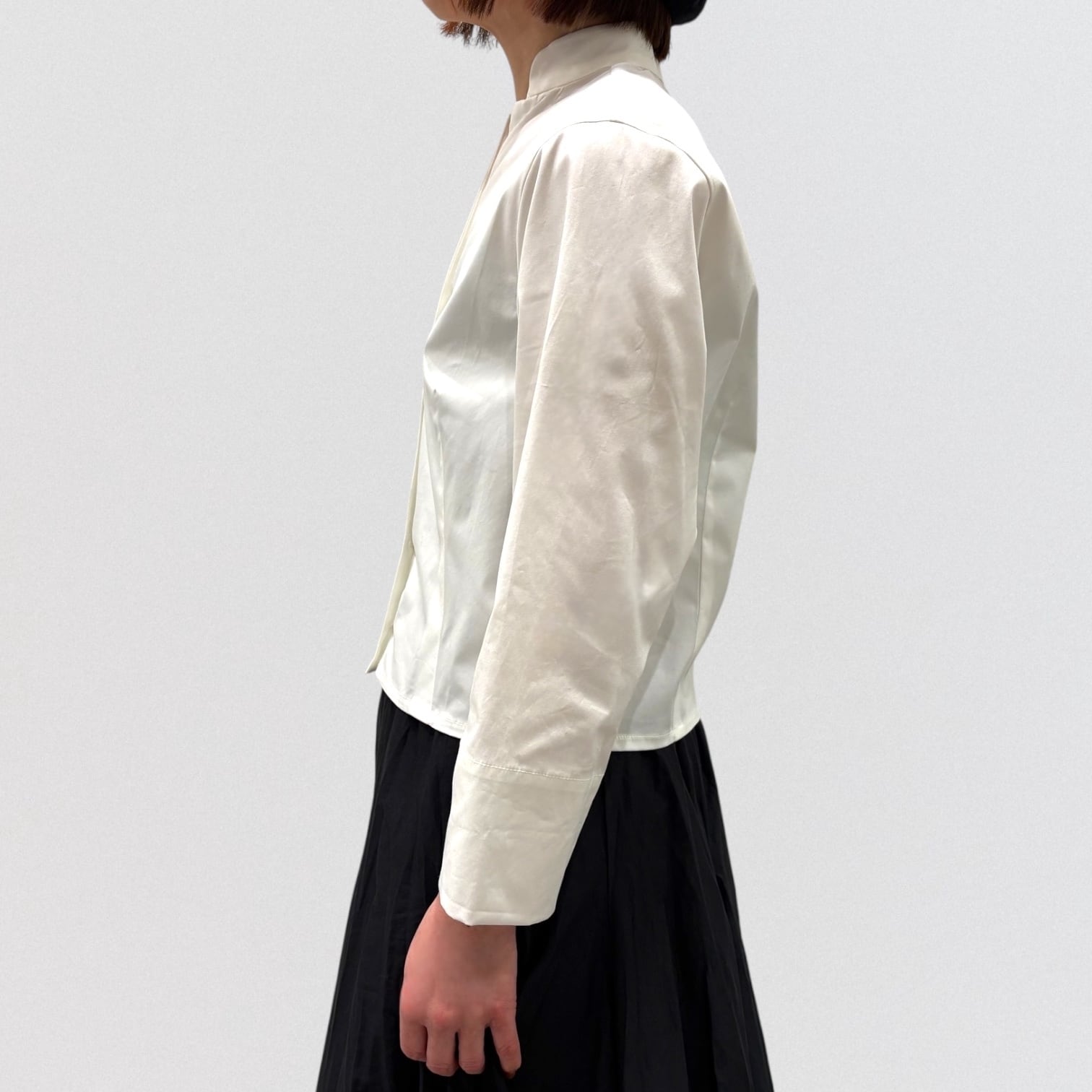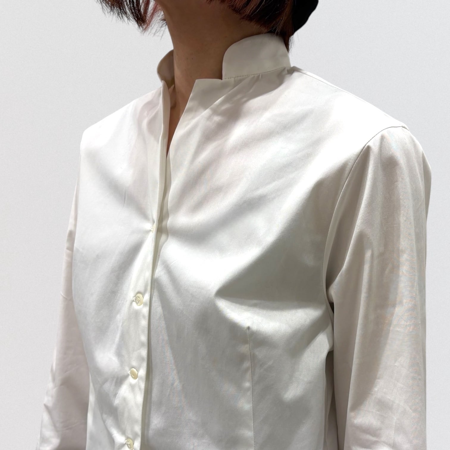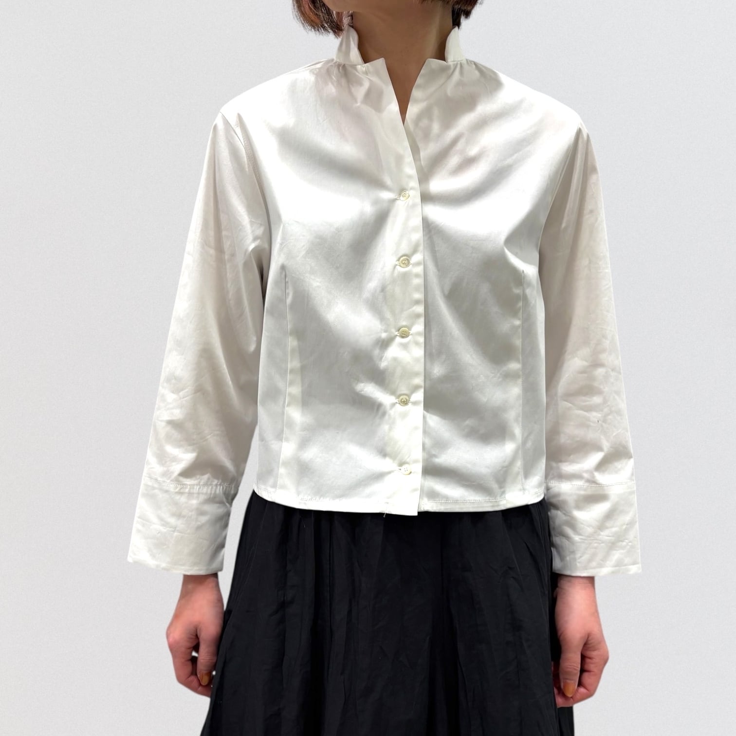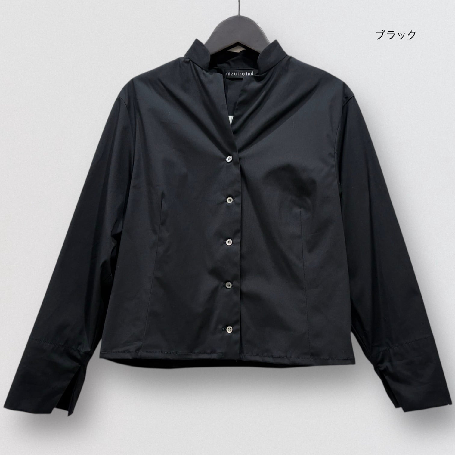 シンプルで上品な着こなしを演出するスタンドカラーショートシャツです。