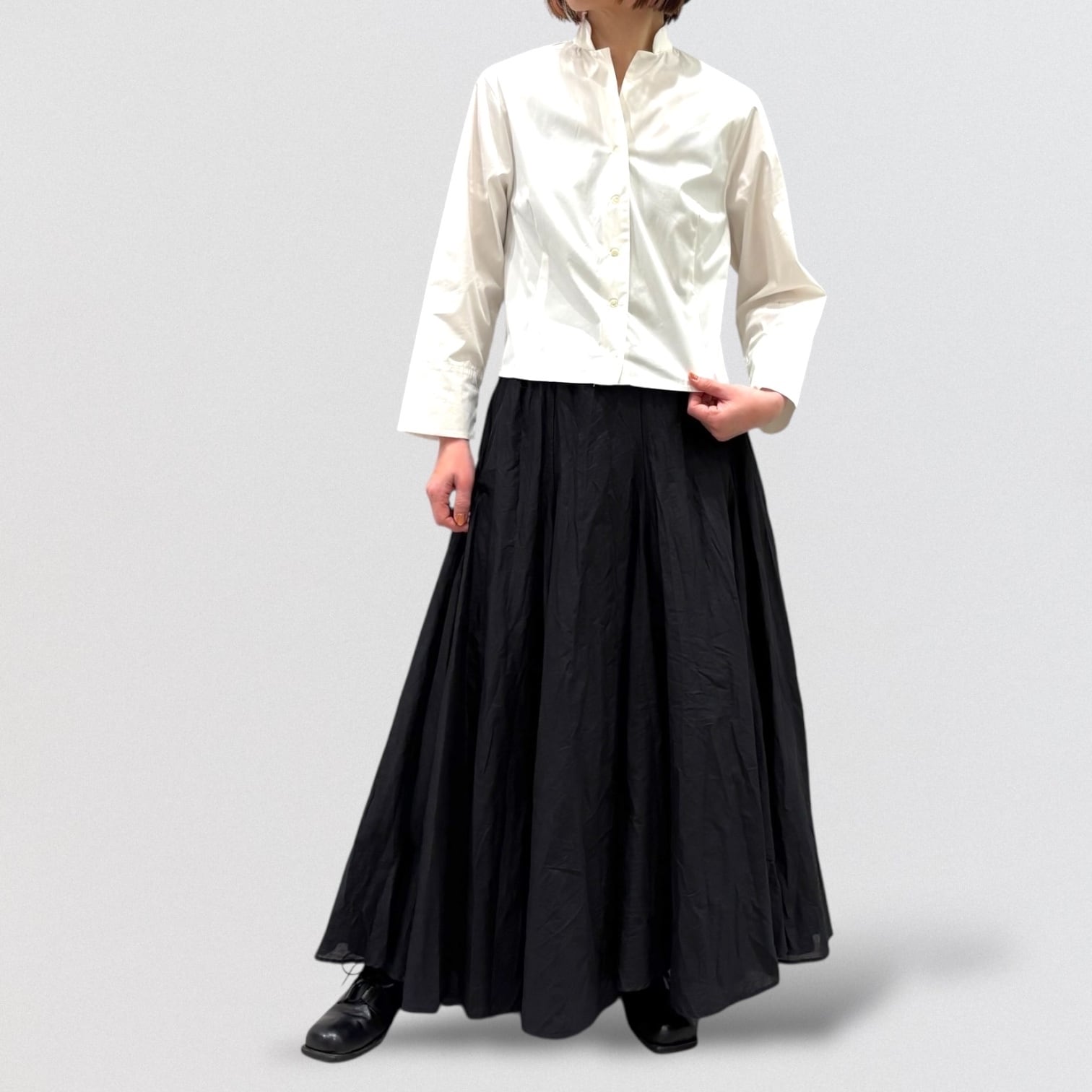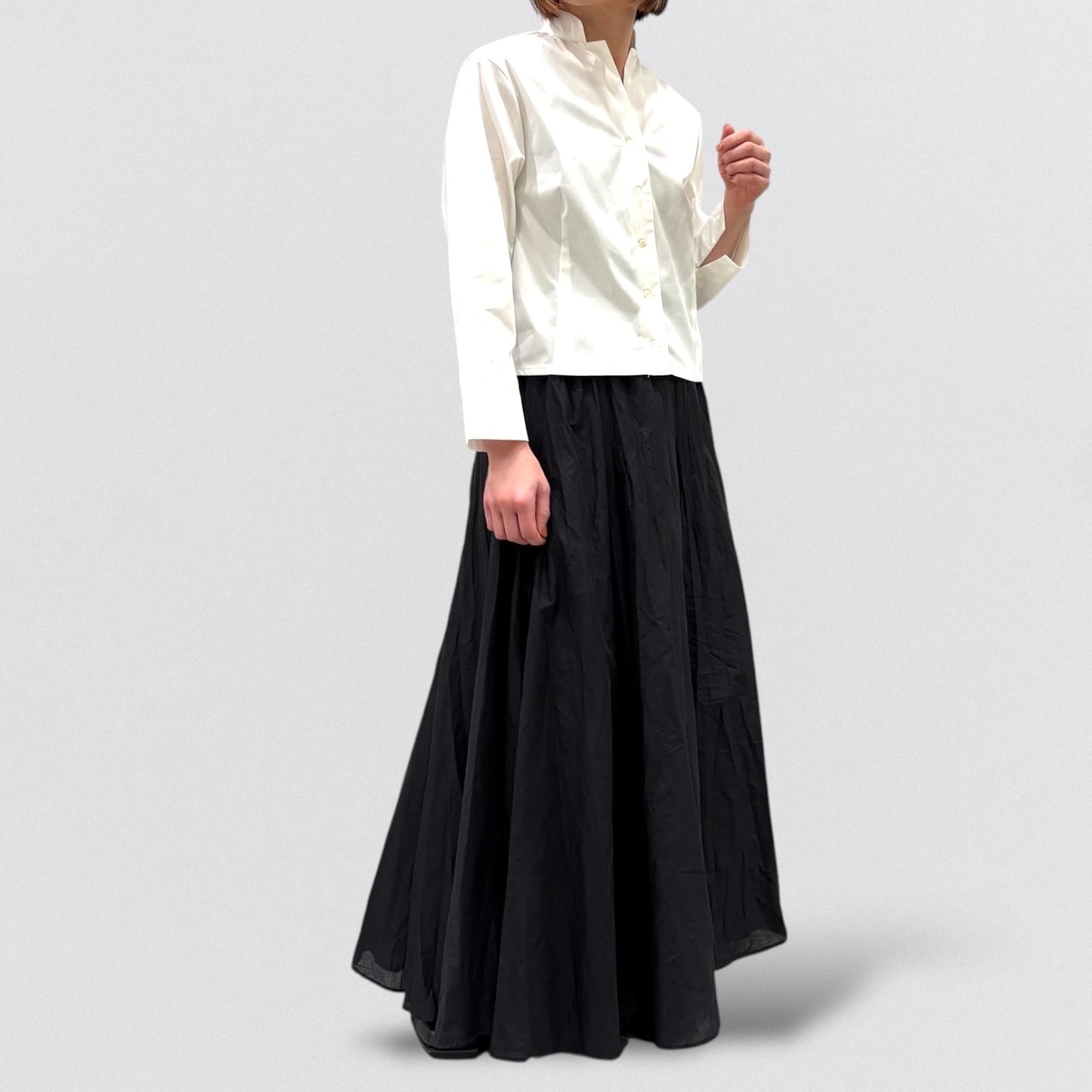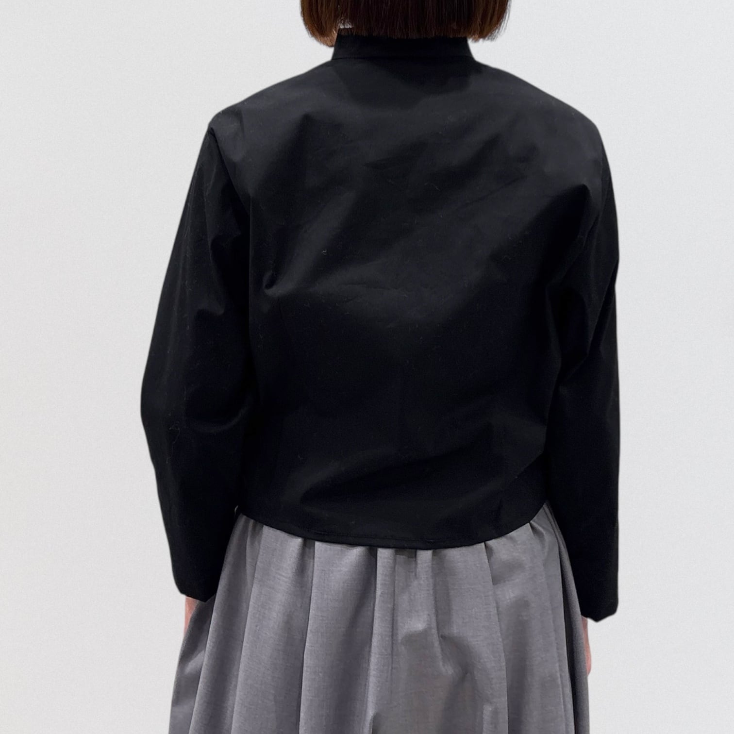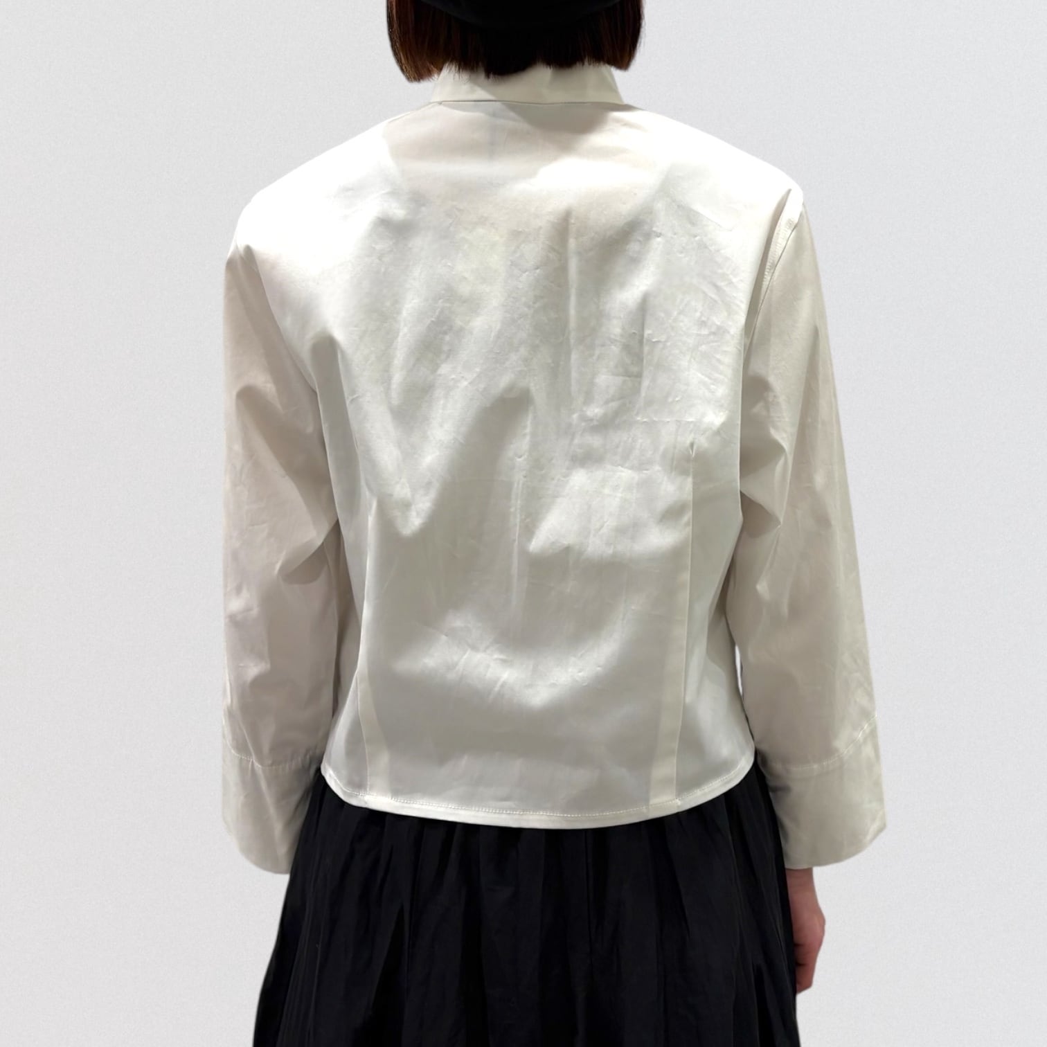 シンプルで上品な着こなしを演出するスタンドカラーショートシャツです。