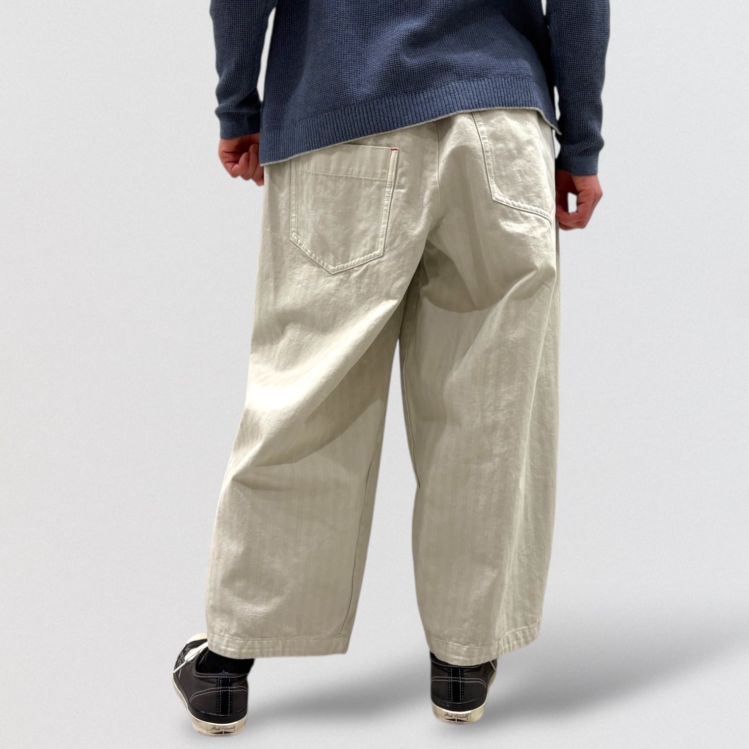 後ろポケット部分が左右非対称のデザイン。