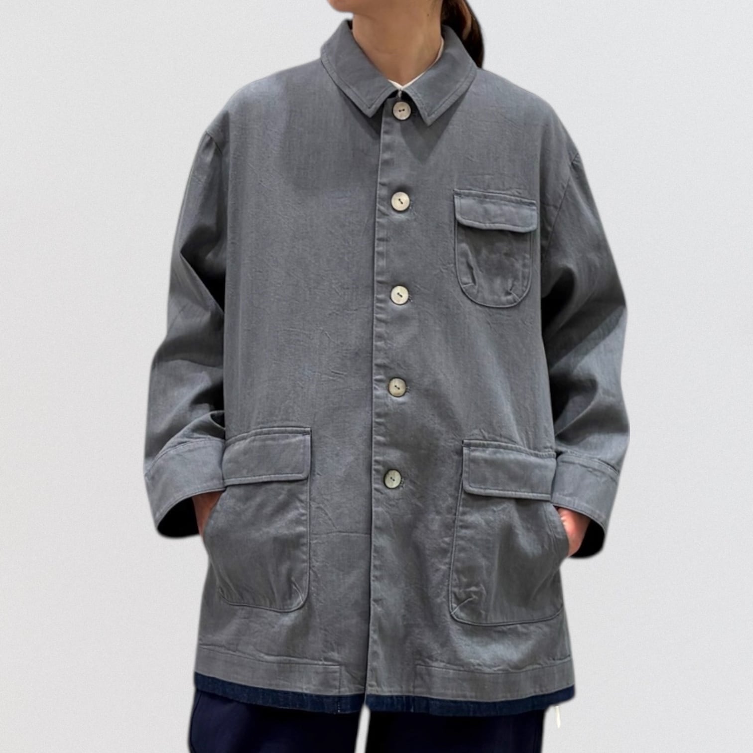 USA綿×オーストラリア綿を国内紡績糸にしてナチュラルなムラ感とソフトな風合いが特徴な、8ozデニムを使用したヒップ丈のジャケットです。