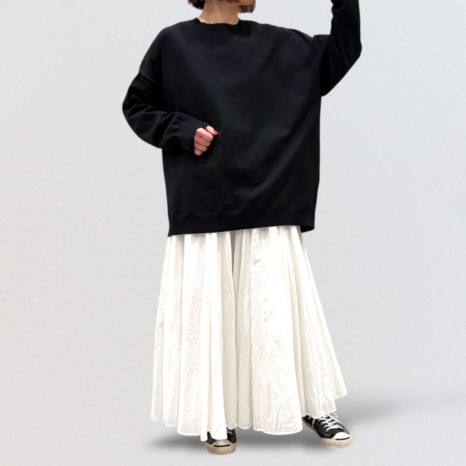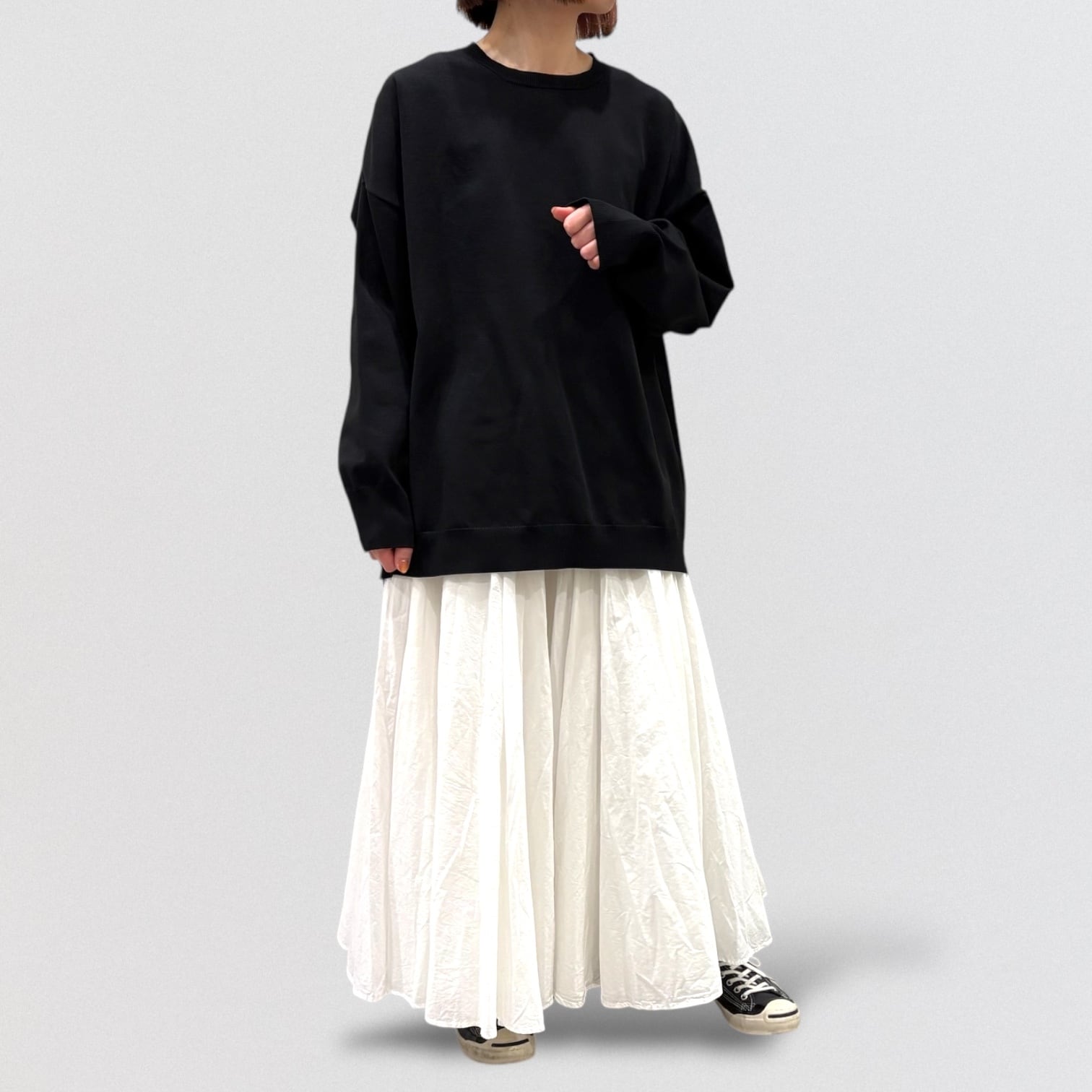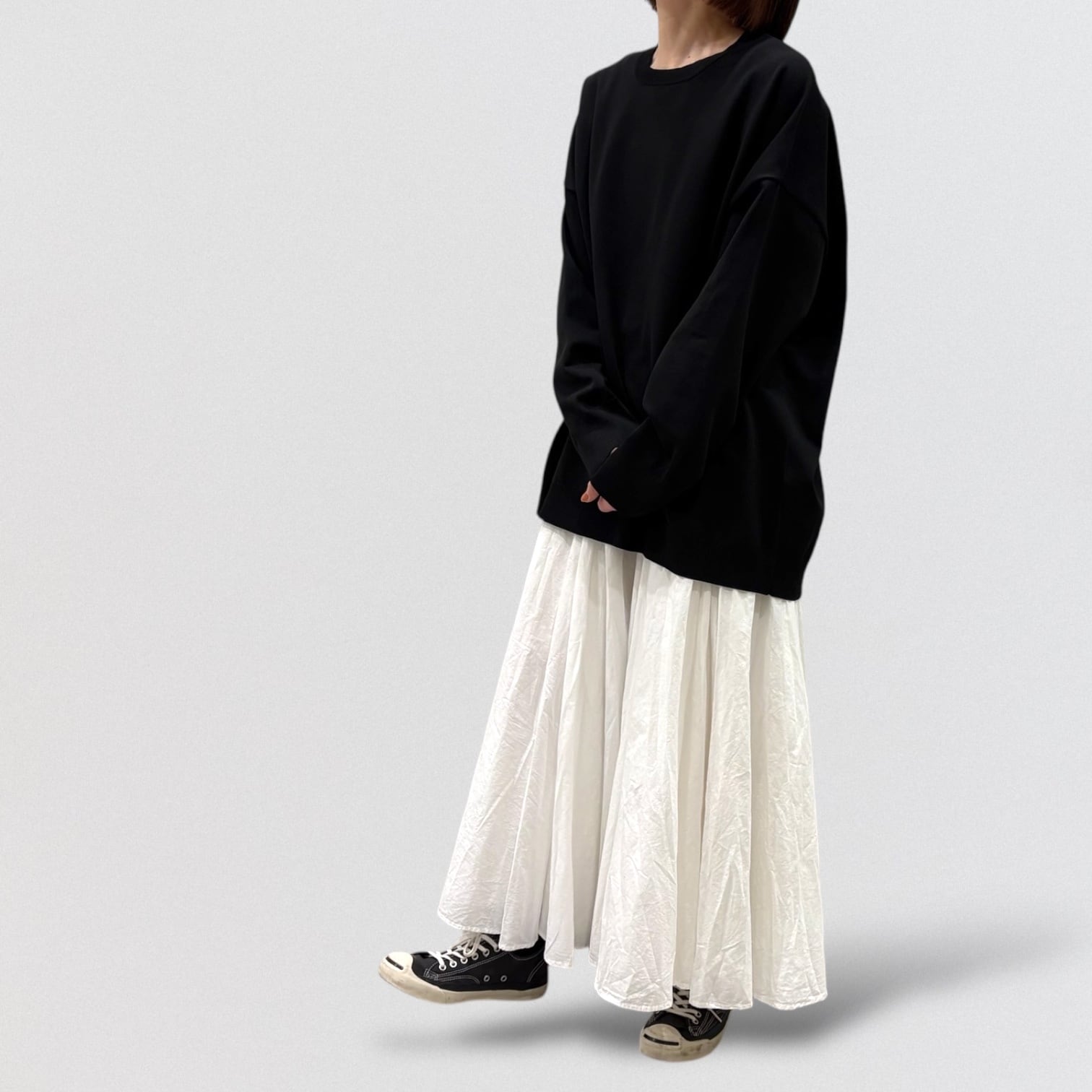 若干の前後差のある裾ラインでヒップがきれいに隠れてザックリと着用できベーシックなデザインです。