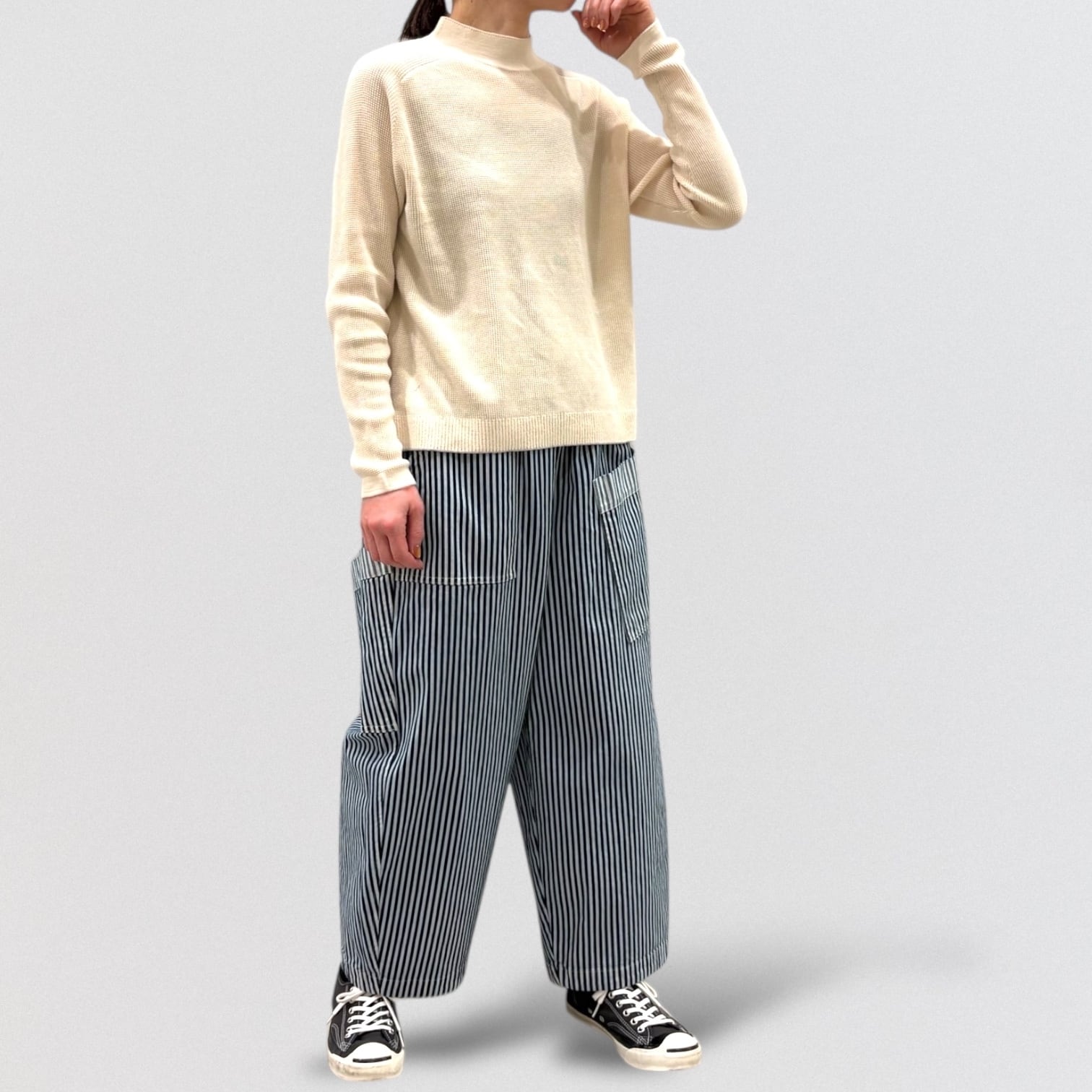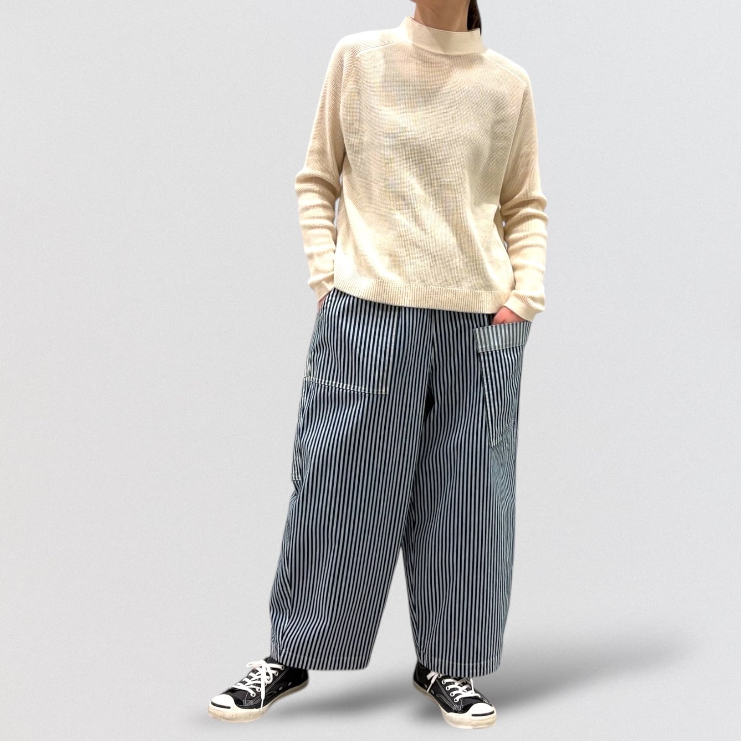 リンクス編みのモックネックプルオーバーです。