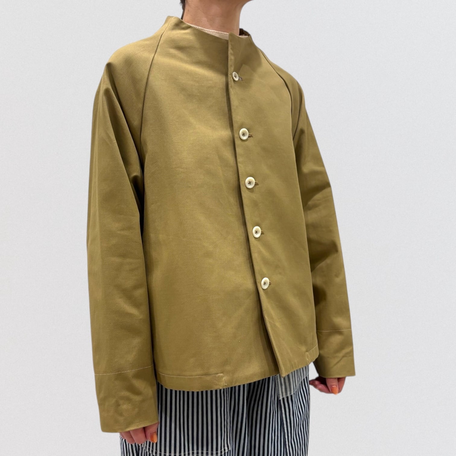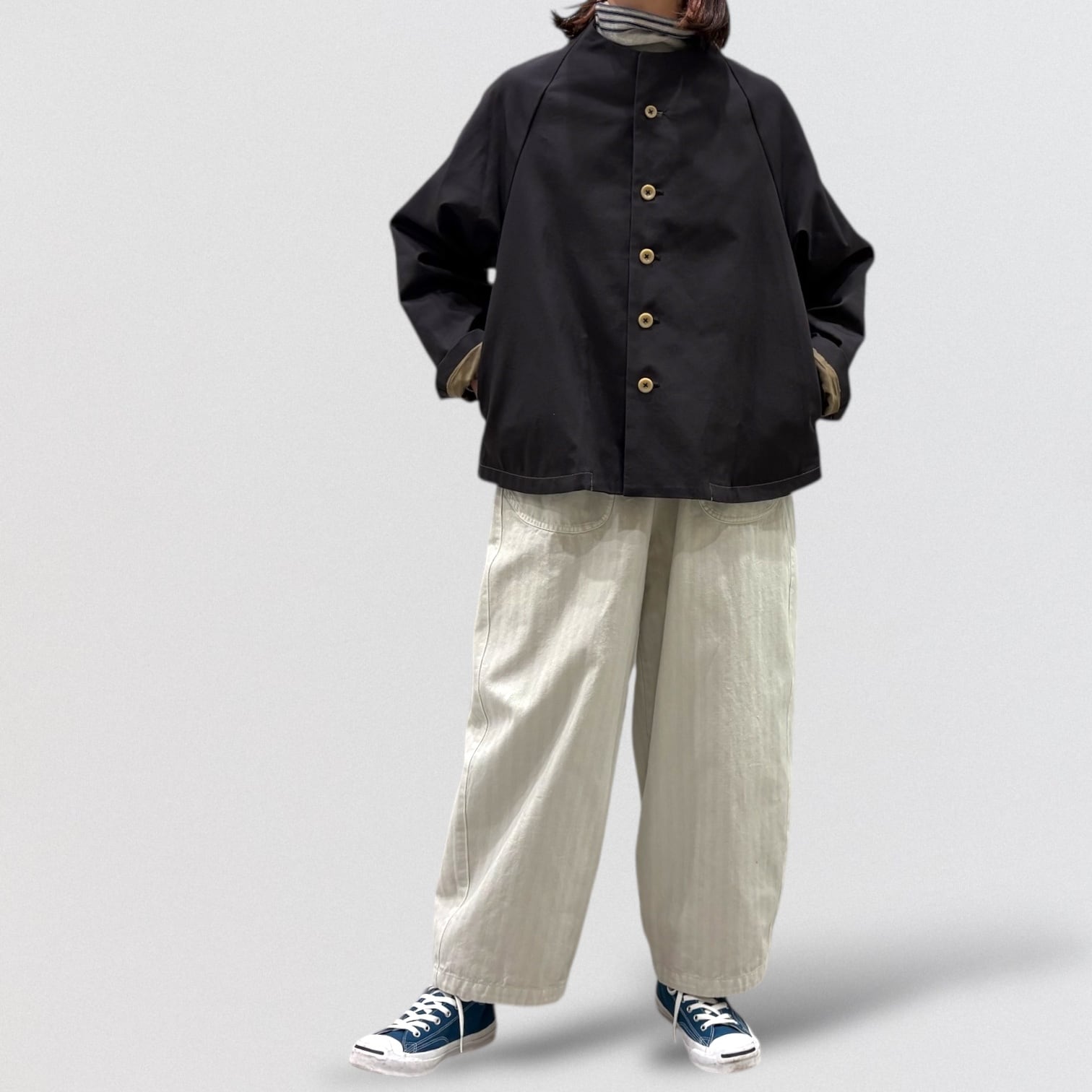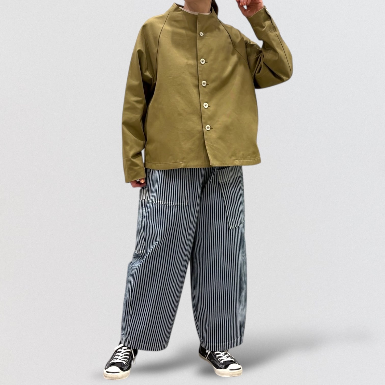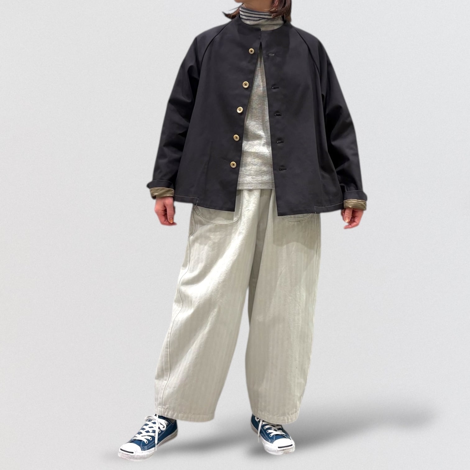 ムラ糸(太い細いがランダムに糸にある)コットンのツイルで雰囲気のあるきれいめなブルゾンです。