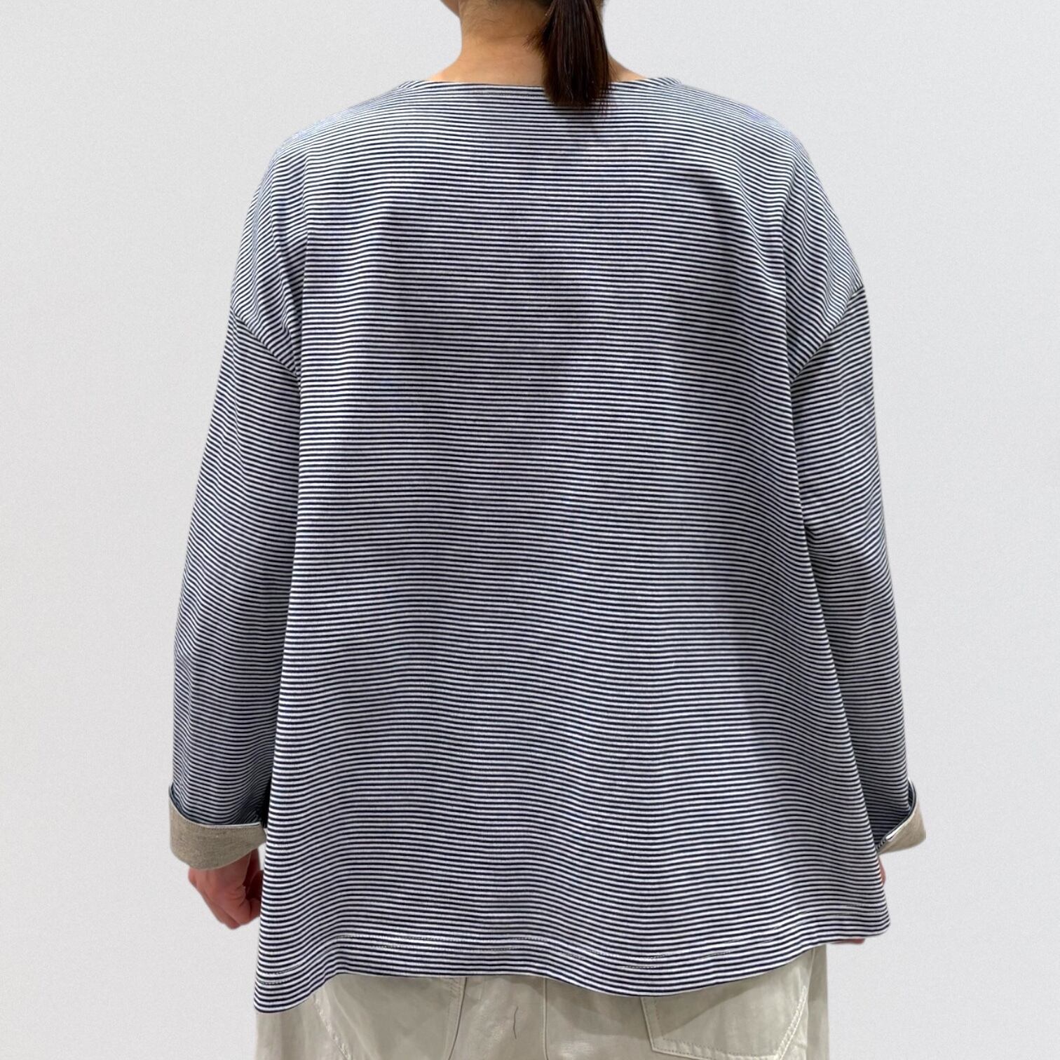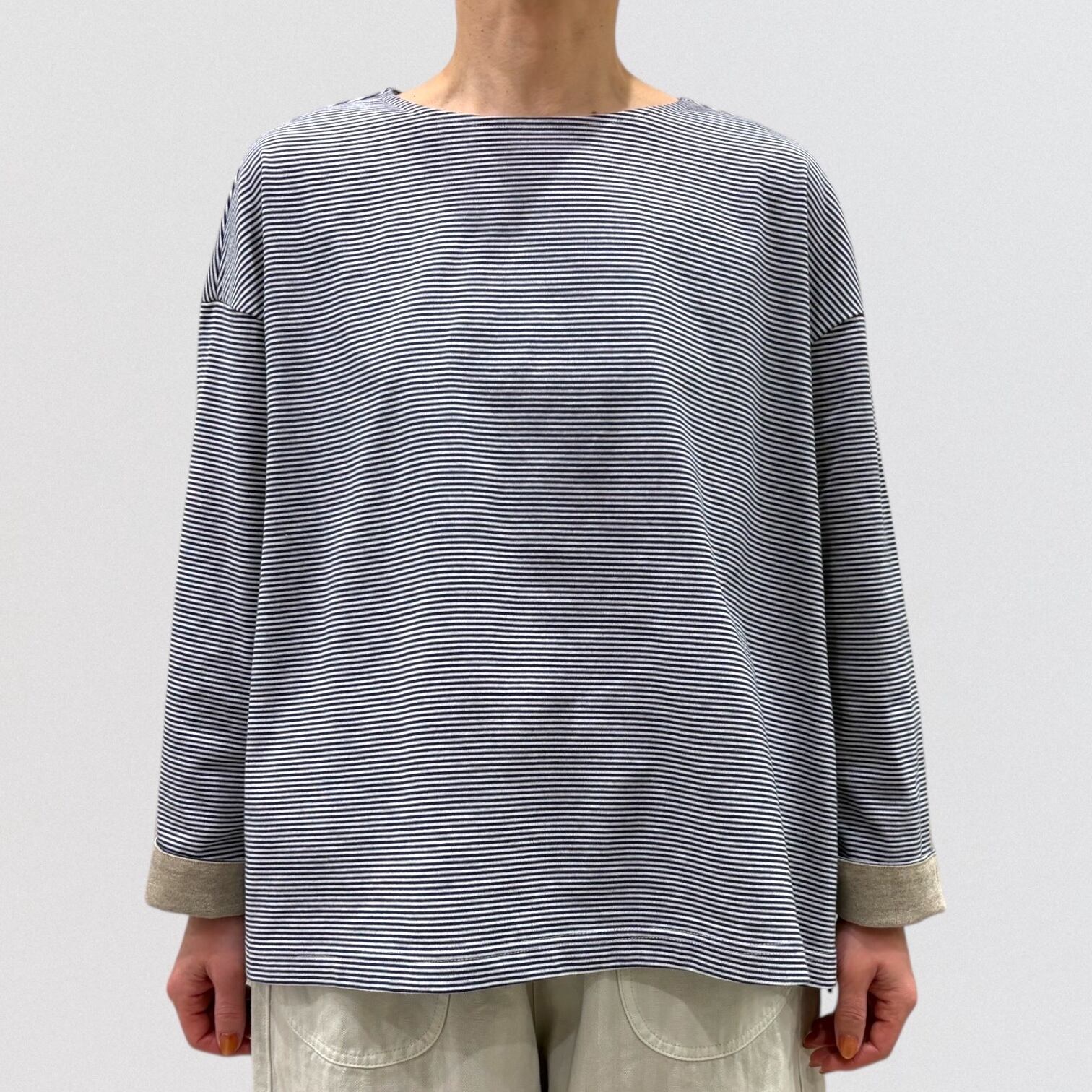 コットン天竺素材のナローボーダープルオーバー。
