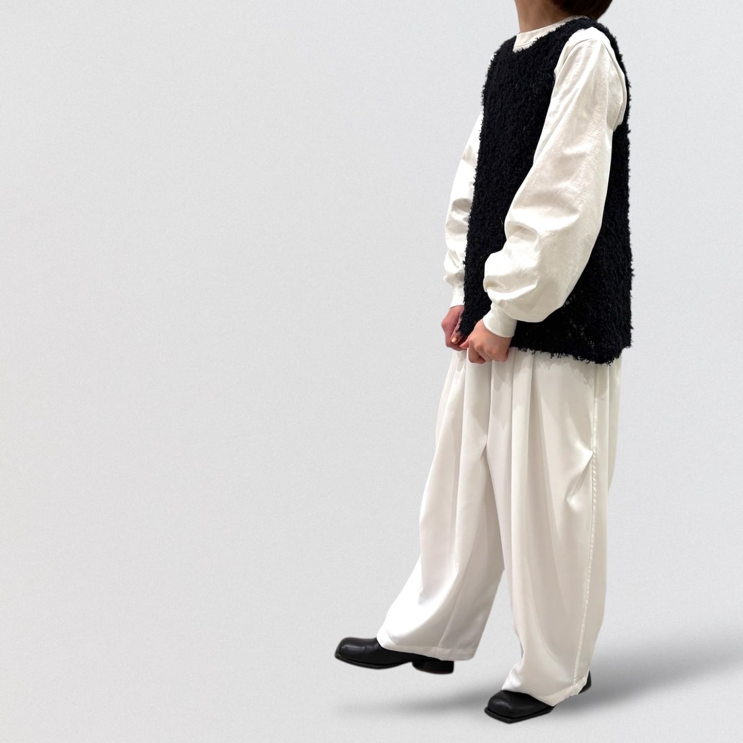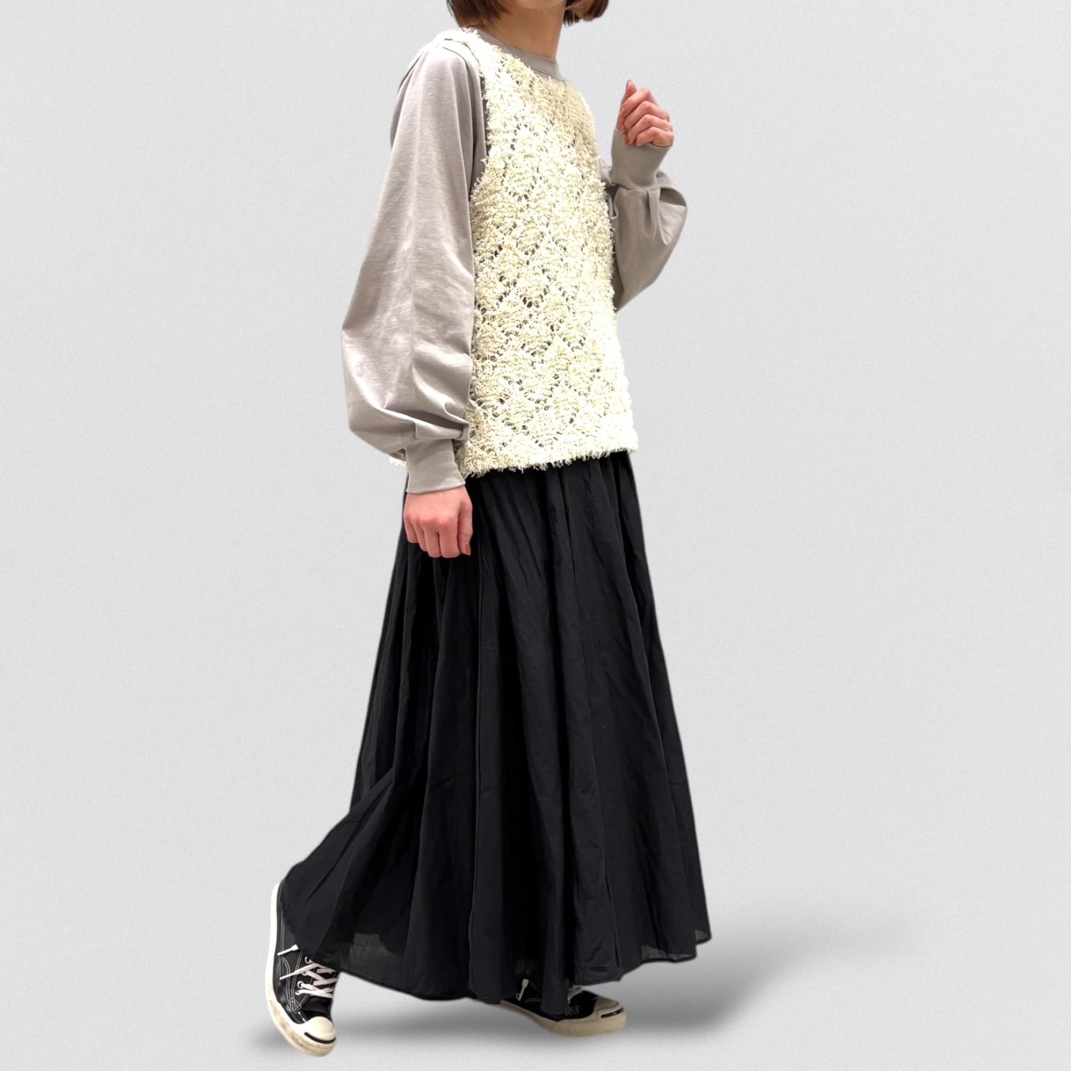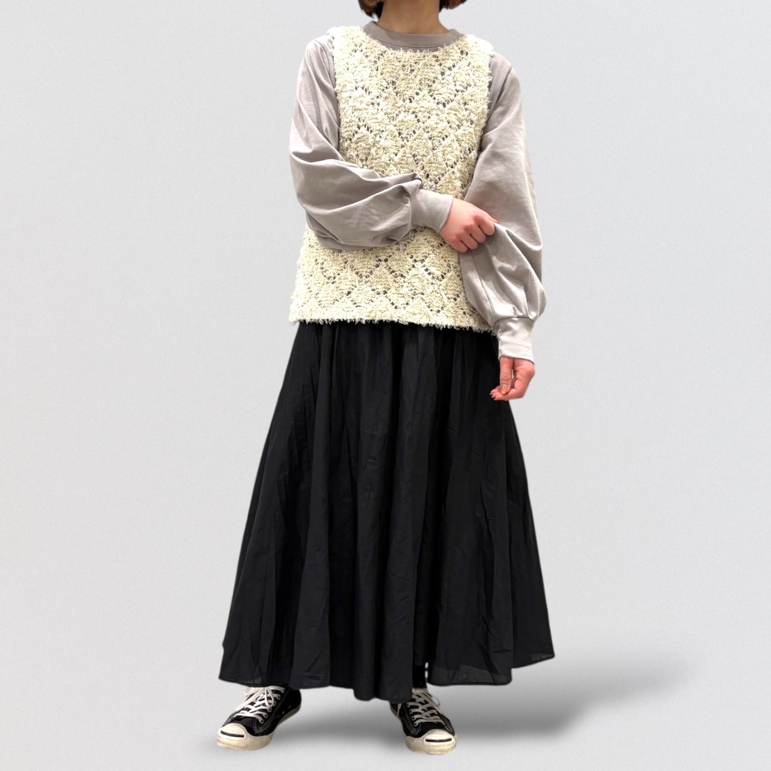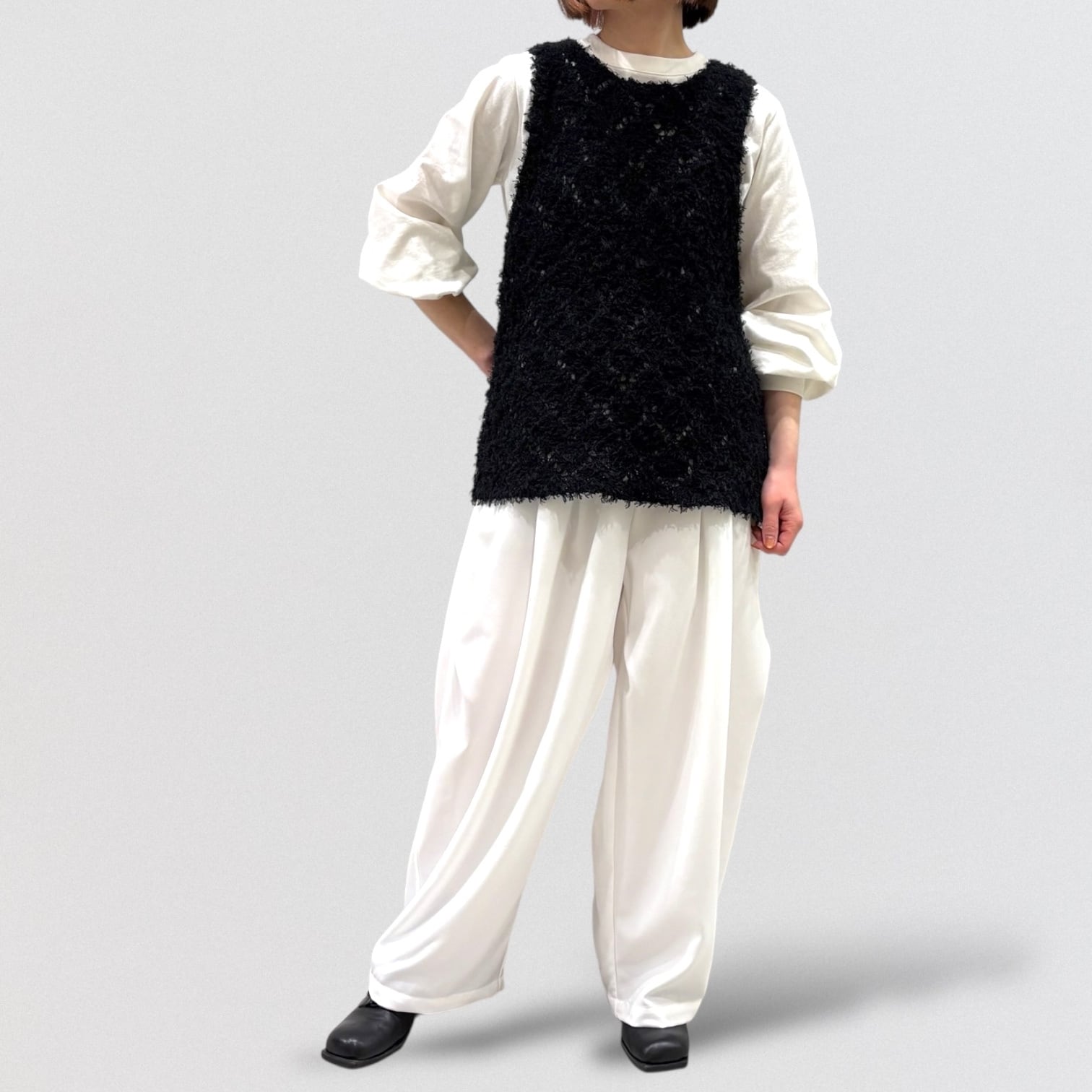 同色でインナーを合わせても生地に特徴があるので重ね着を魅力的にしてくれます。