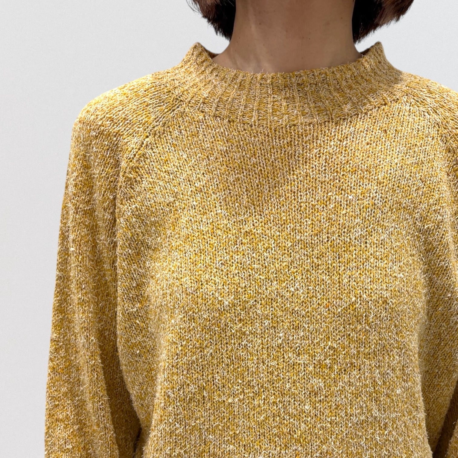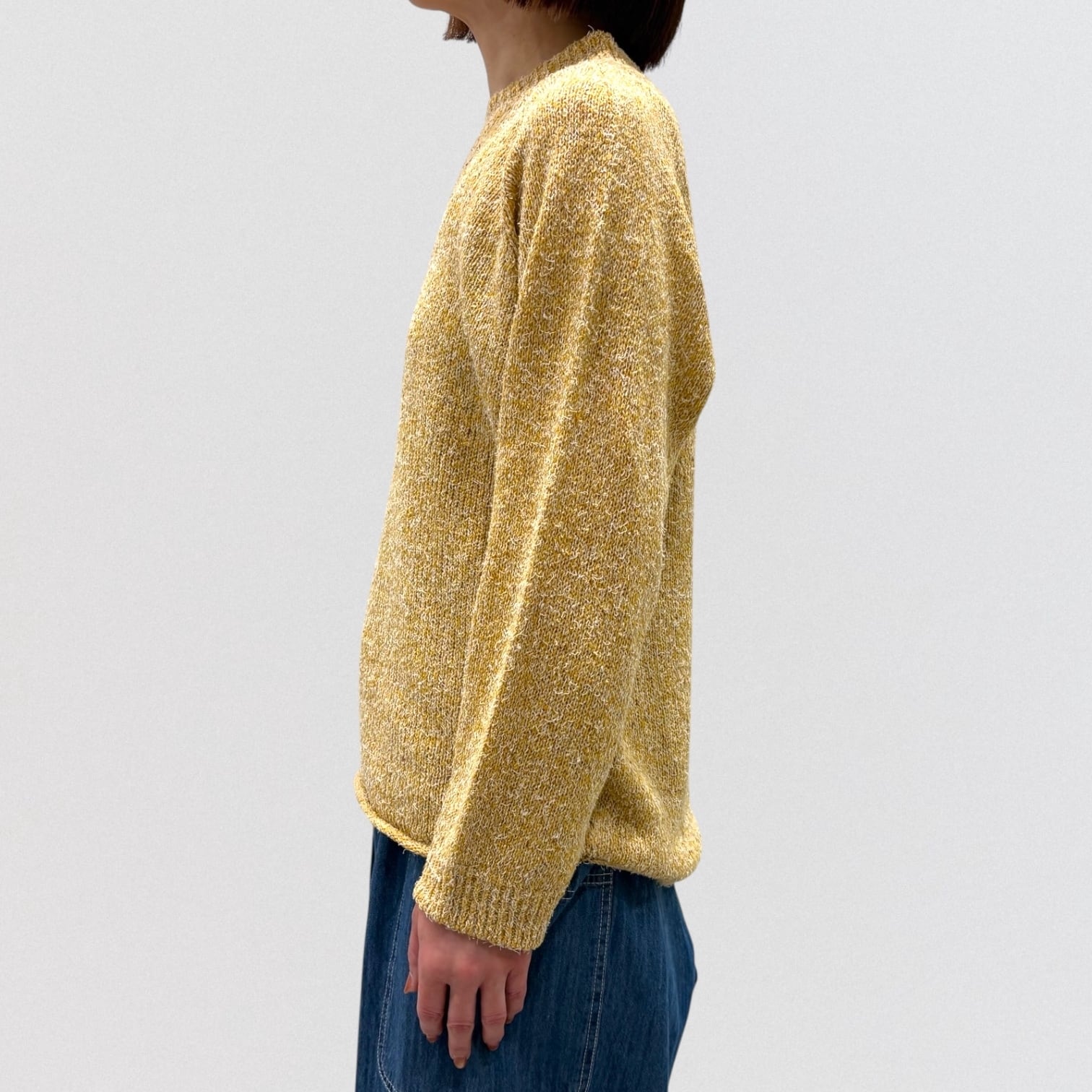 100%リサイクル原料を使用し、カールヤーンを撚糸した特別な素材は、表情豊かなシルクネップとループが織りなす、ナチュラルでやさしい風合いが魅力で、見た目にも可愛らしく、着るだけでコーディネートに奥行きを与えてくれます。