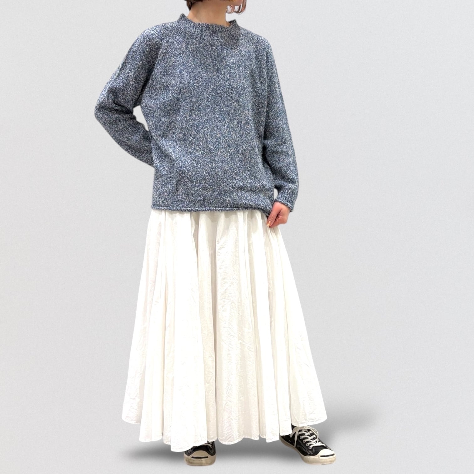 日本製ならではの丁寧な編み立てと確かな品質を感じられる一枚で、日常使いはもちろん、長く愛用したい大人のためのニットです。