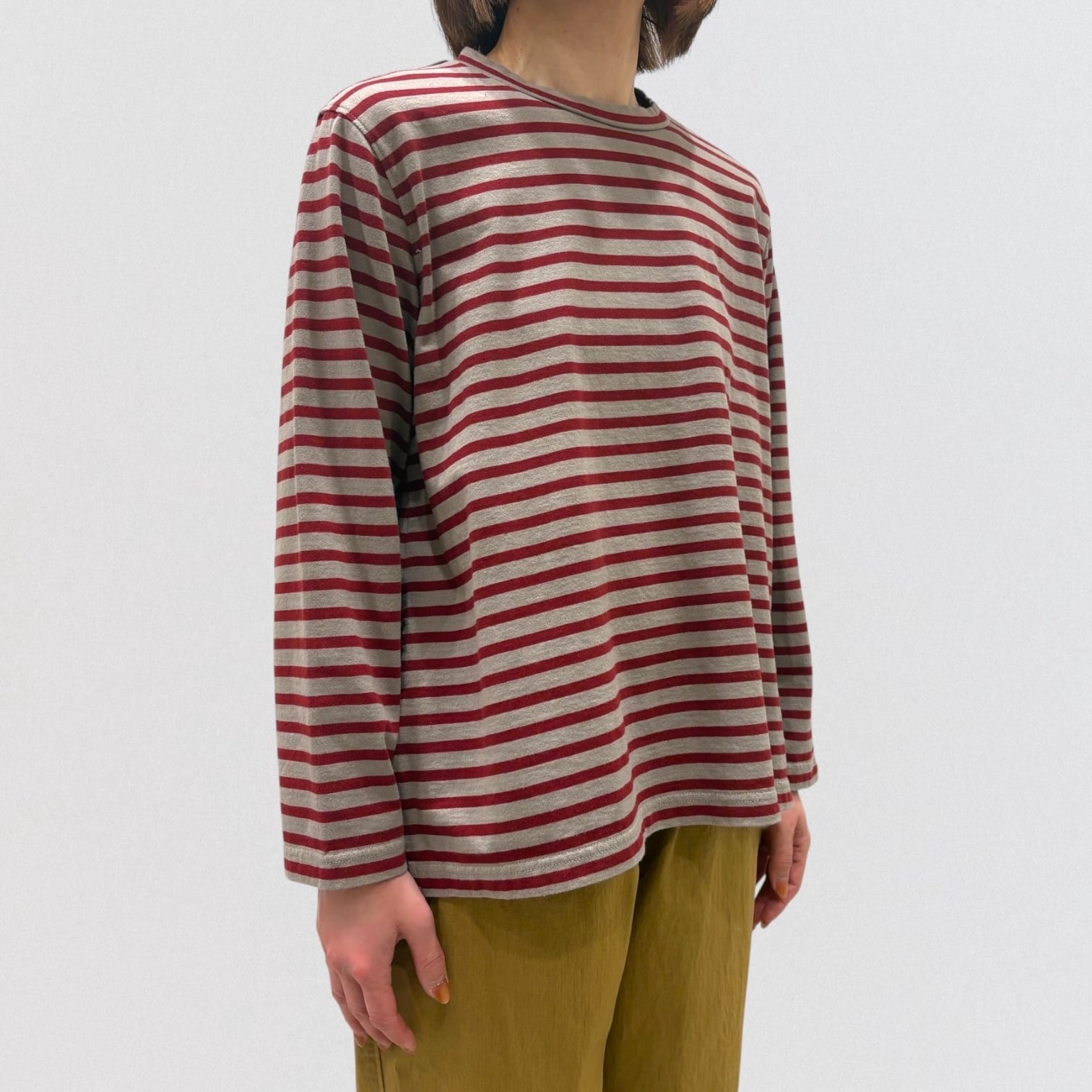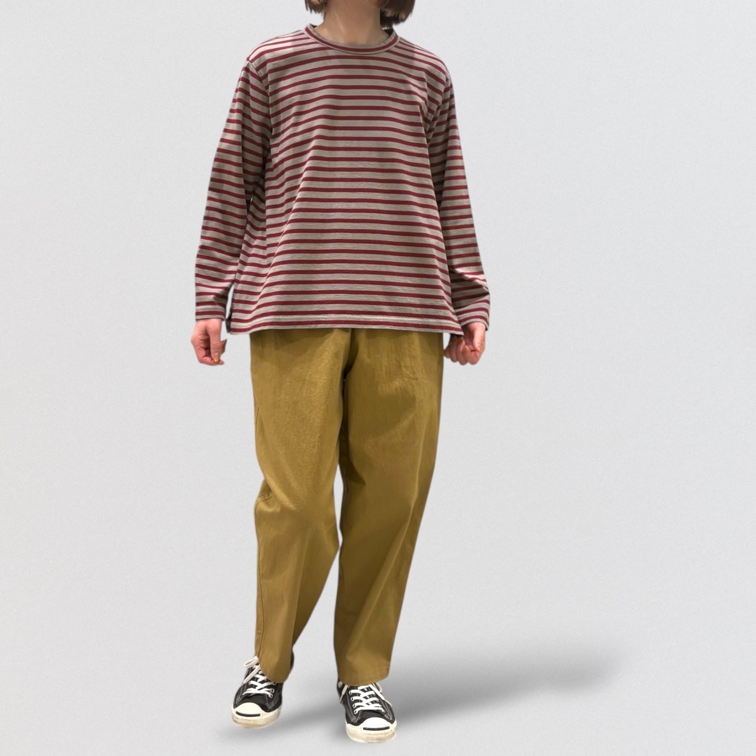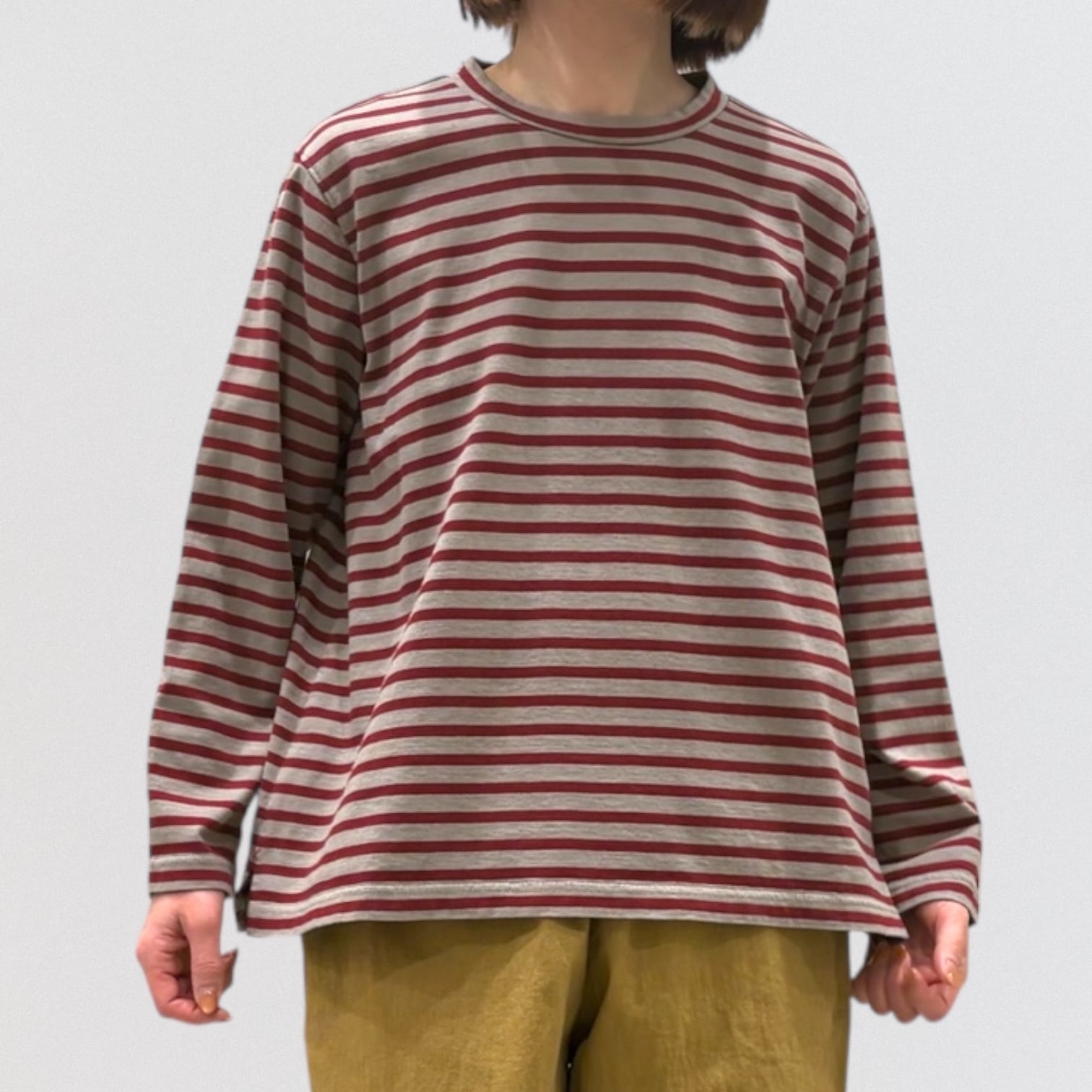 デニムとの相性が良い、深みのあるエンジのボーダー。