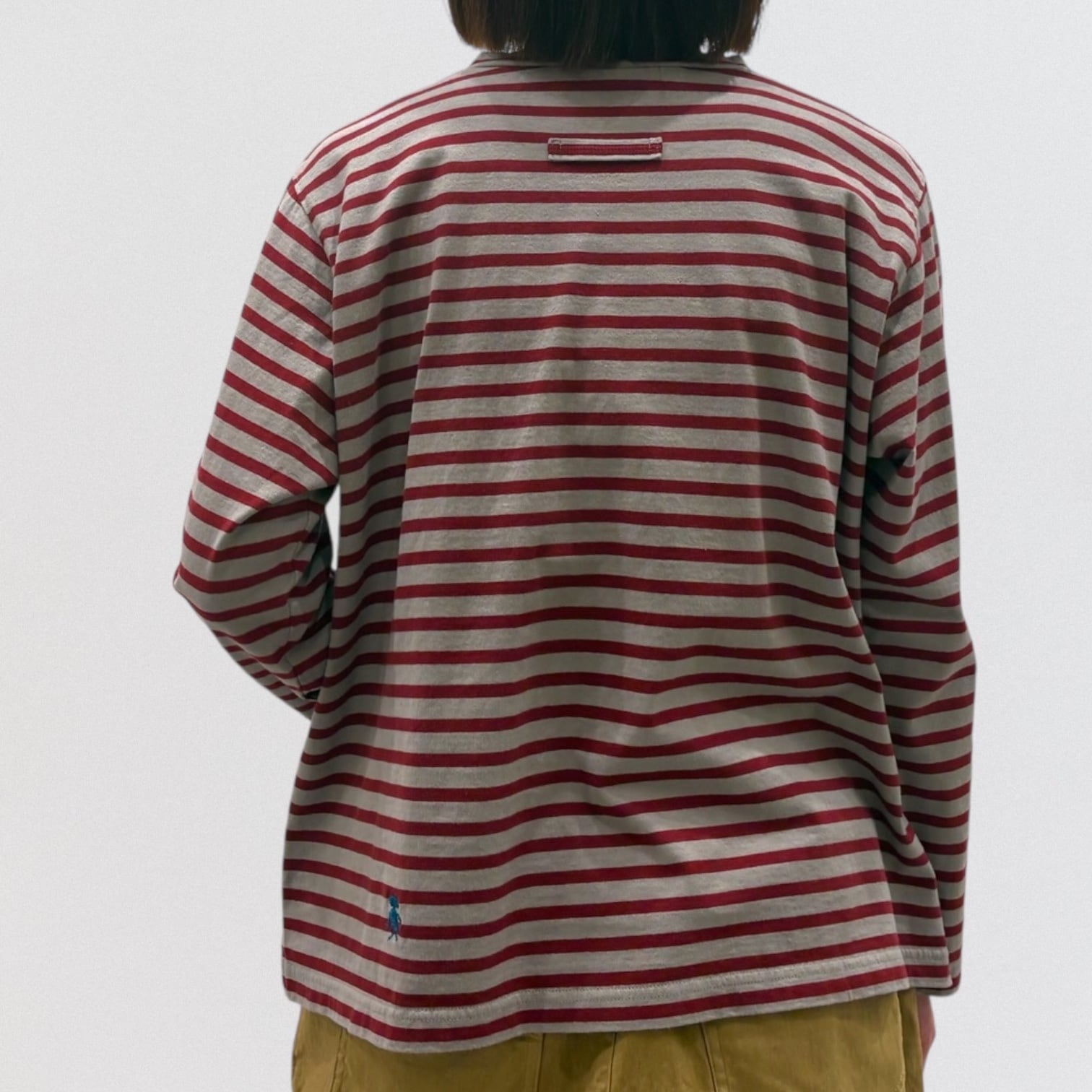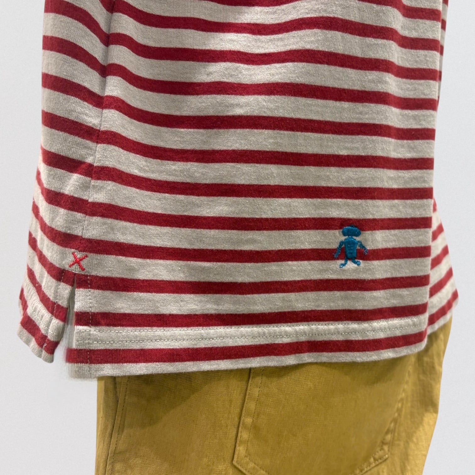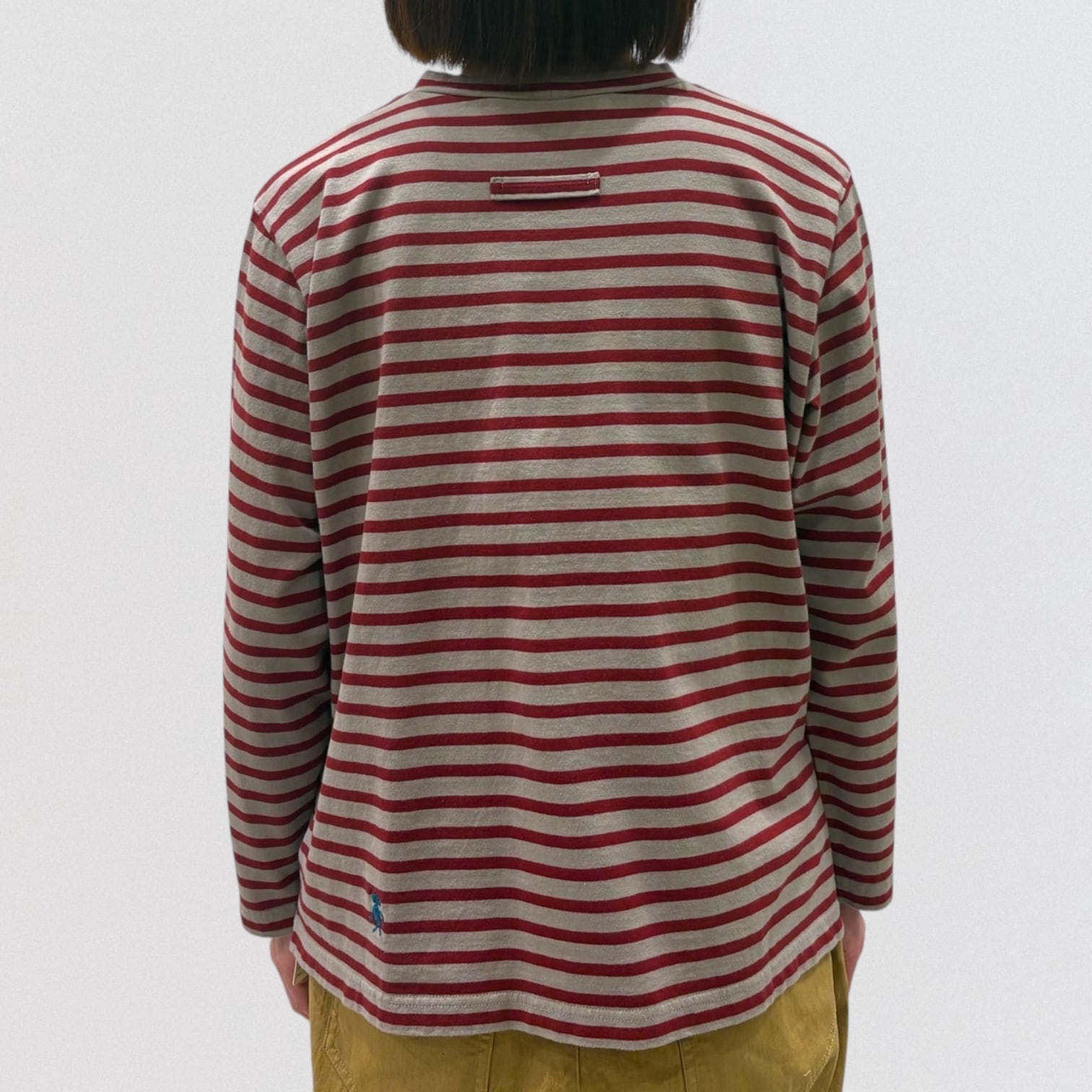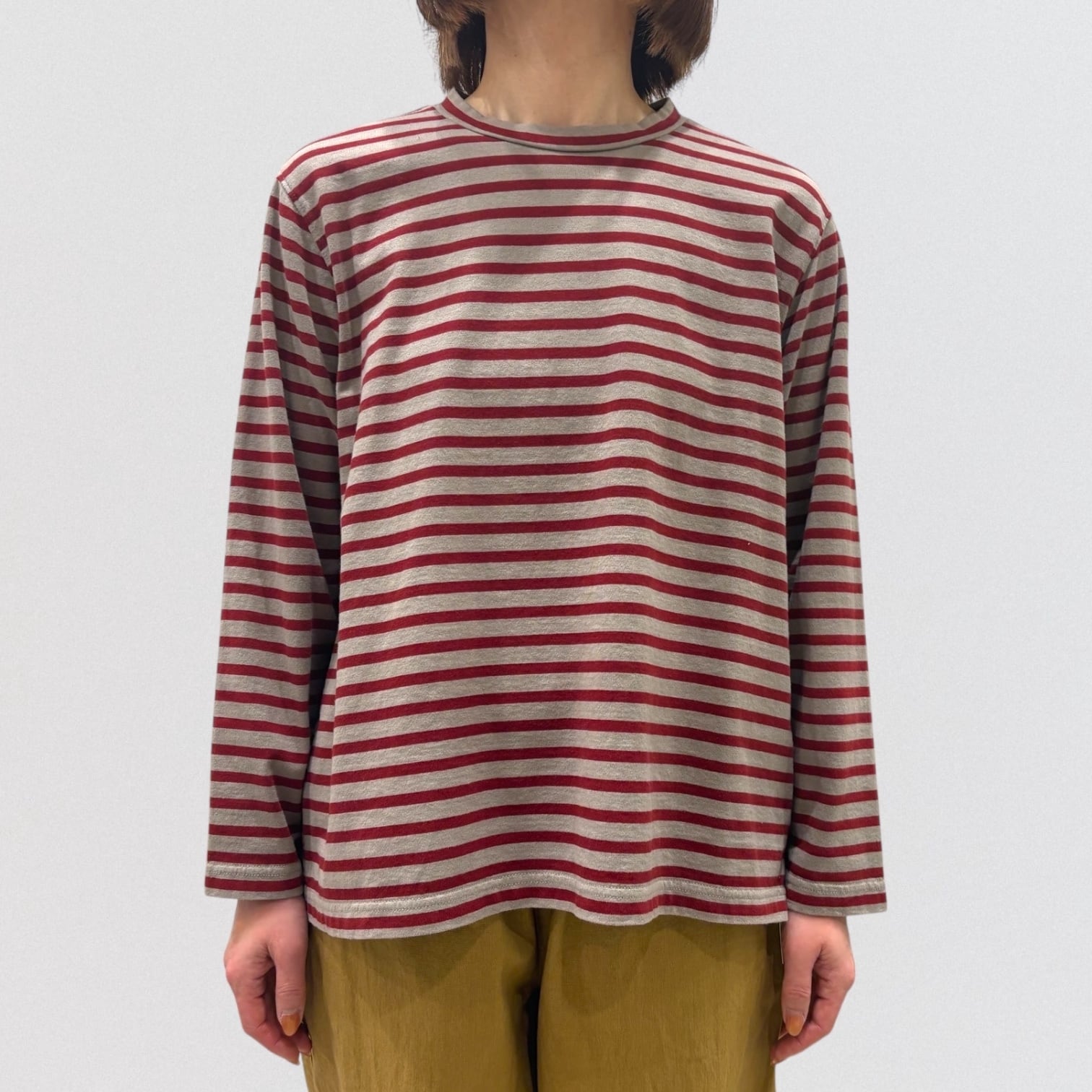 デニムとの相性が良い、深みのあるエンジのボーダー。