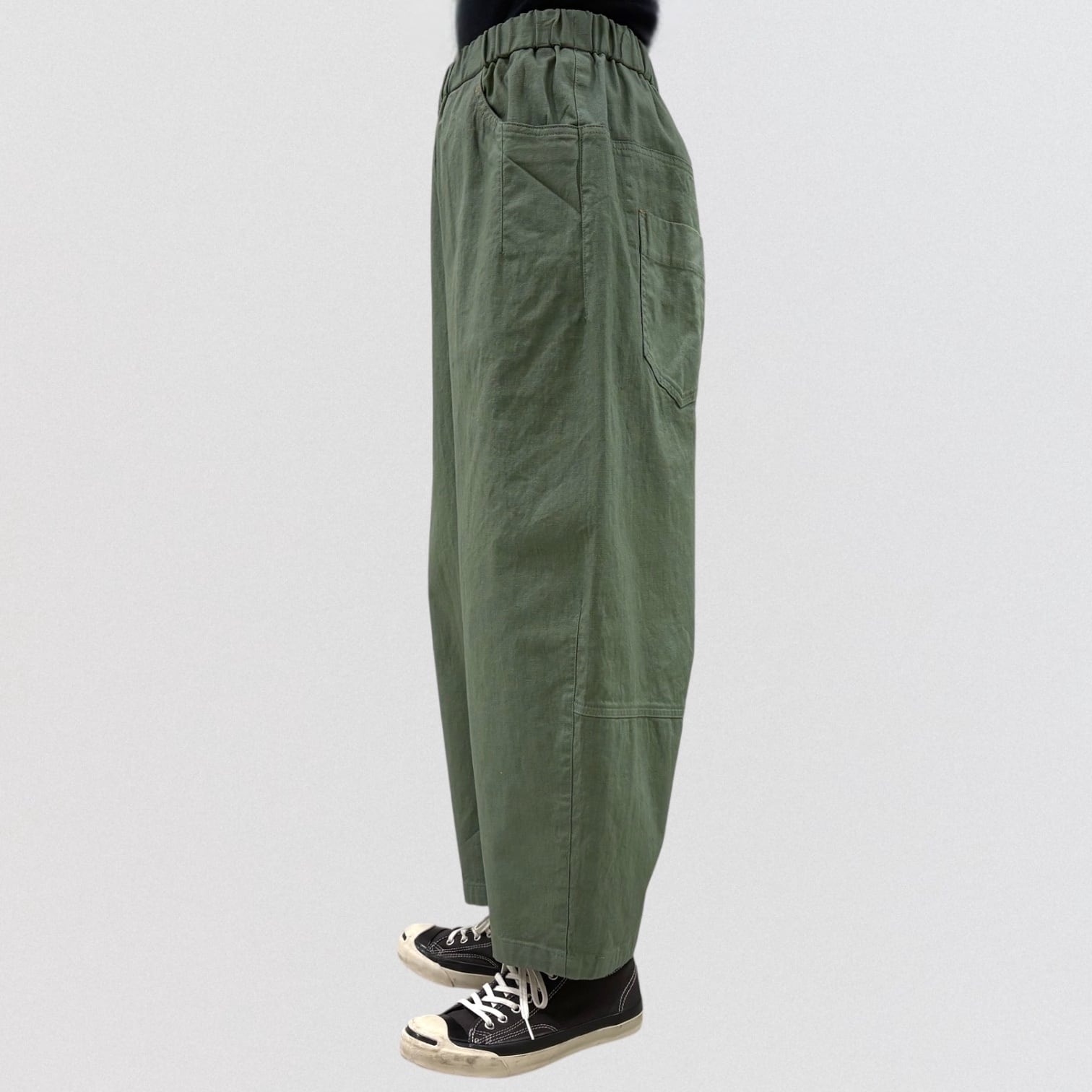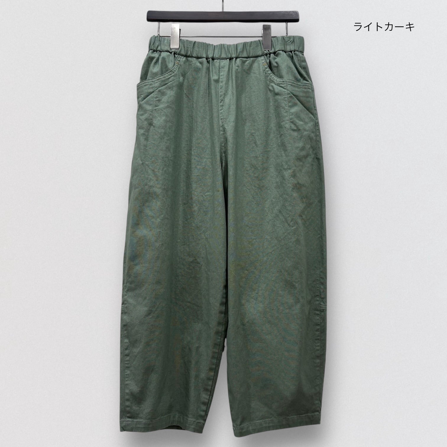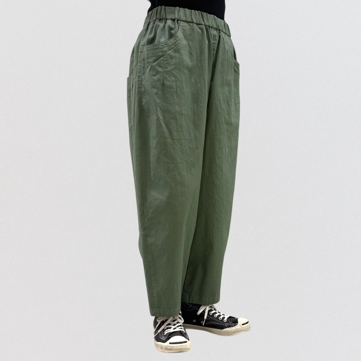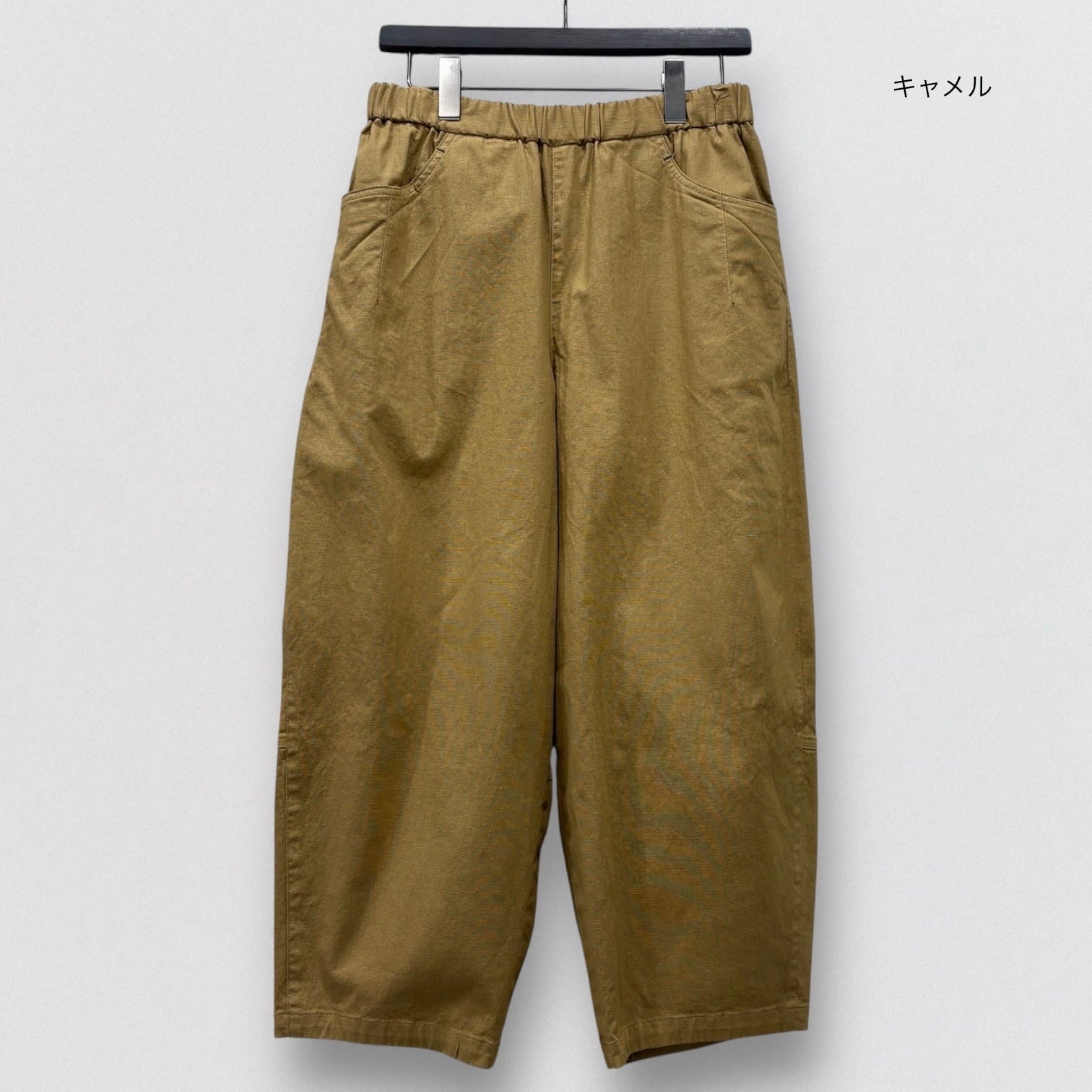 コットンリネンのストレッチコクーンパンツ。