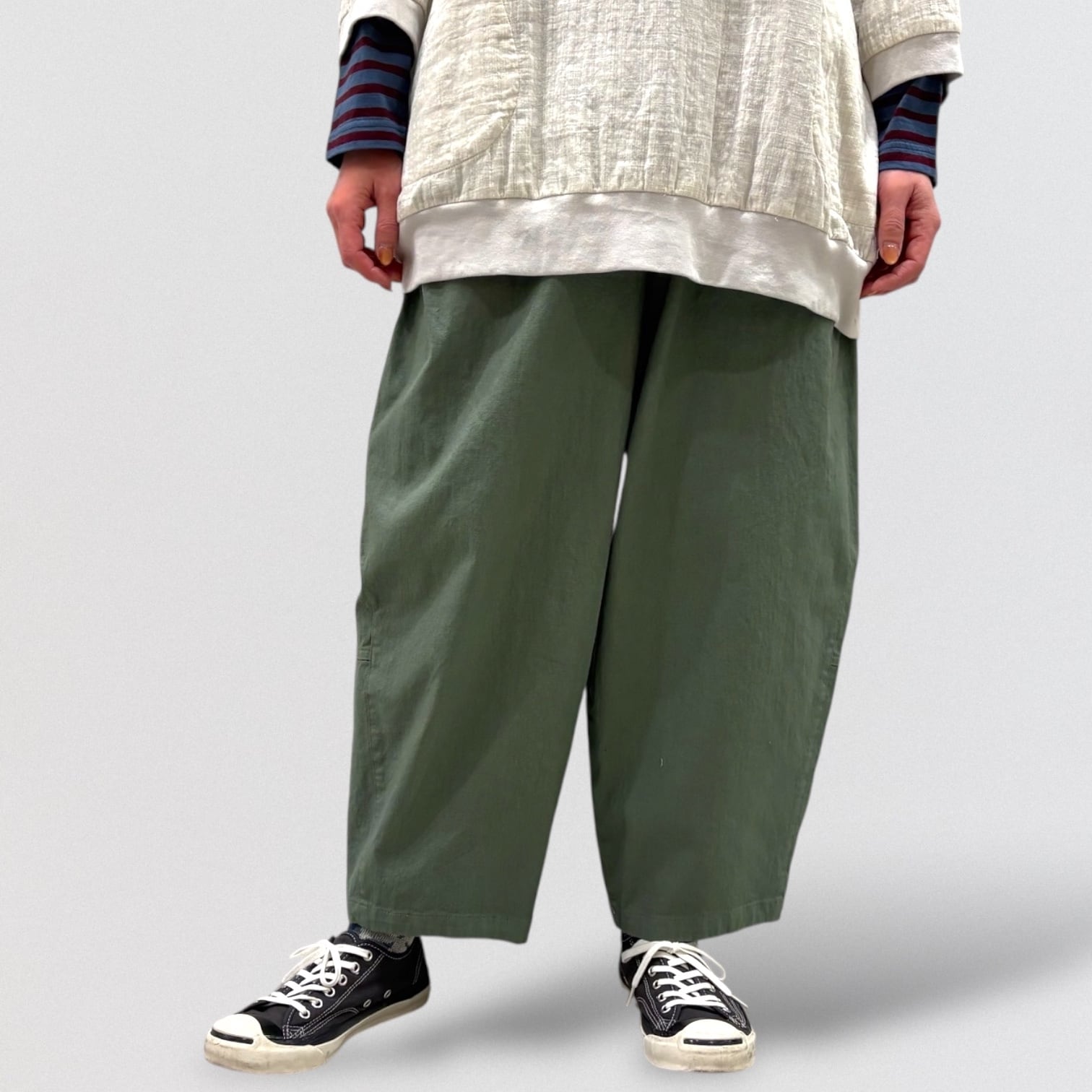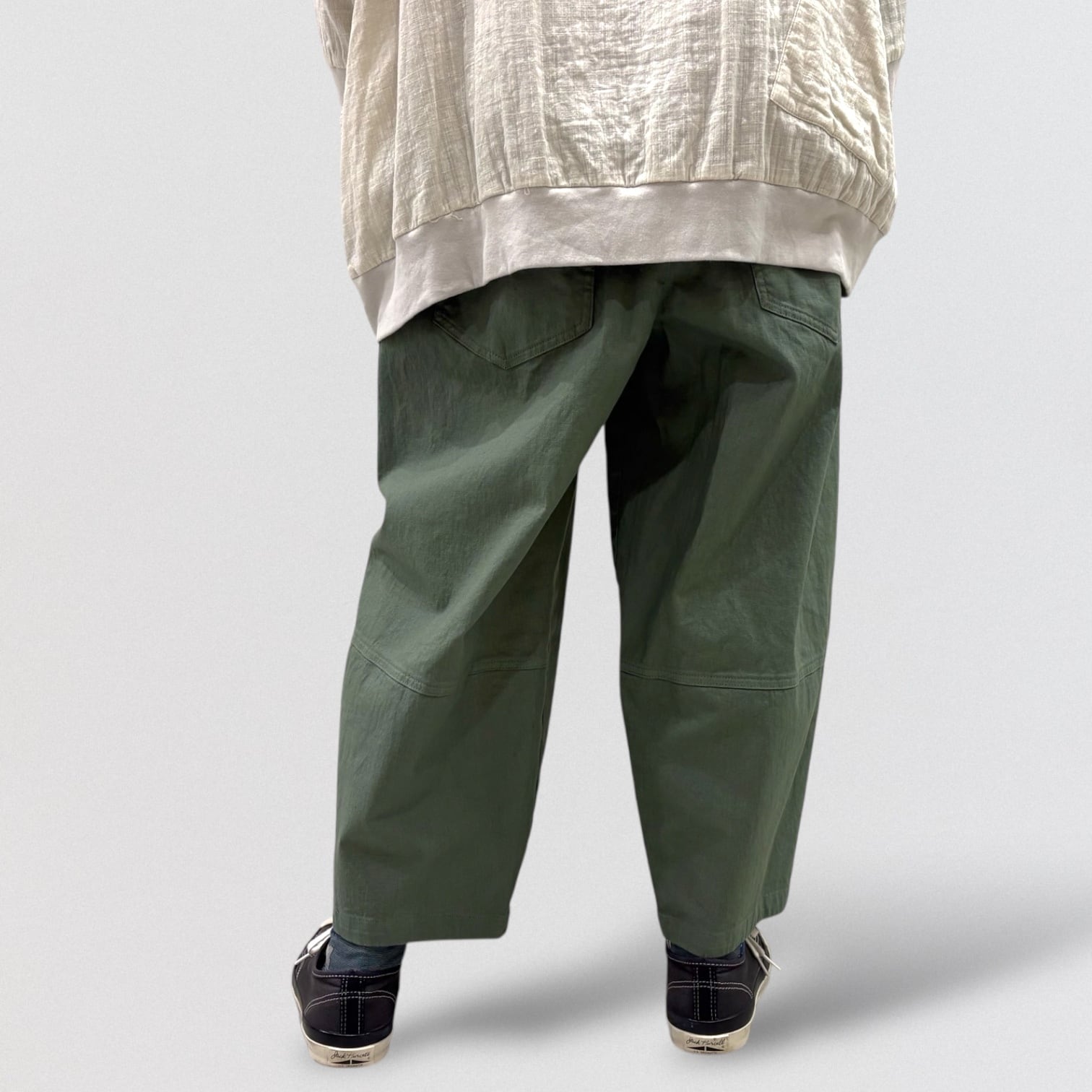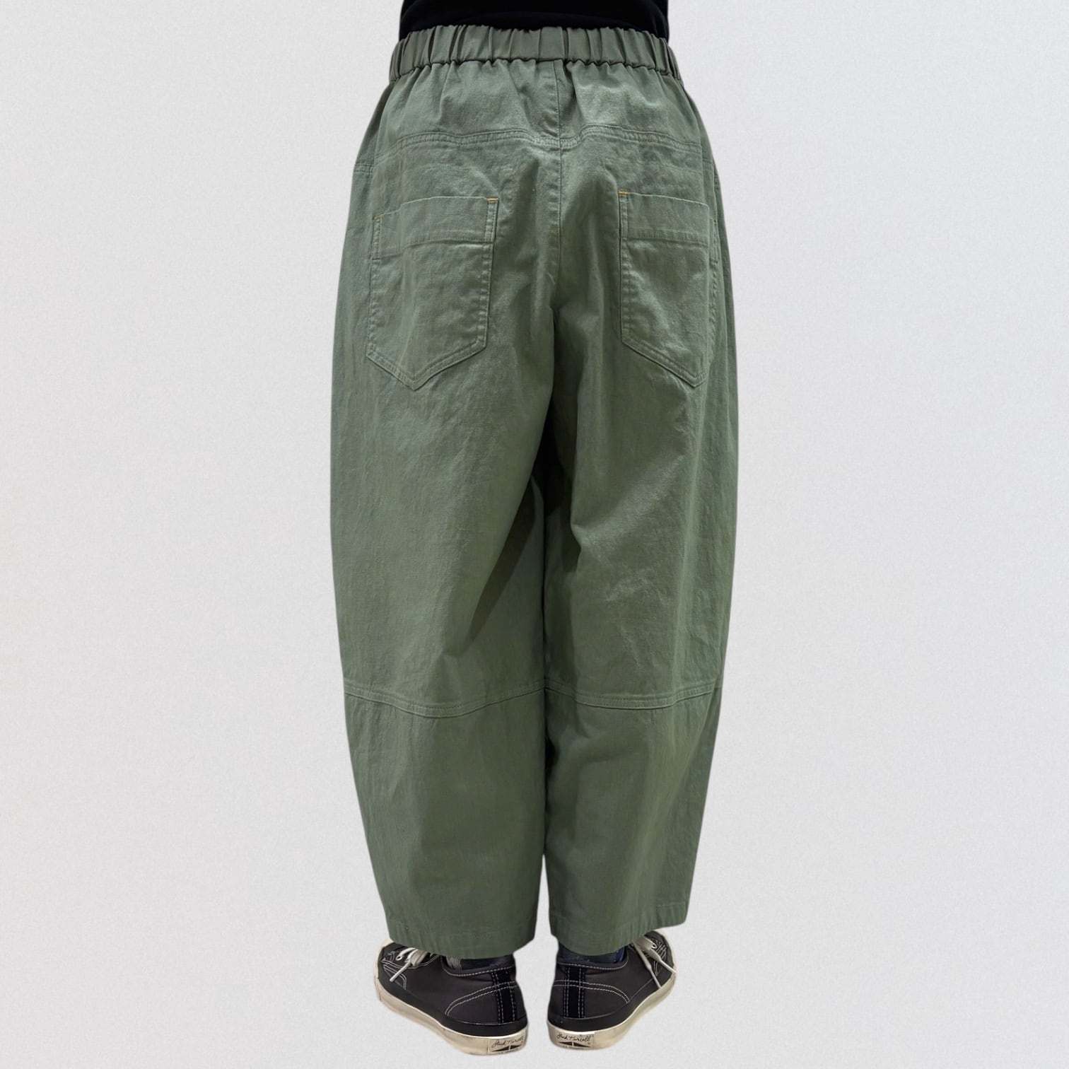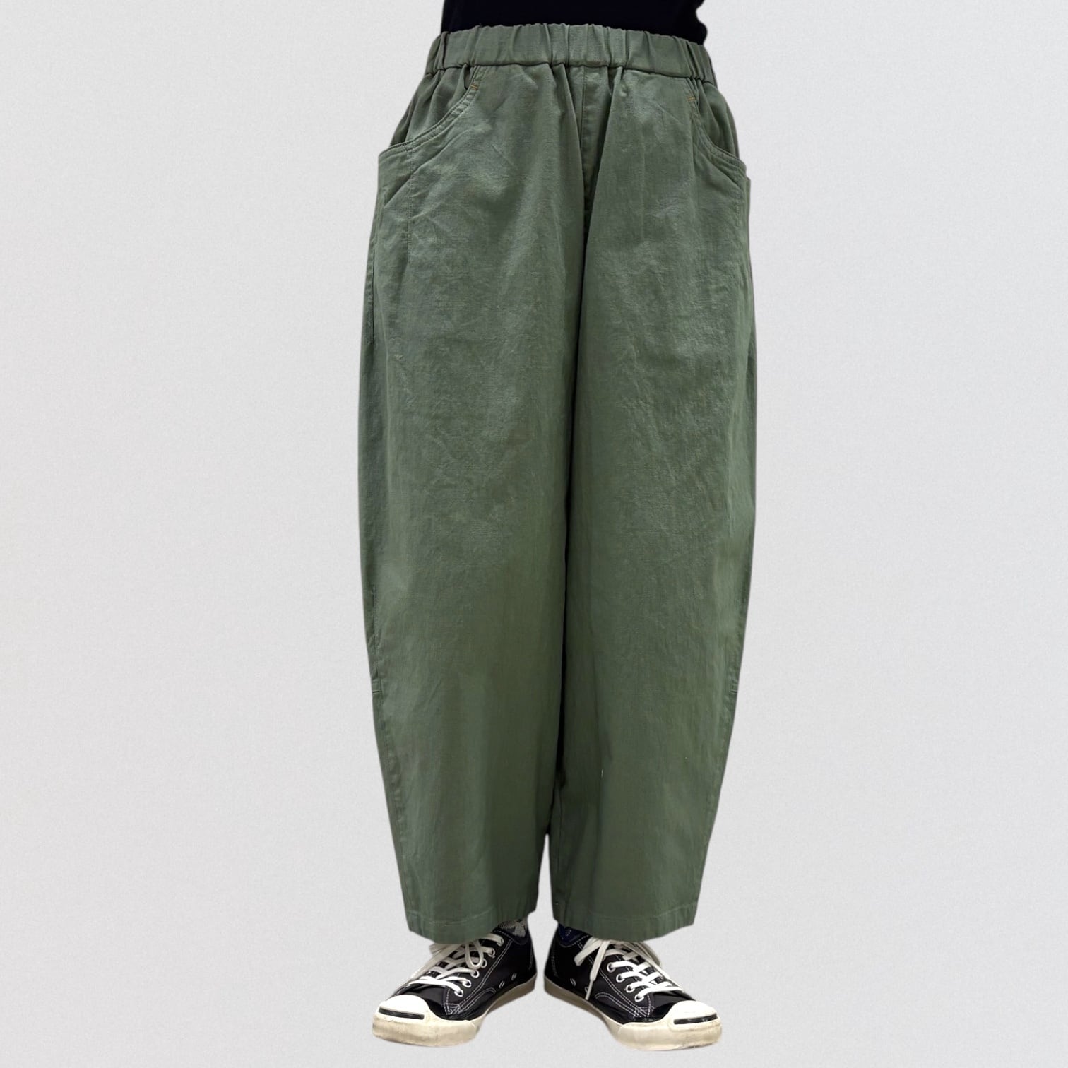 コットンリネンのストレッチコクーンパンツ。