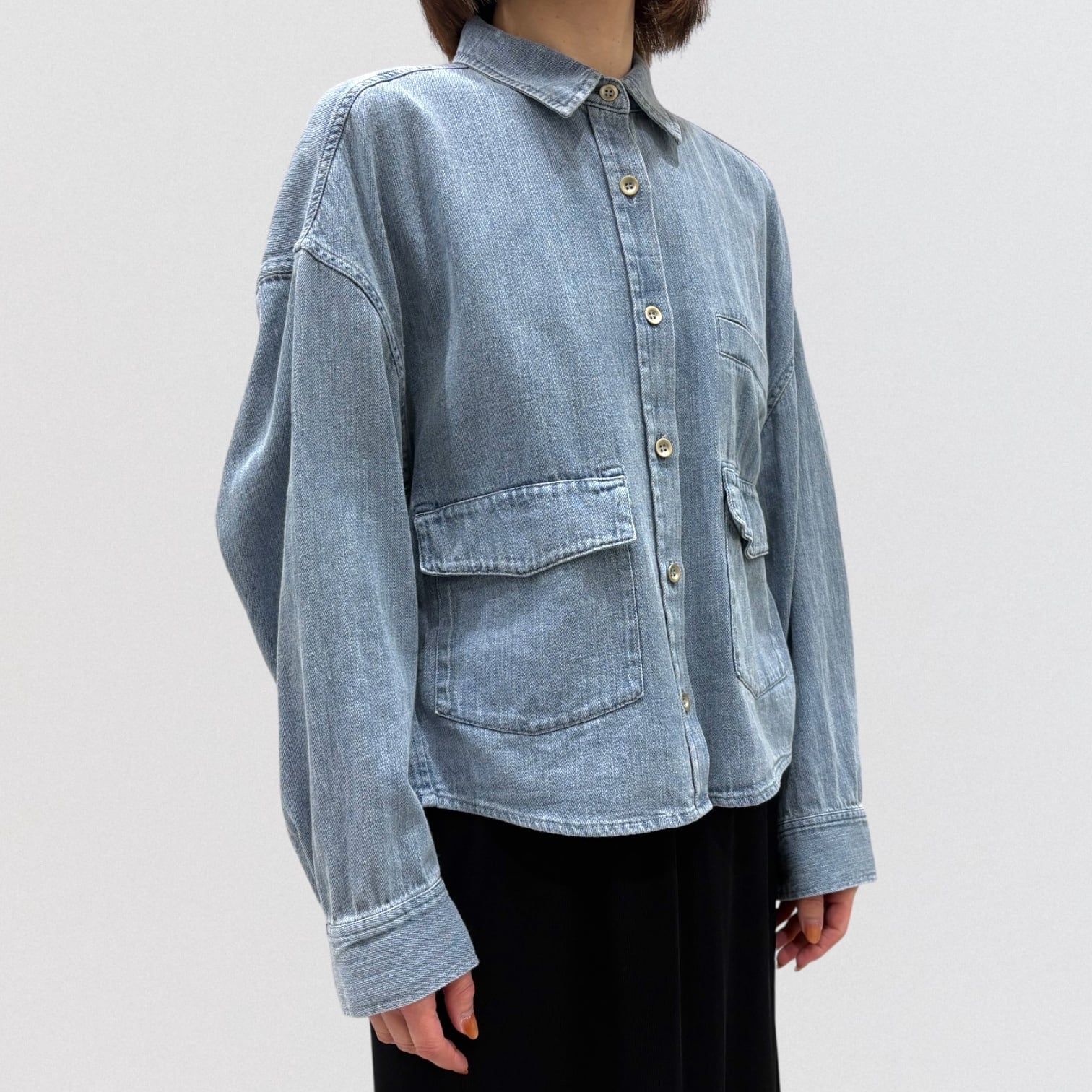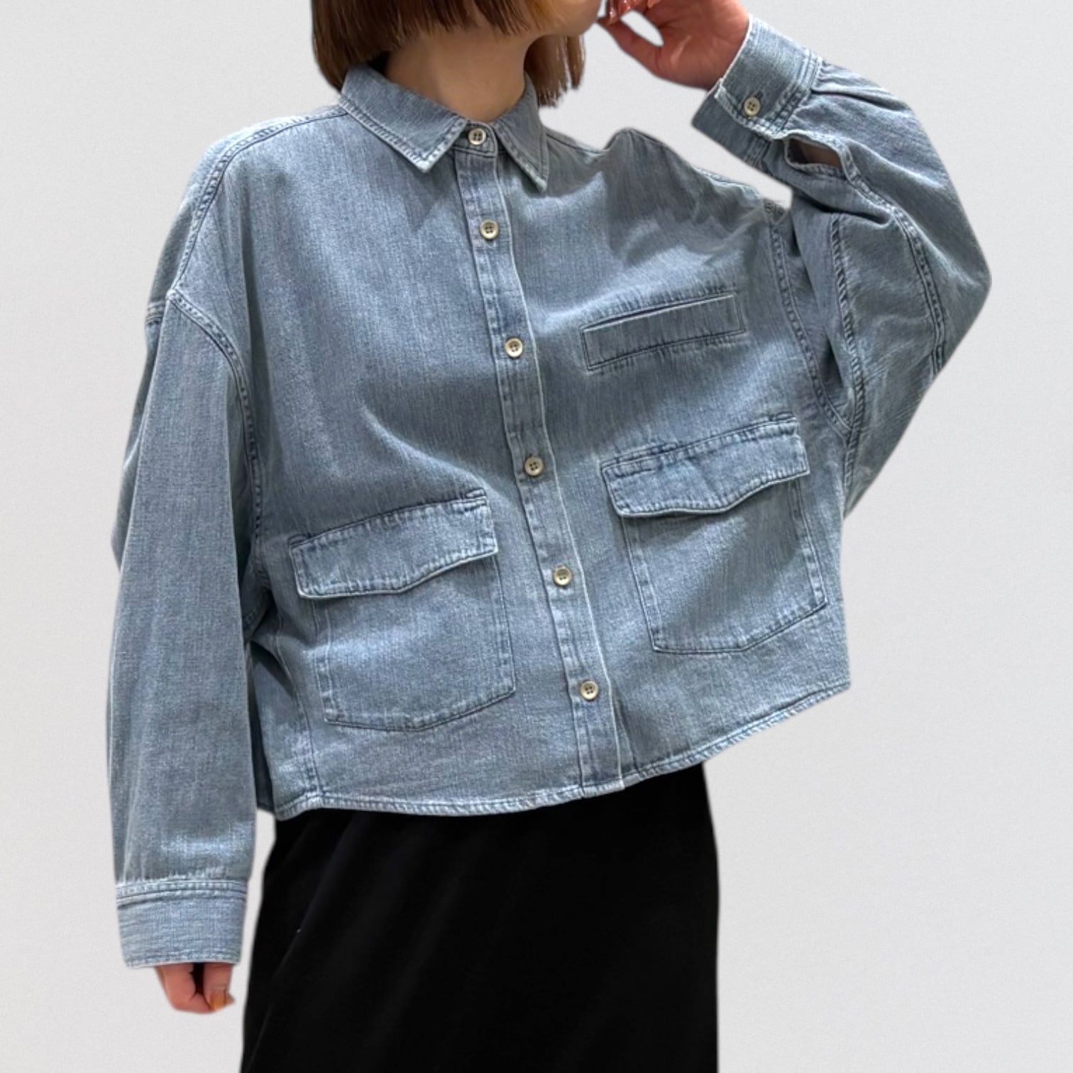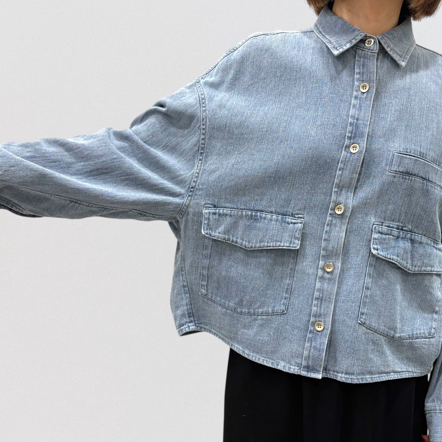 軽い着心地のデニムドルマンシャツです。