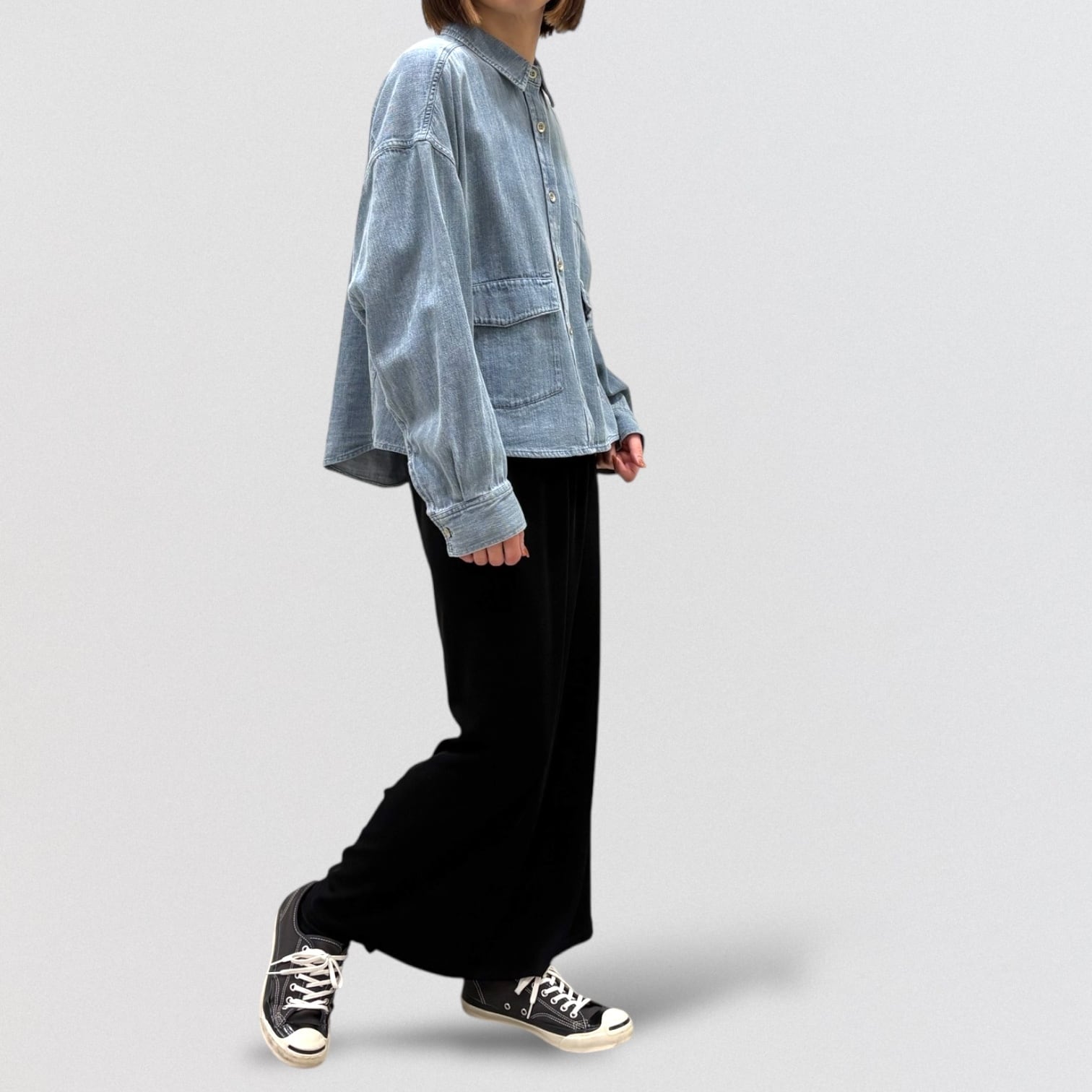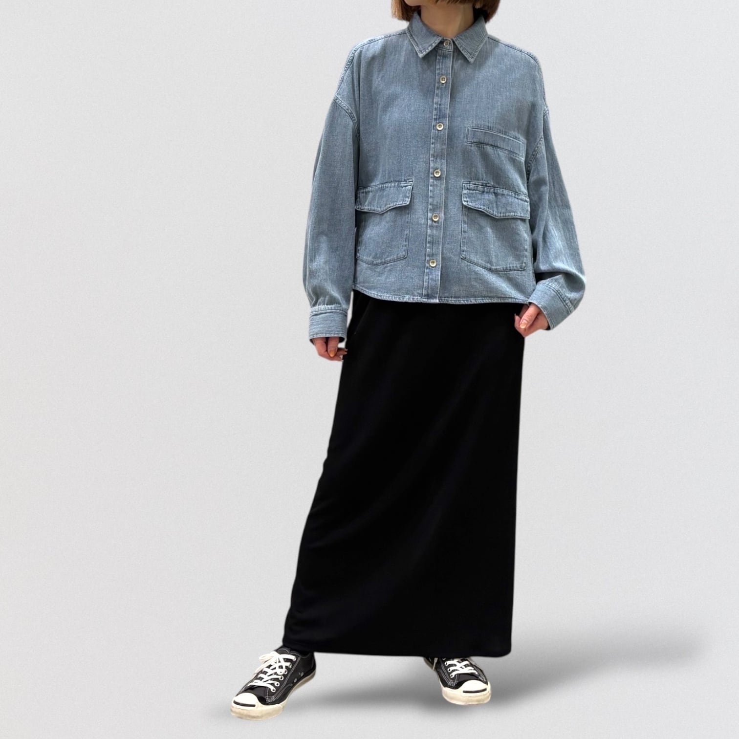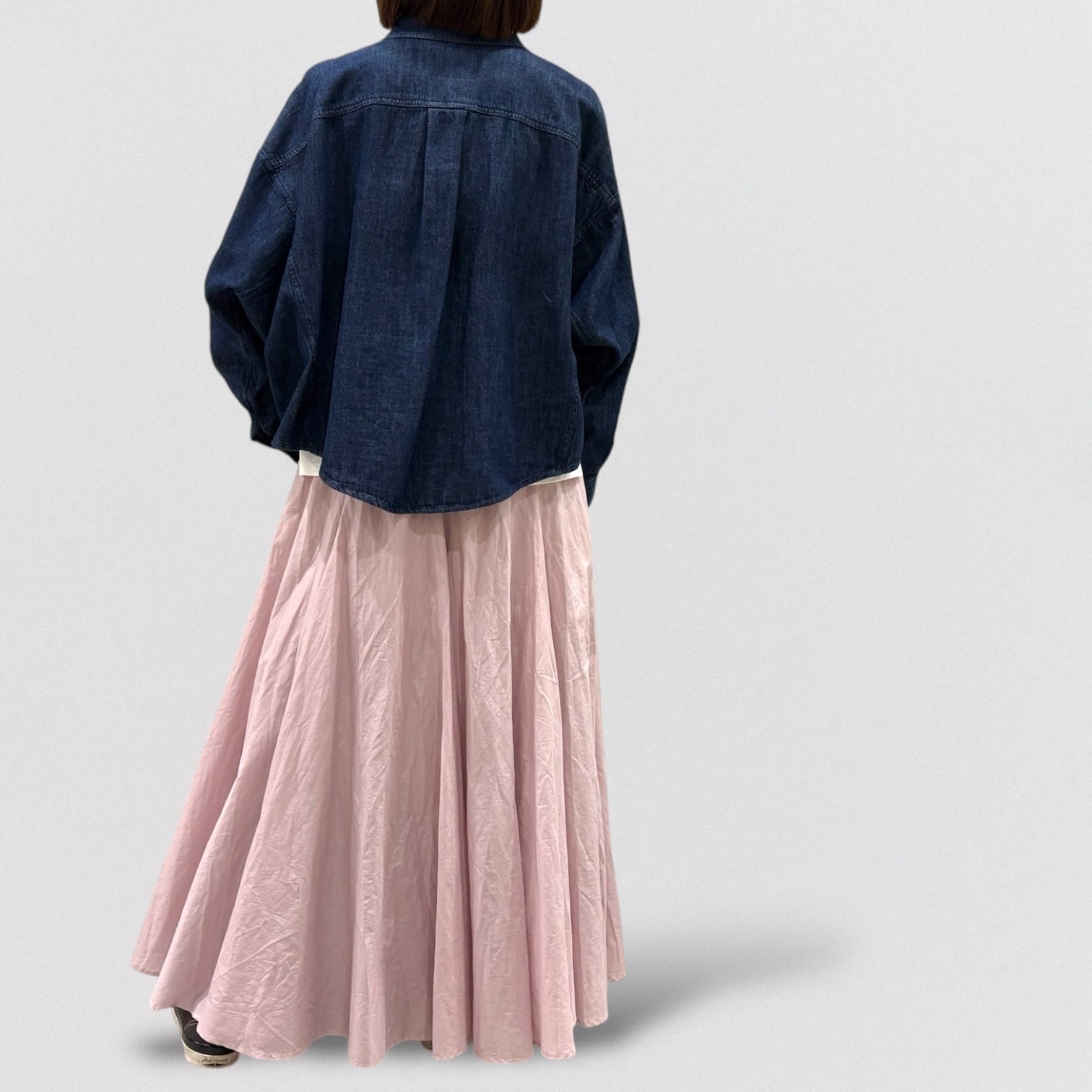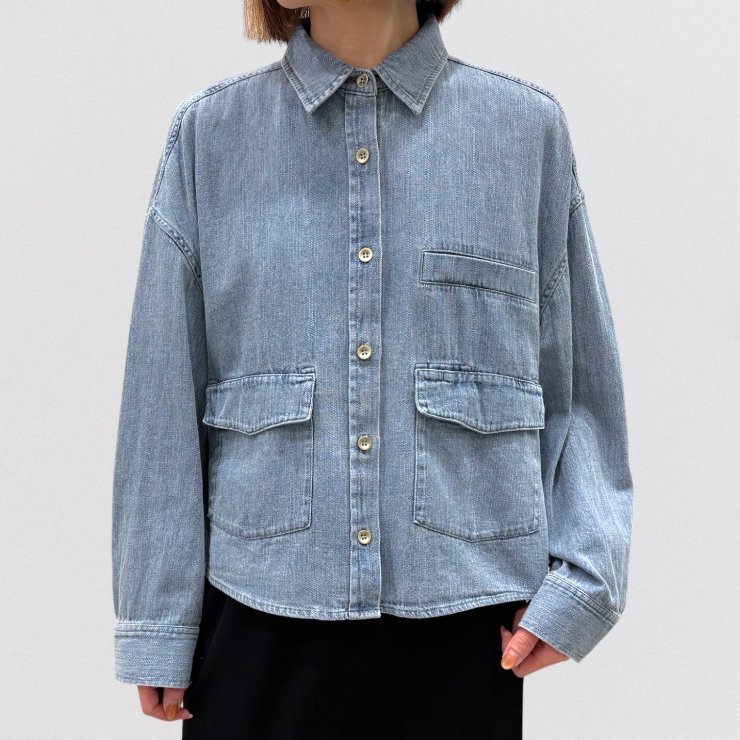 軽い着心地のデニムドルマンシャツです。
