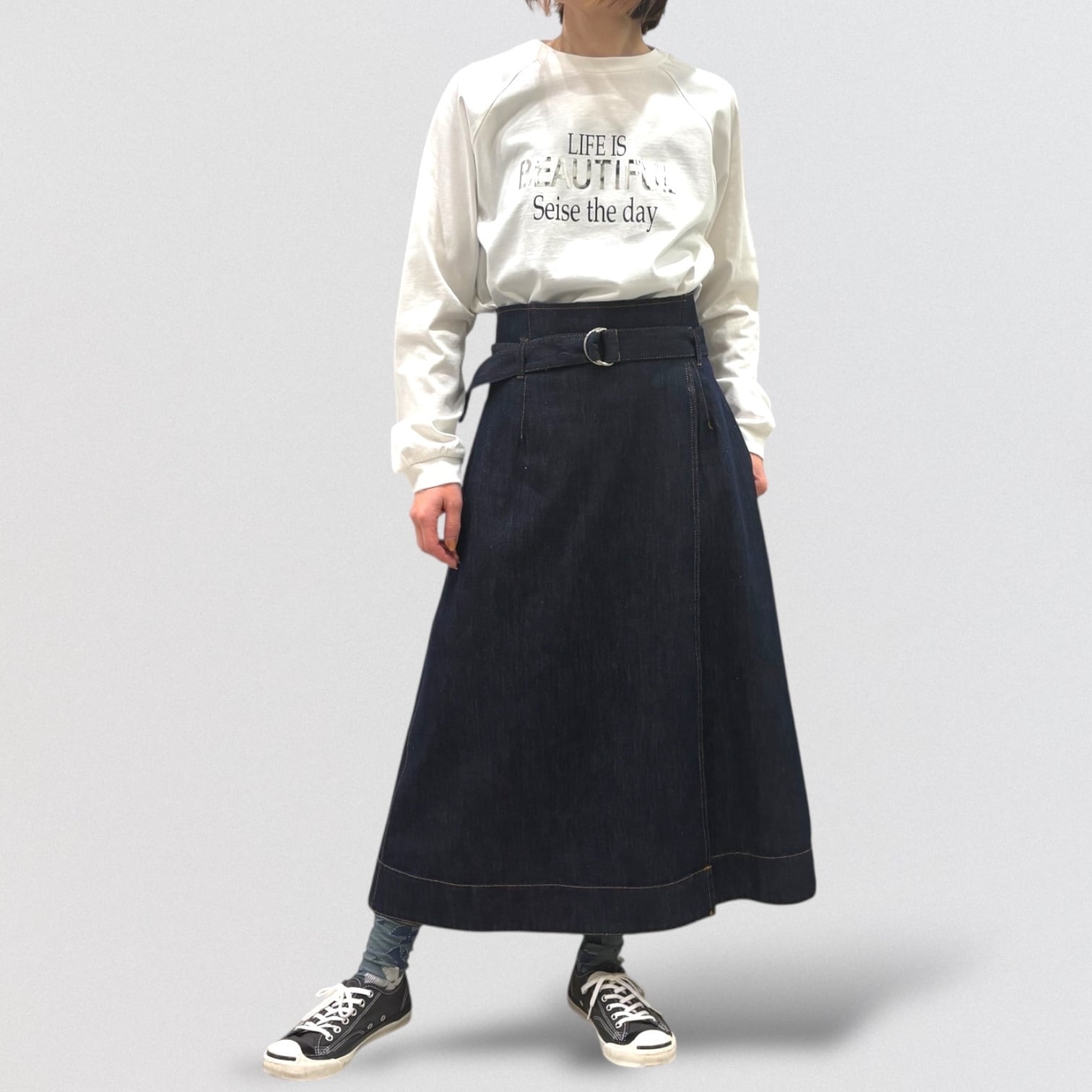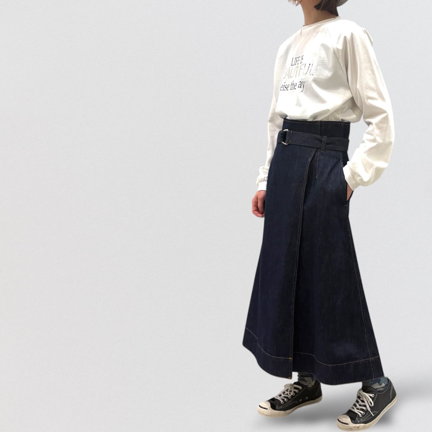 PASSIONEのデニム巻きスカートです。