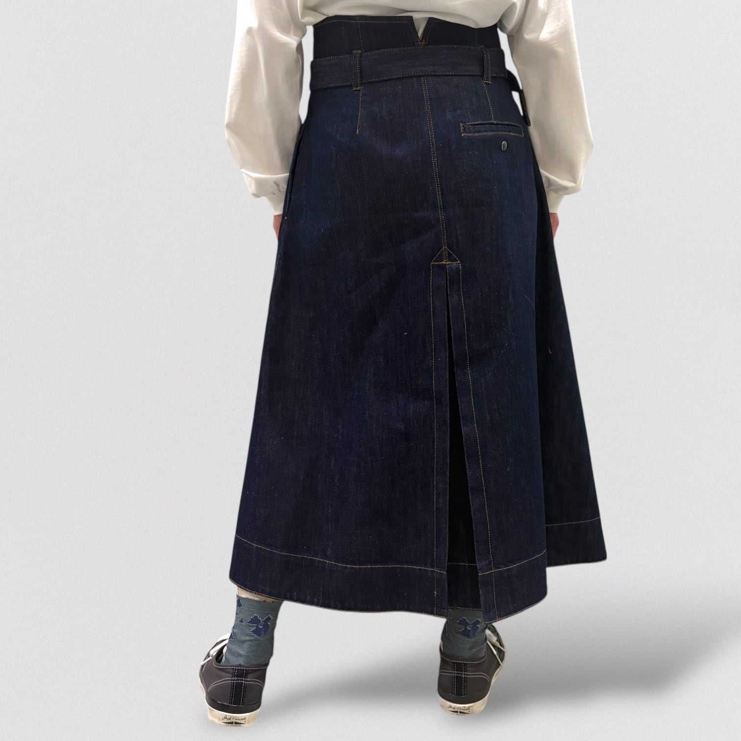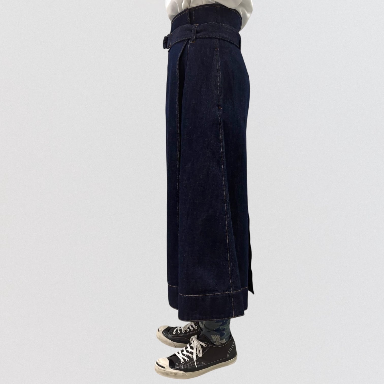 サイズ 総丈 79cm+ベルト上4.5cm ウエスト63~75cm(ボタンで調整)ヒップ100cm