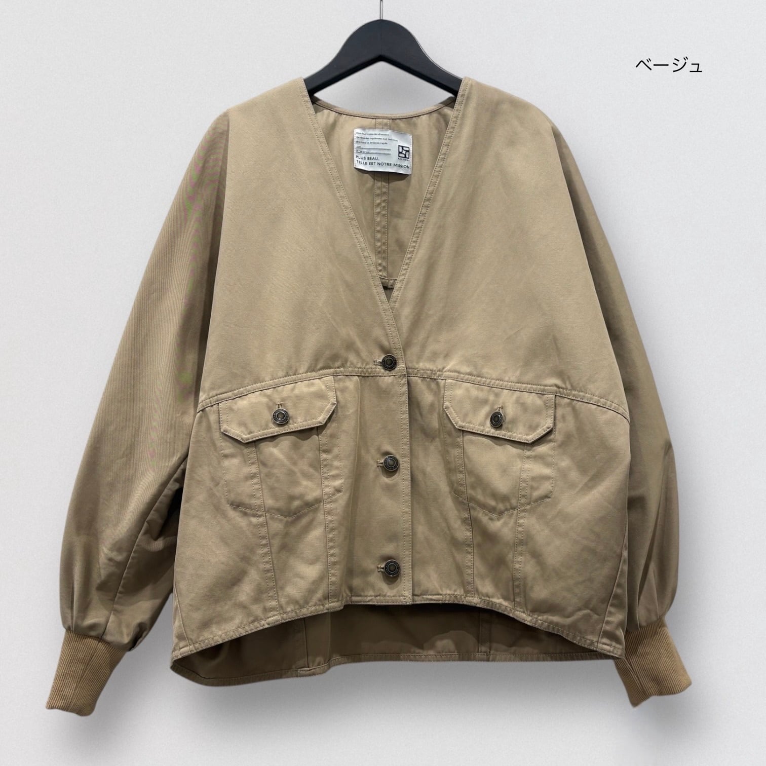 ミリタリーテイストをベースにしながらも、丸みのあるフォルムと柔らかなカラーリングで女性らしく昇華した一着です。