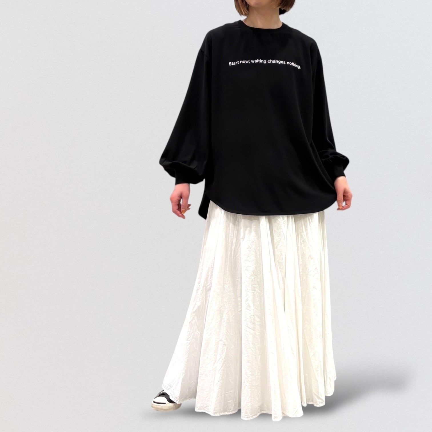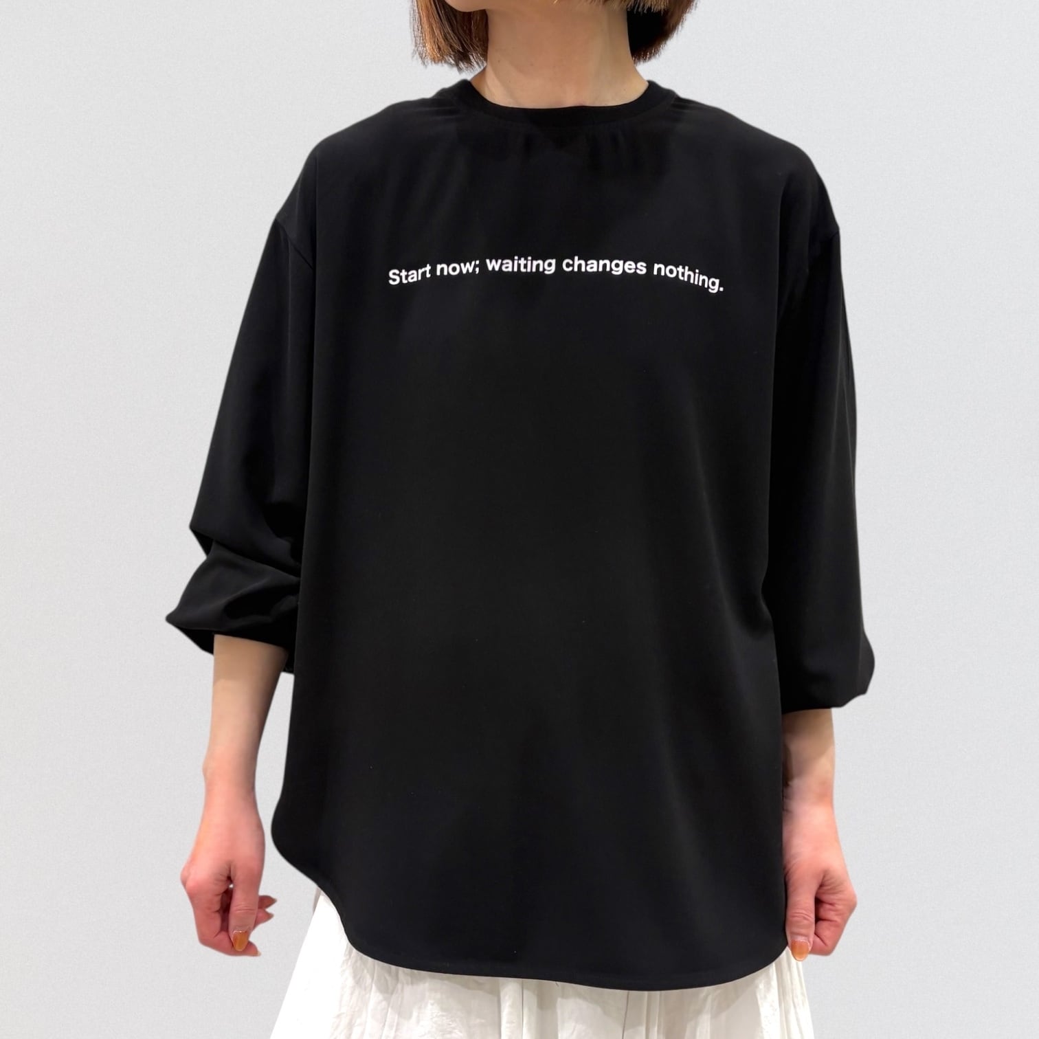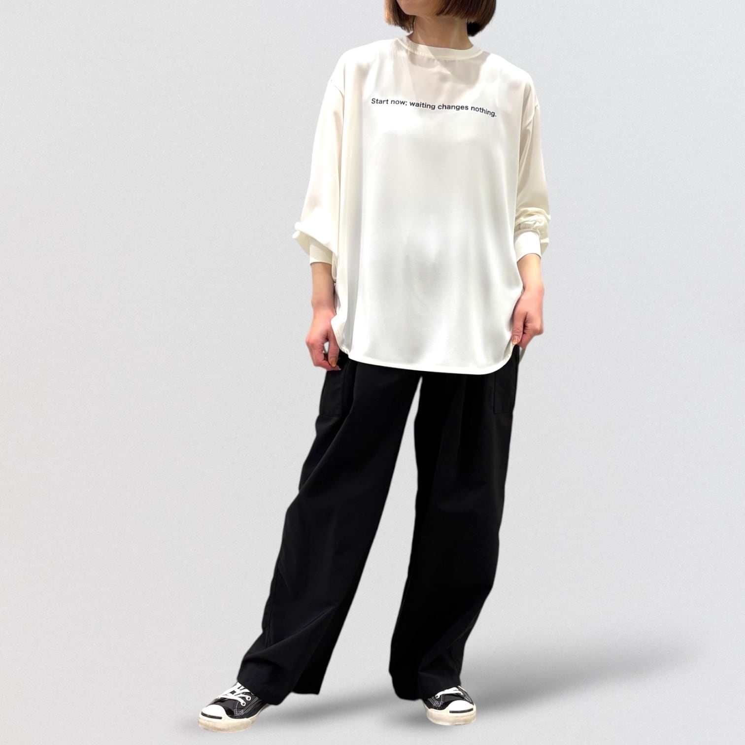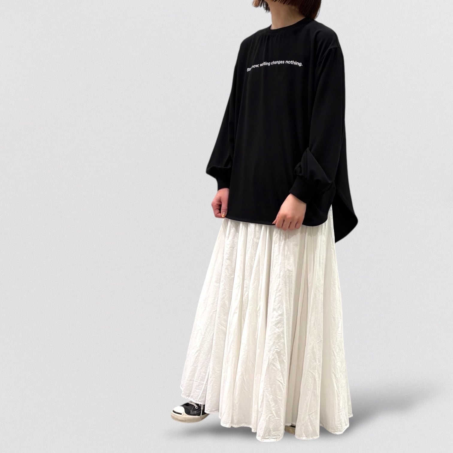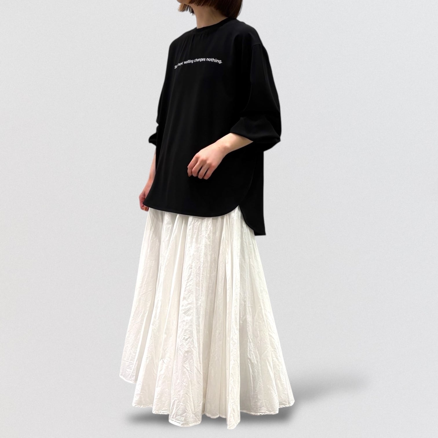 Tシャツとはちがう素材感と落ち感で、さりげないロゴが大人カジュアルの着回しに活躍。