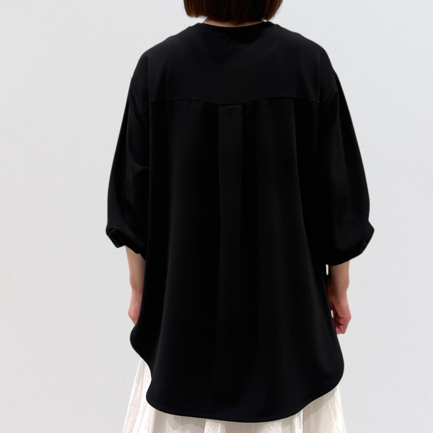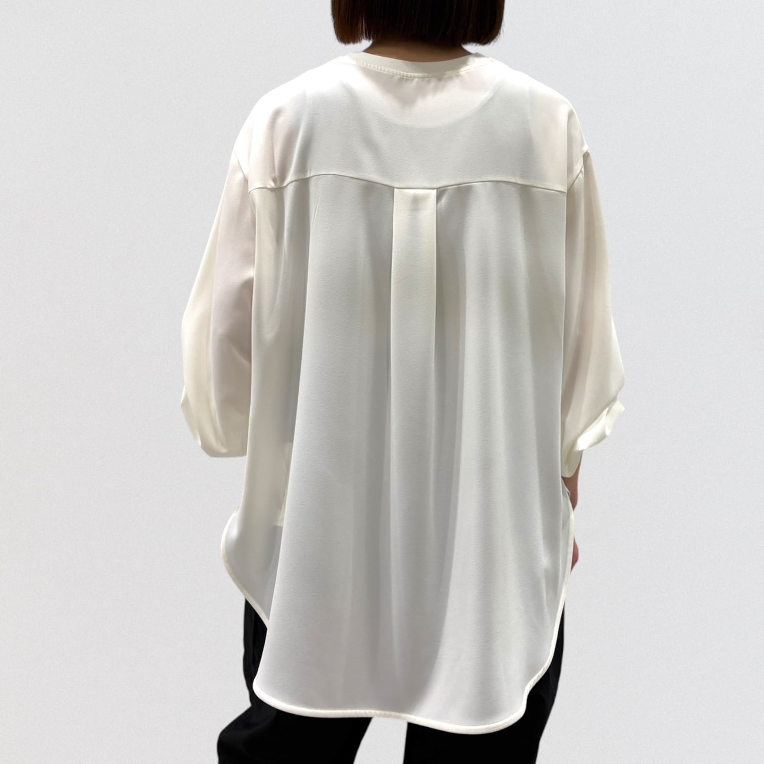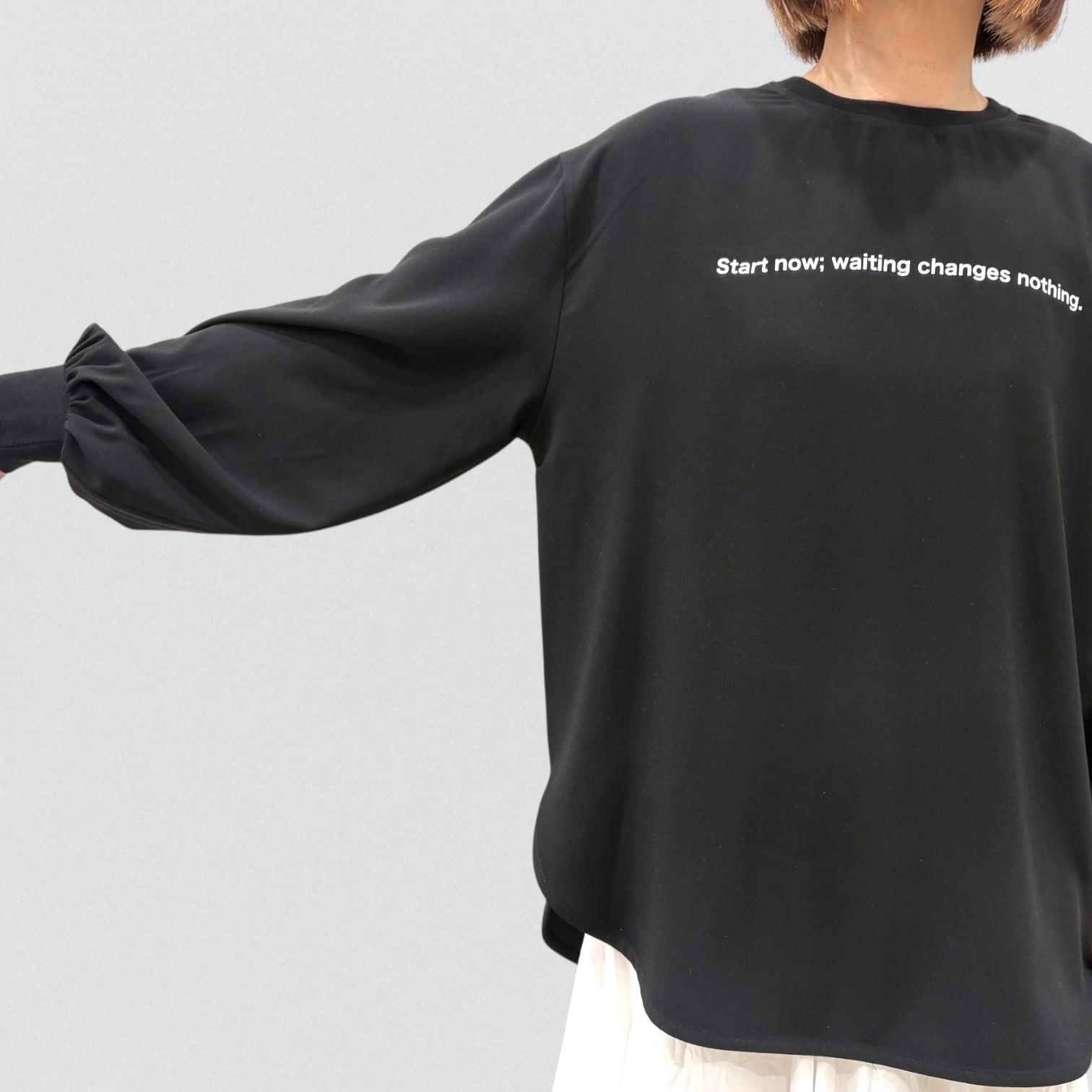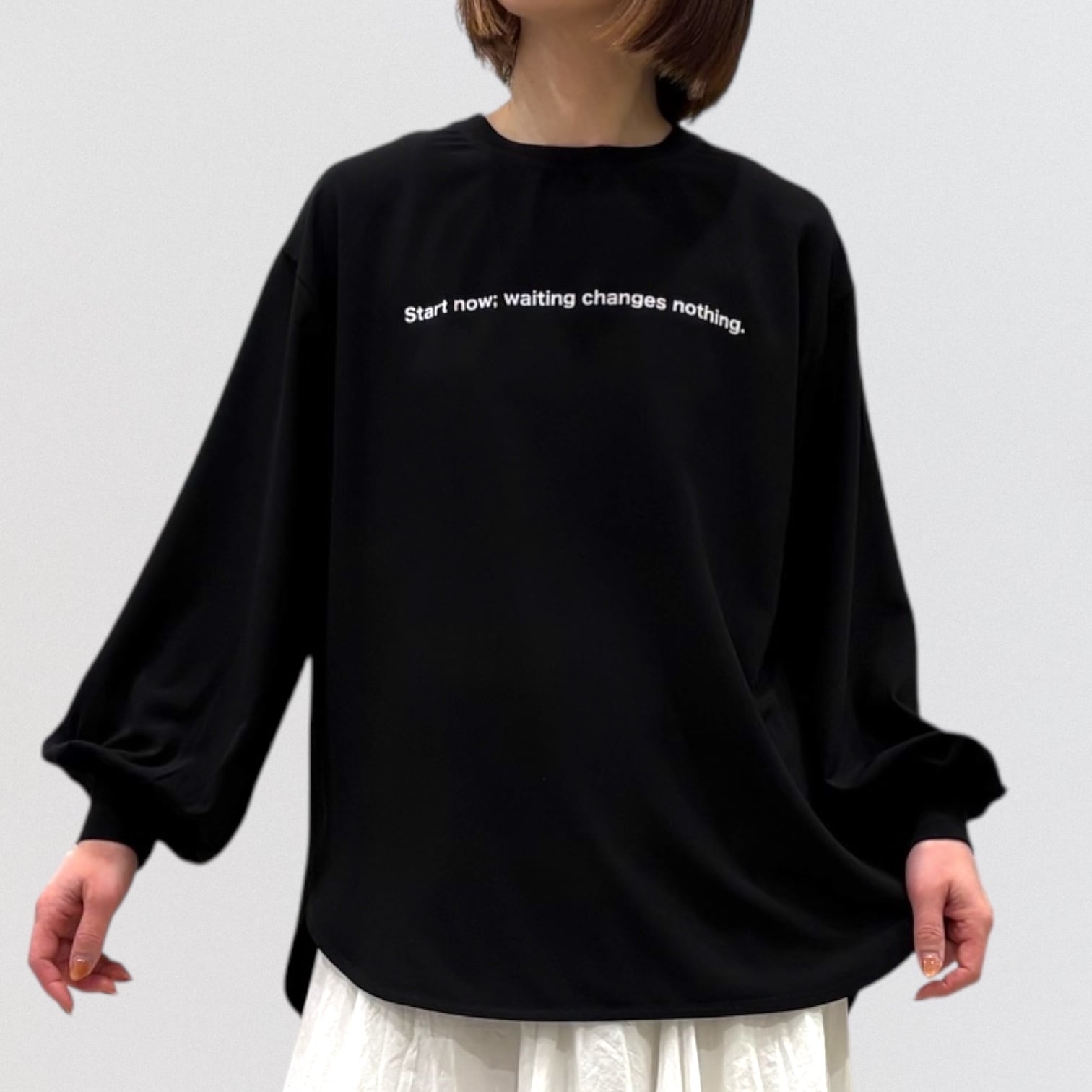 Tシャツとはちがう素材感と落ち感で、さりげないロゴが大人カジュアルの着回しに活躍。