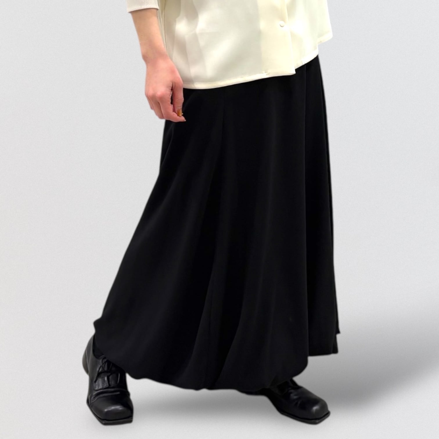 柔らかいジョーゼット素材を使用したジョーゼットバルーンロングスカートです。