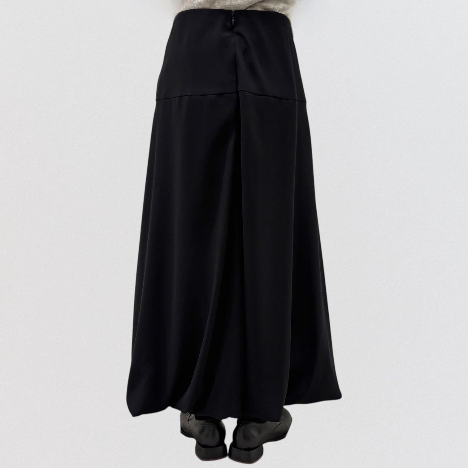 ウエストの後ろにジップが付いており、腰で留めて着用していただけるデザインです。