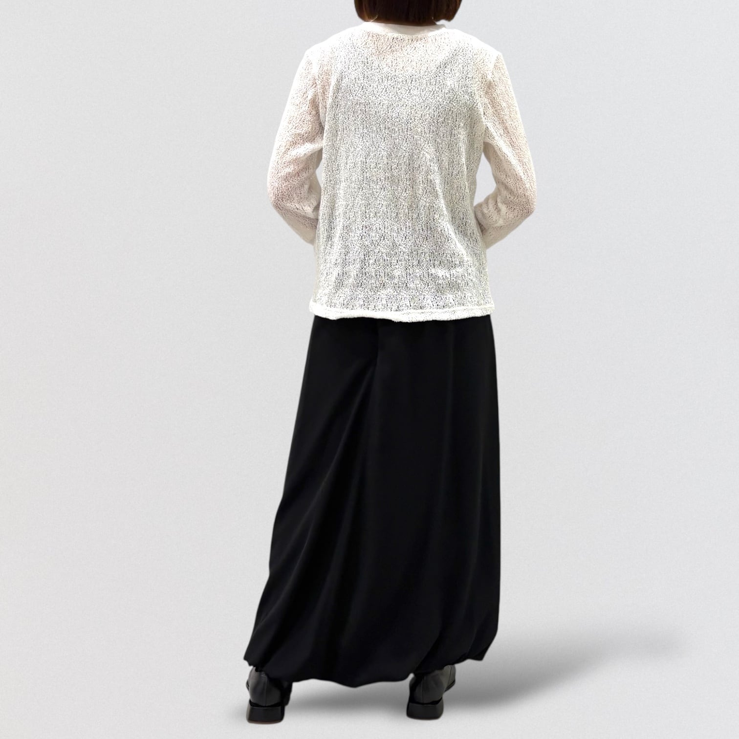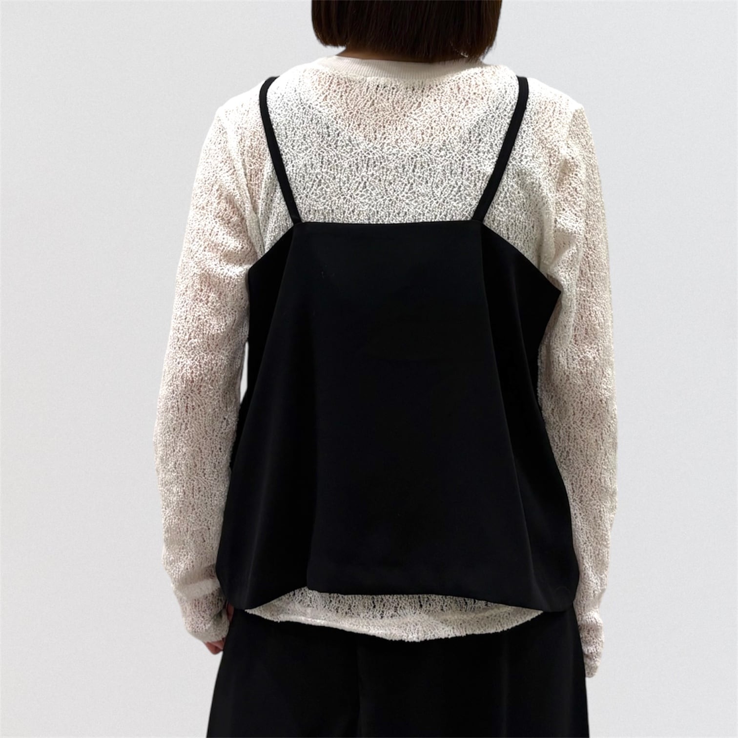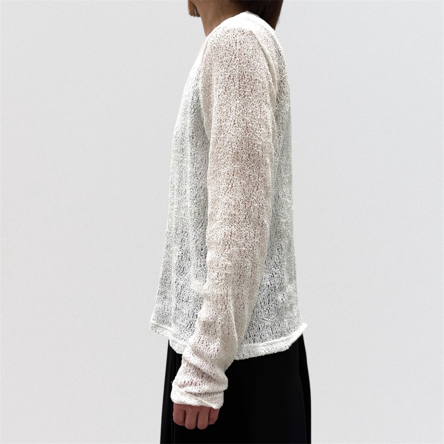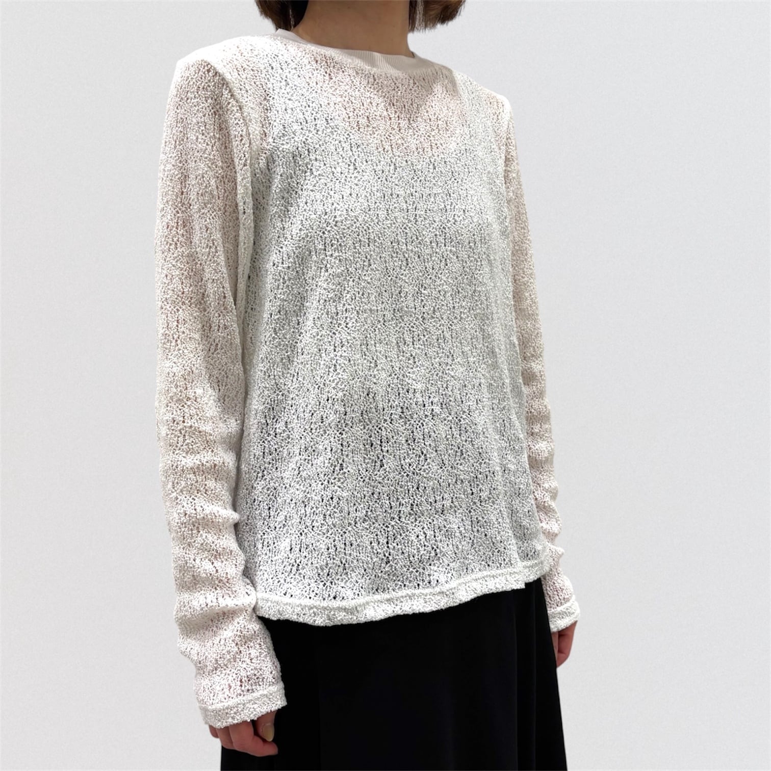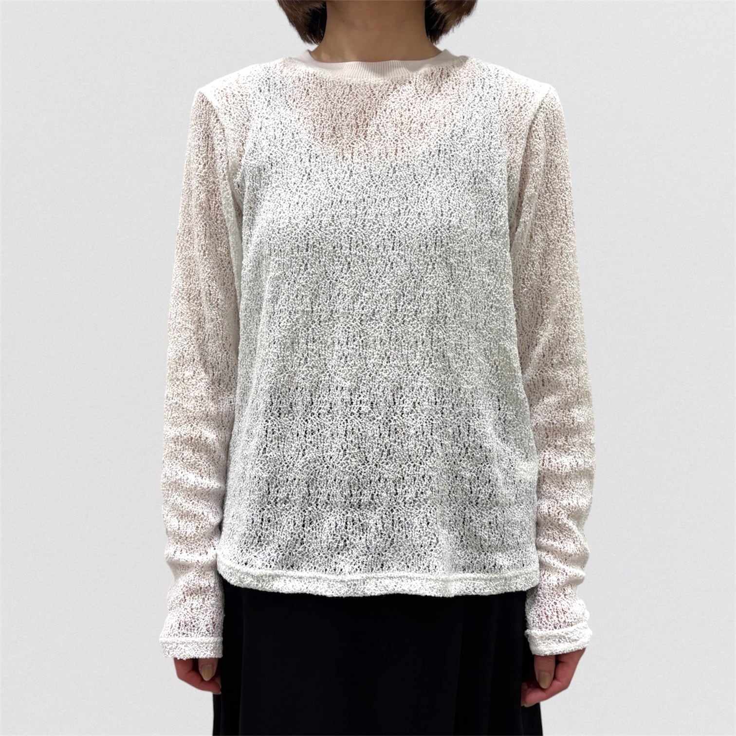 透け感がありインナーのお色目が見えやすい繊細な編み目と柔らかな膨らみが特徴的。