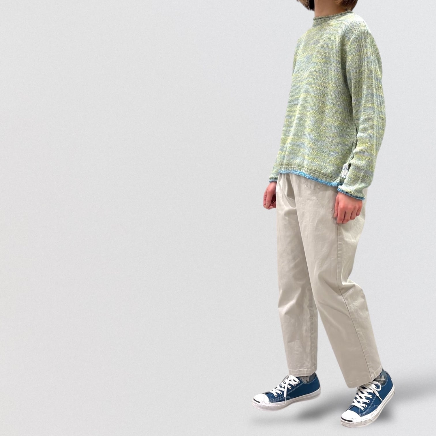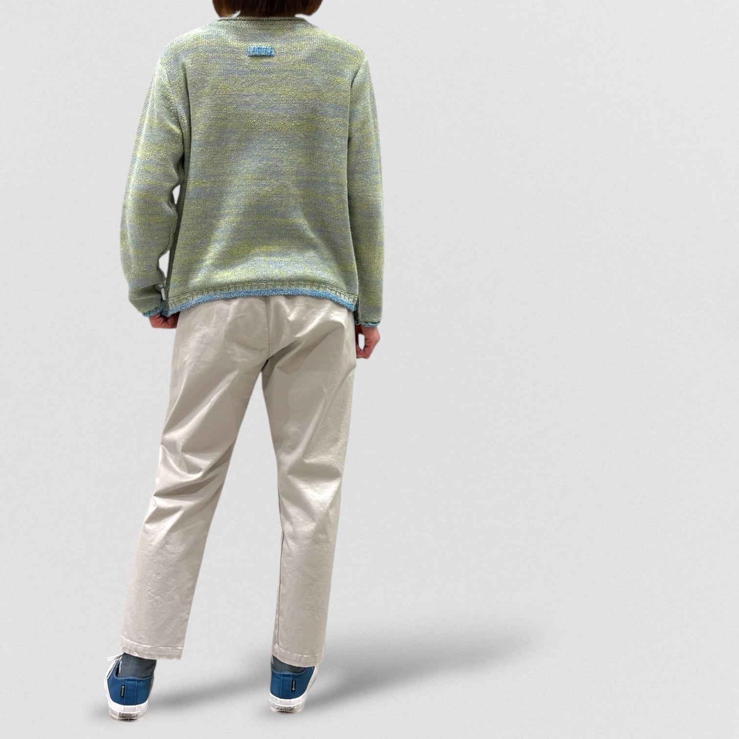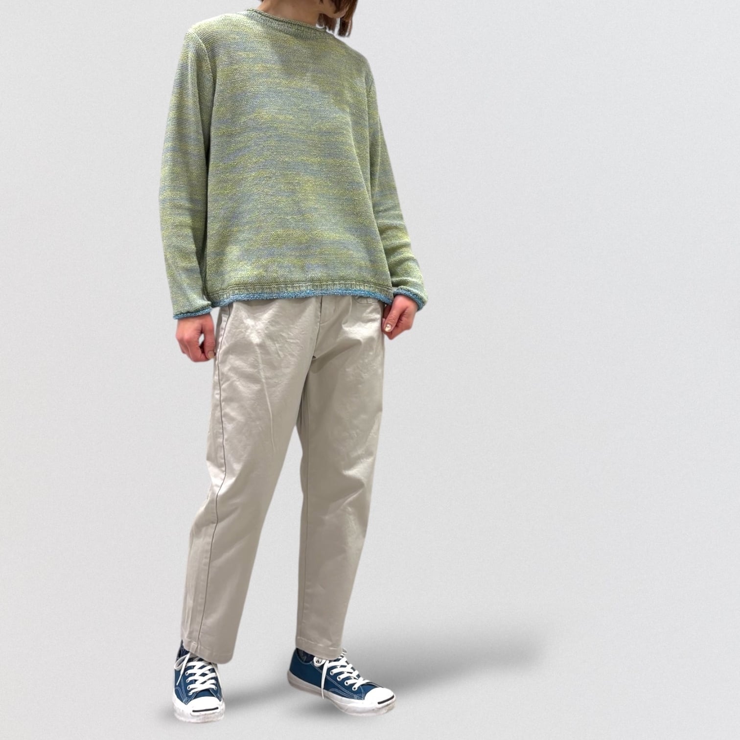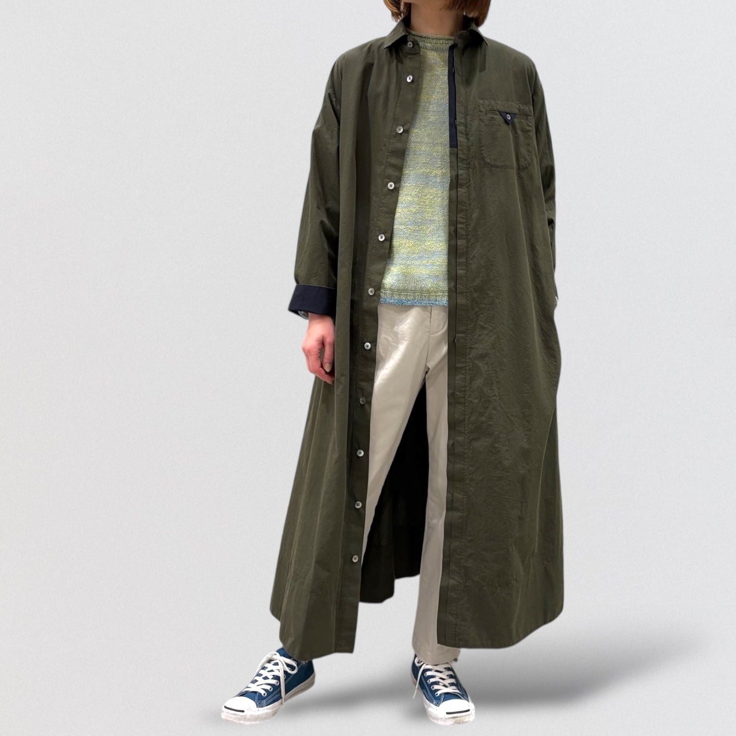 ワンピースやチュニック等に合わせやすいやや細身のシルエット。