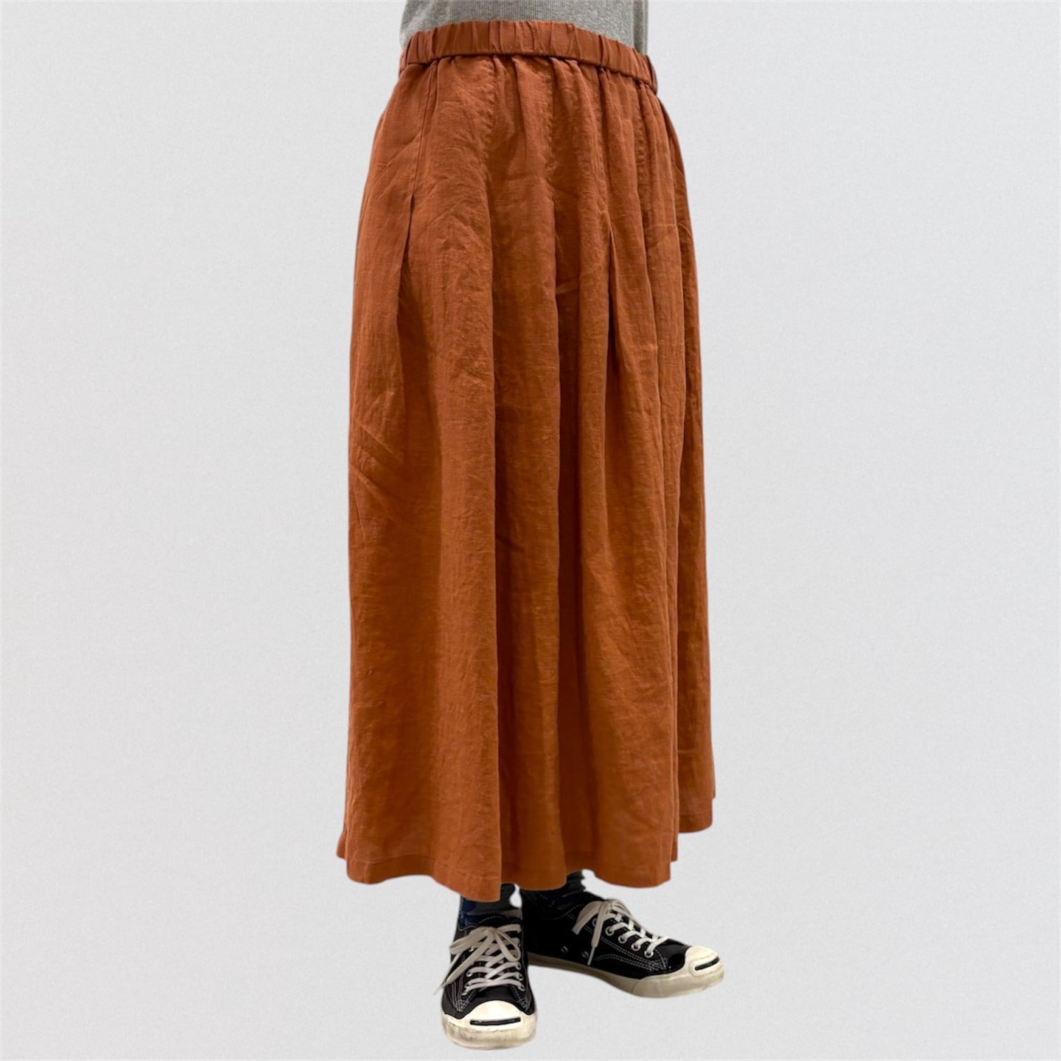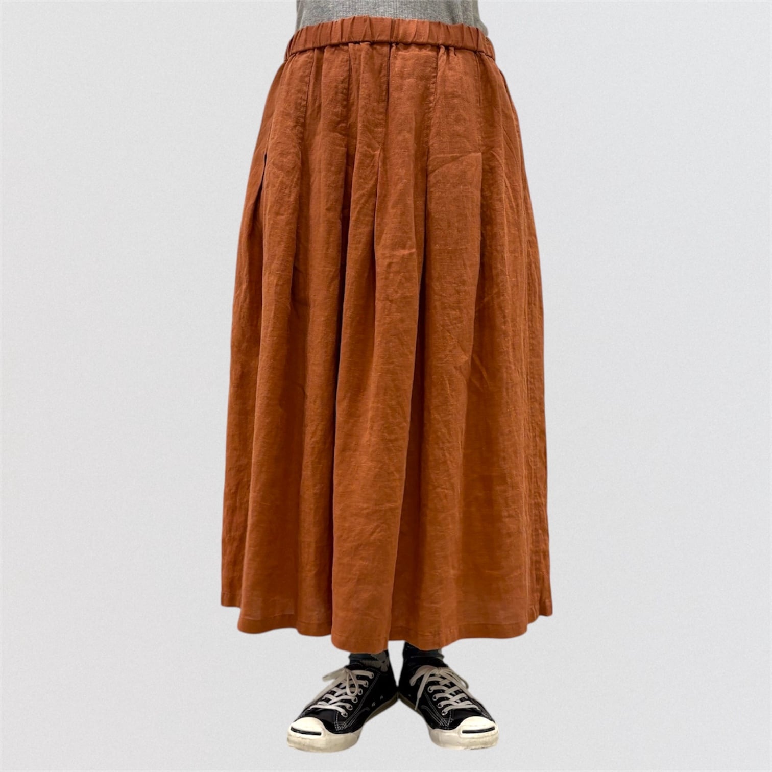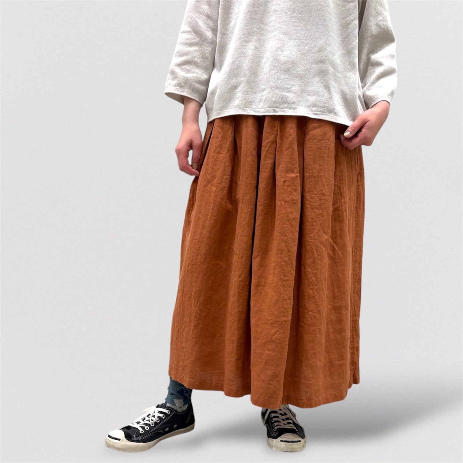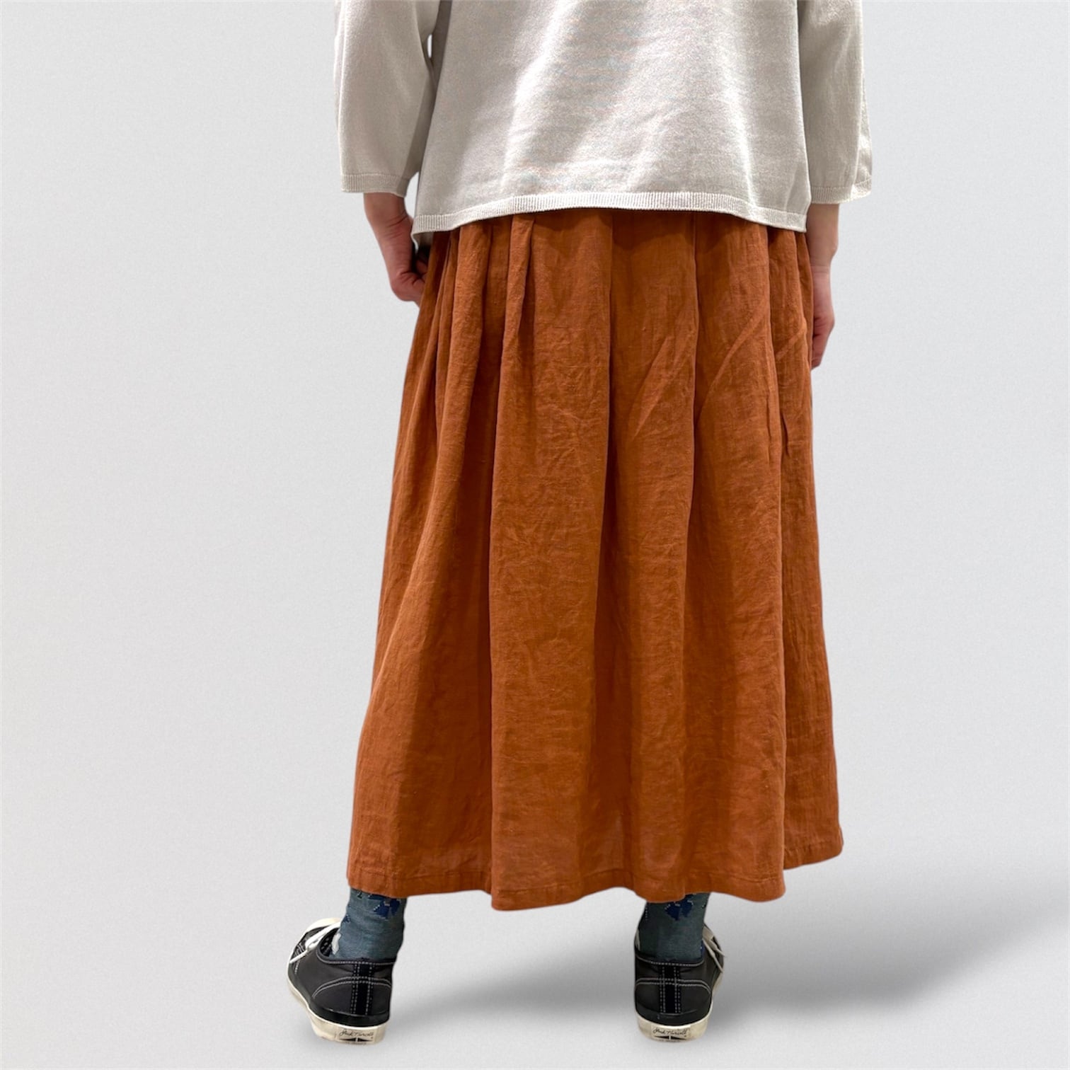 フレンチリネンを使ったタックスカート。