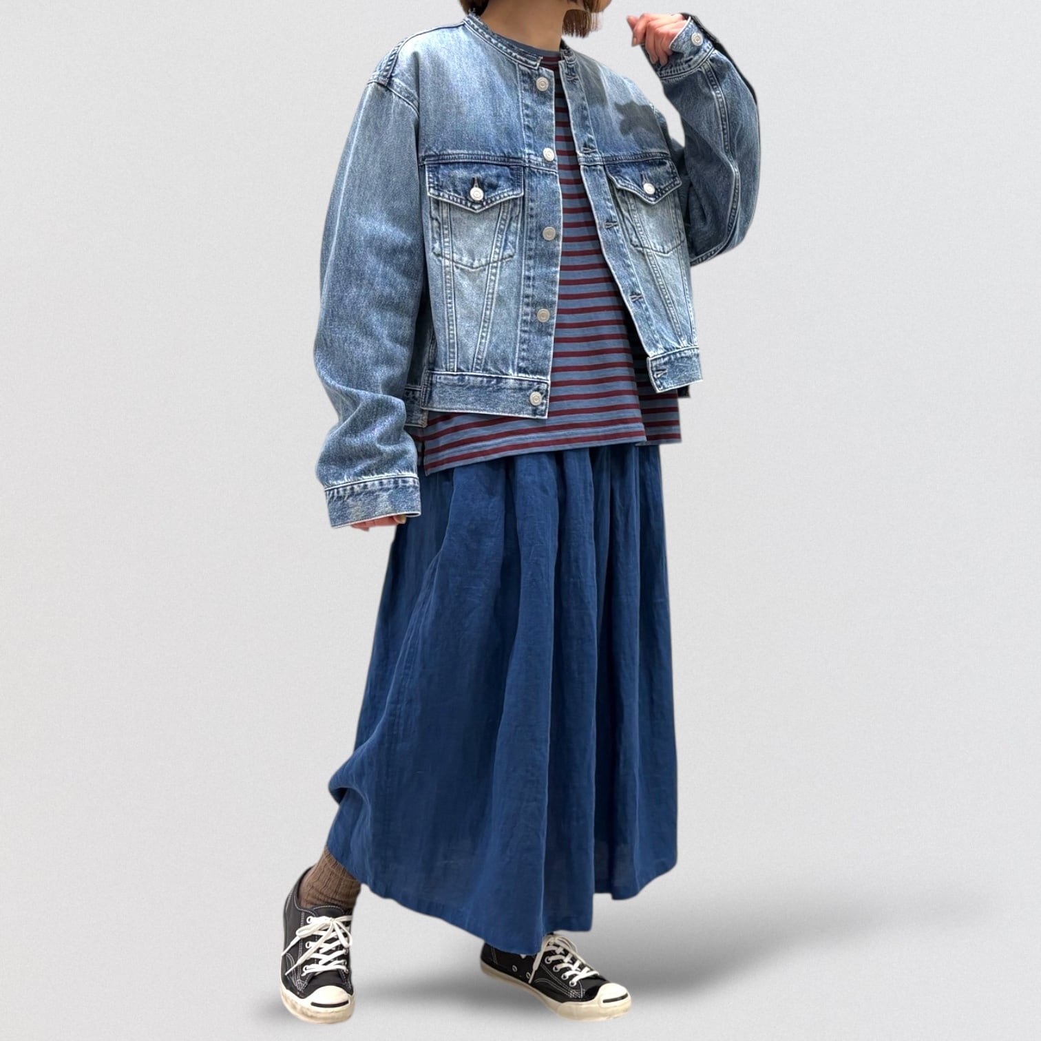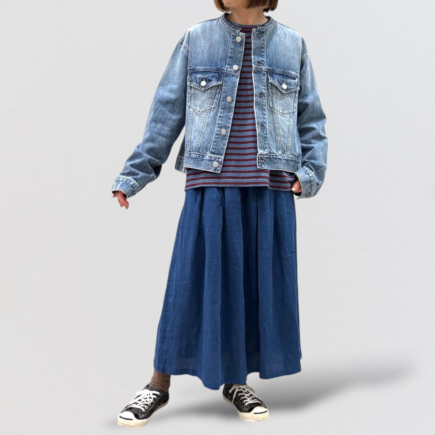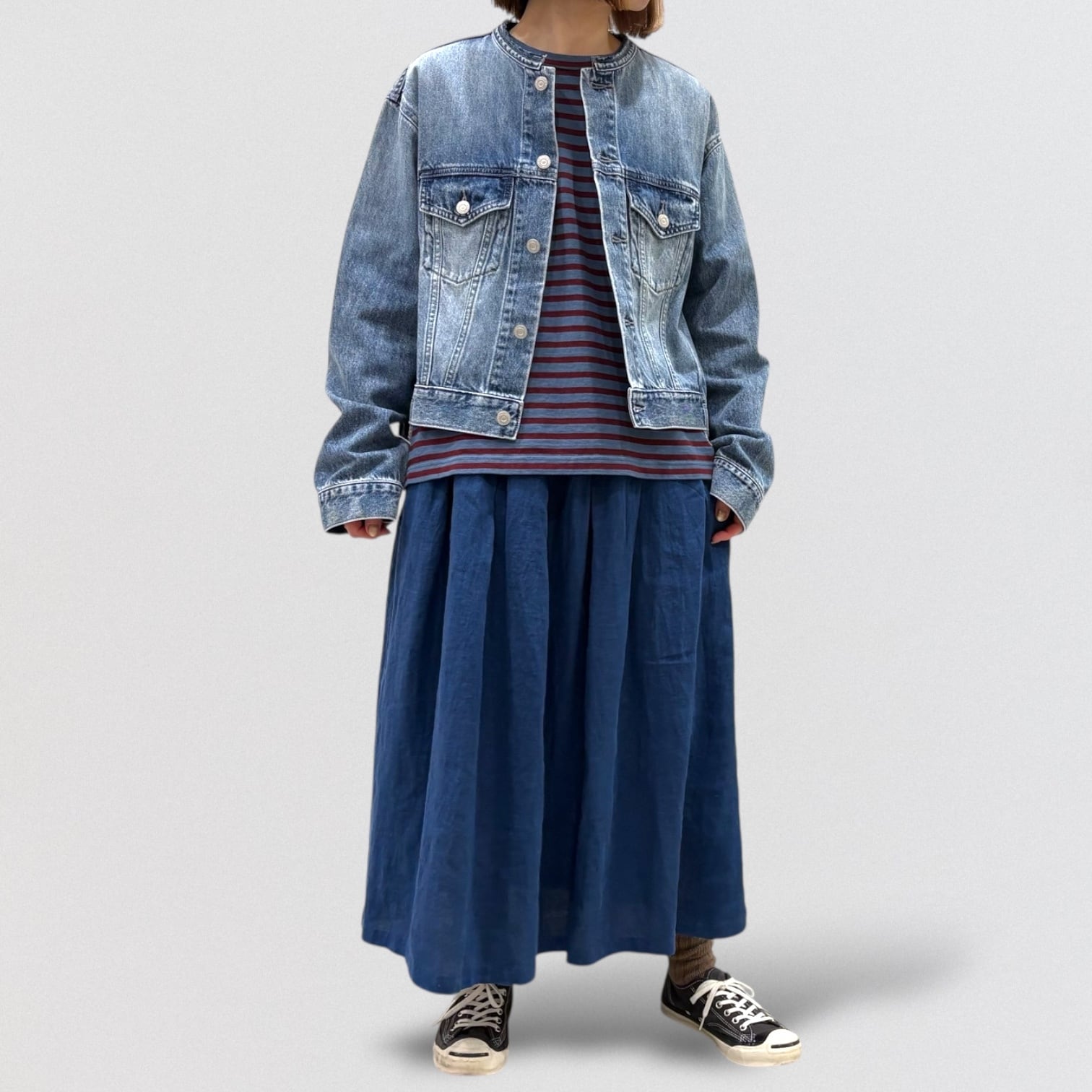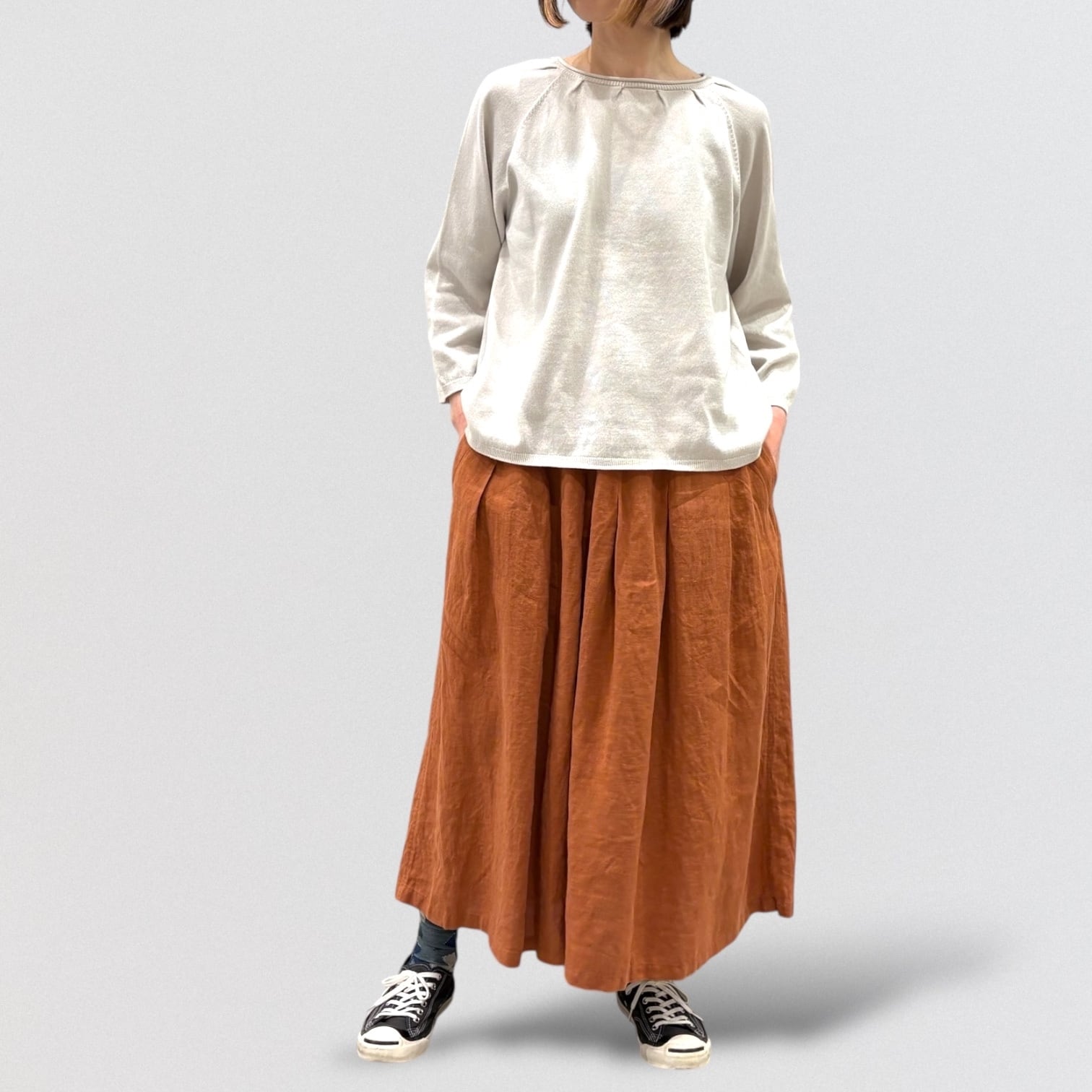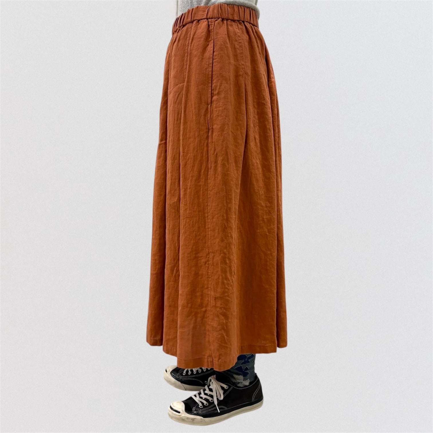 フレンチリネンを使ったタックスカート。
