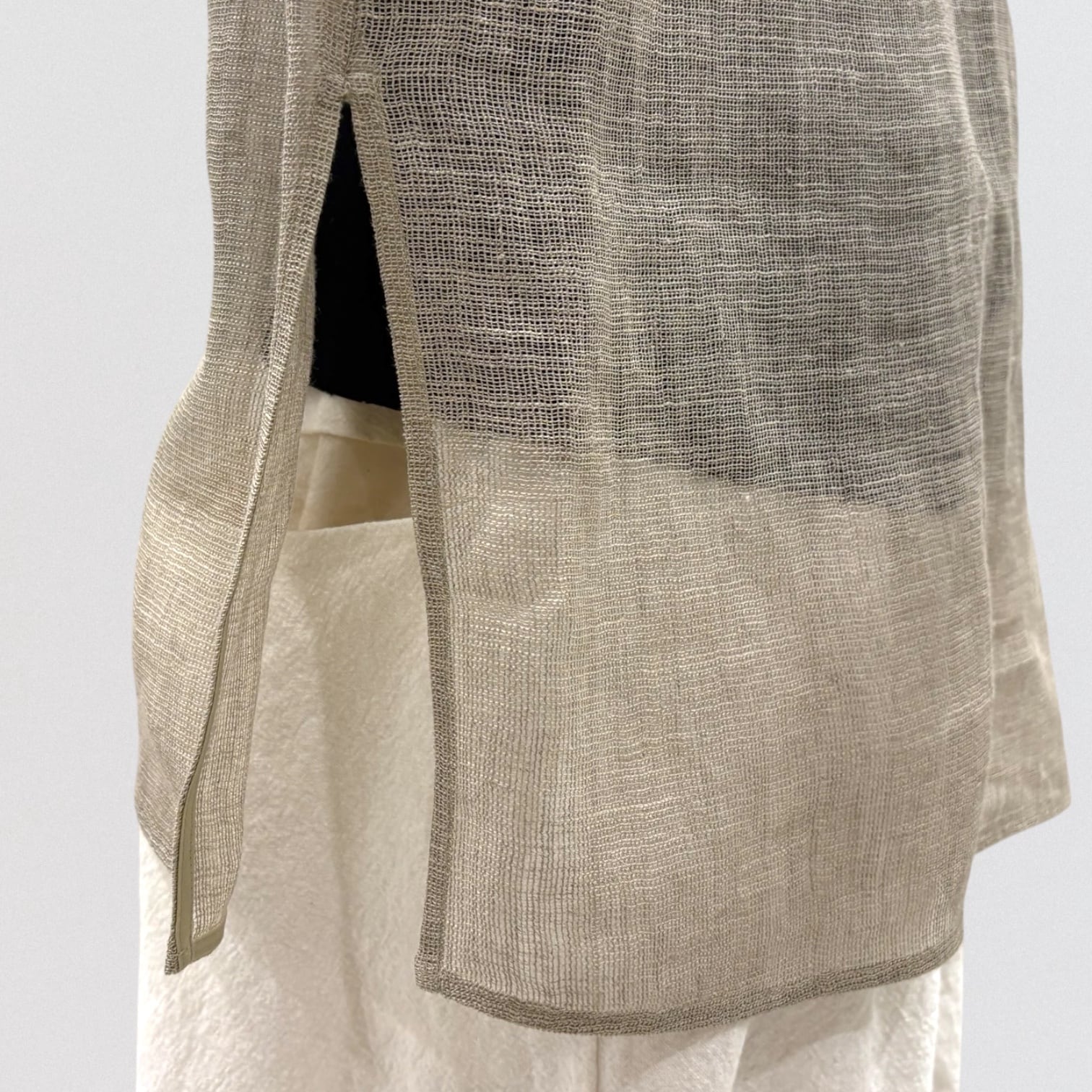 さらっとしたリネン100%のメッシュ素材で麻のチクチク感はありません。