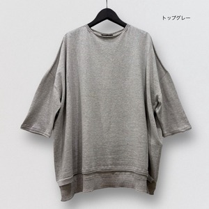 やわらかな薄手ニットの七分袖チュニックプルオーバー。