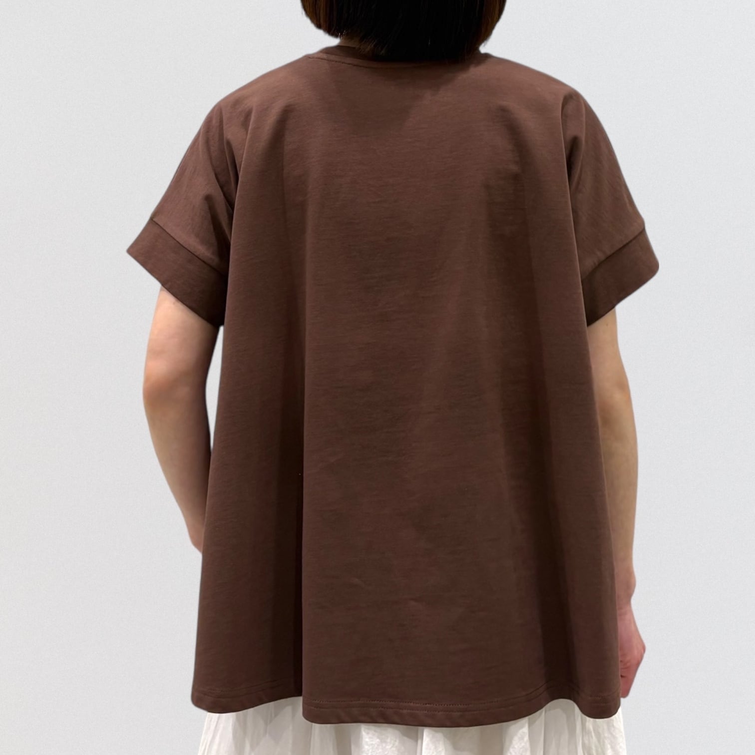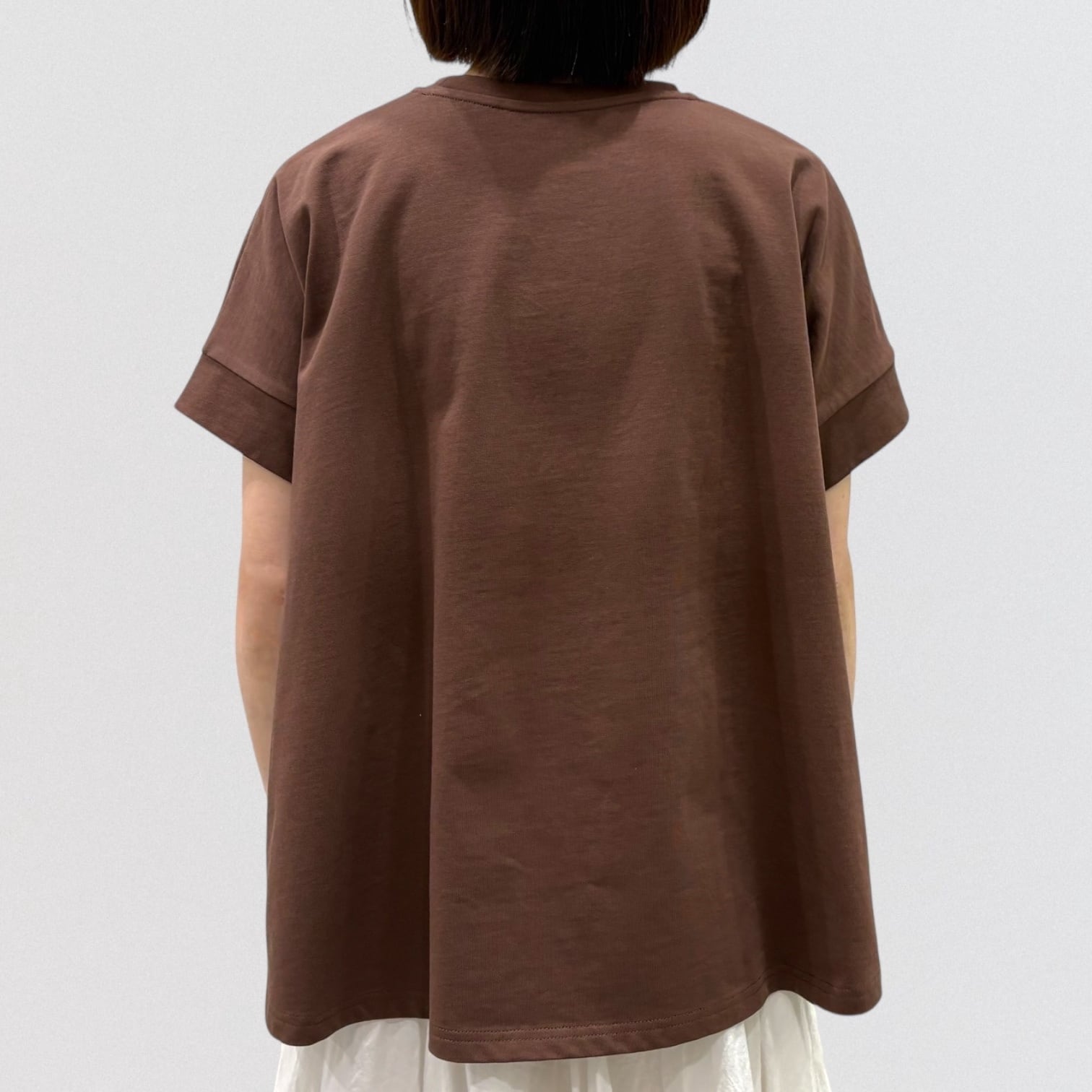 シンプルでどんなボトムとも相性の抜群。