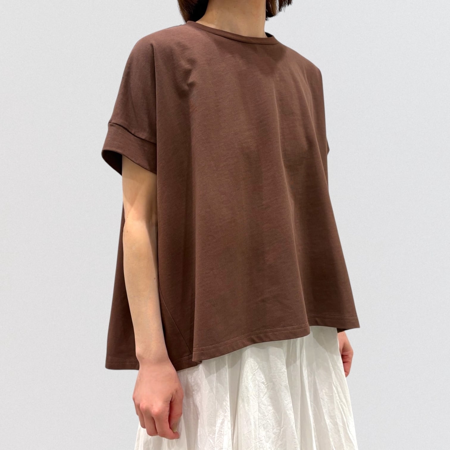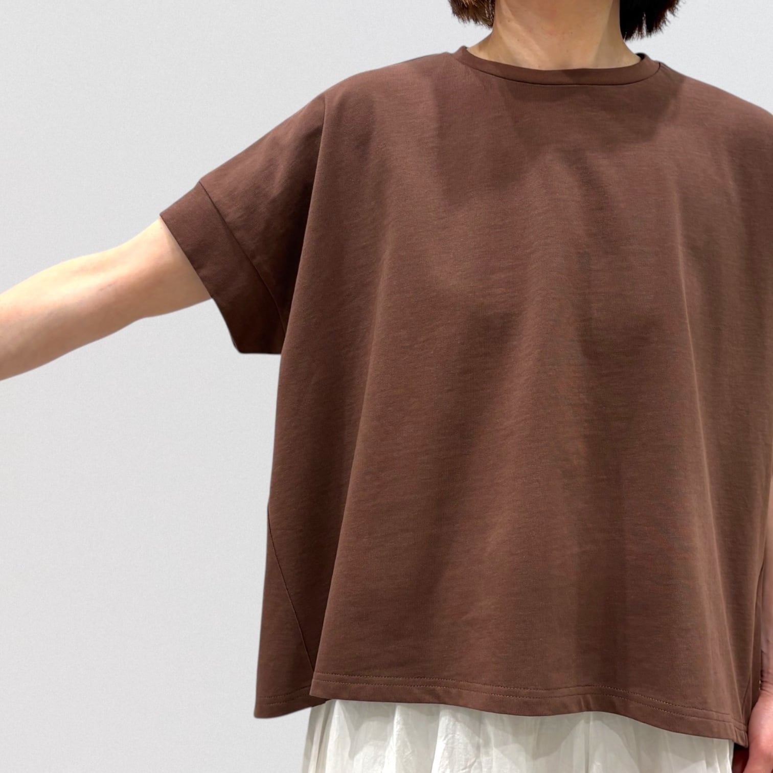 袖のラインもスッキリと見える着心地の良いトップスです。