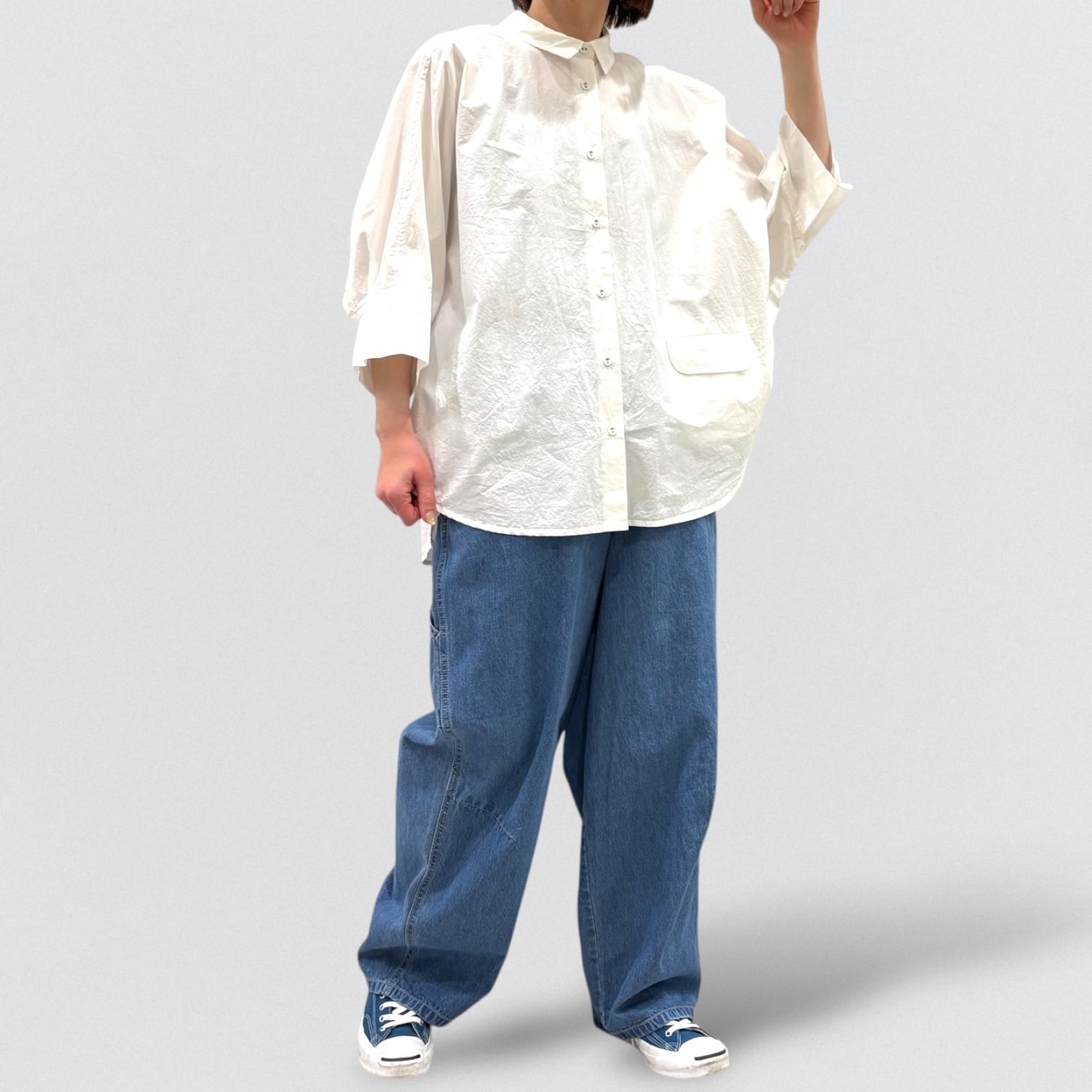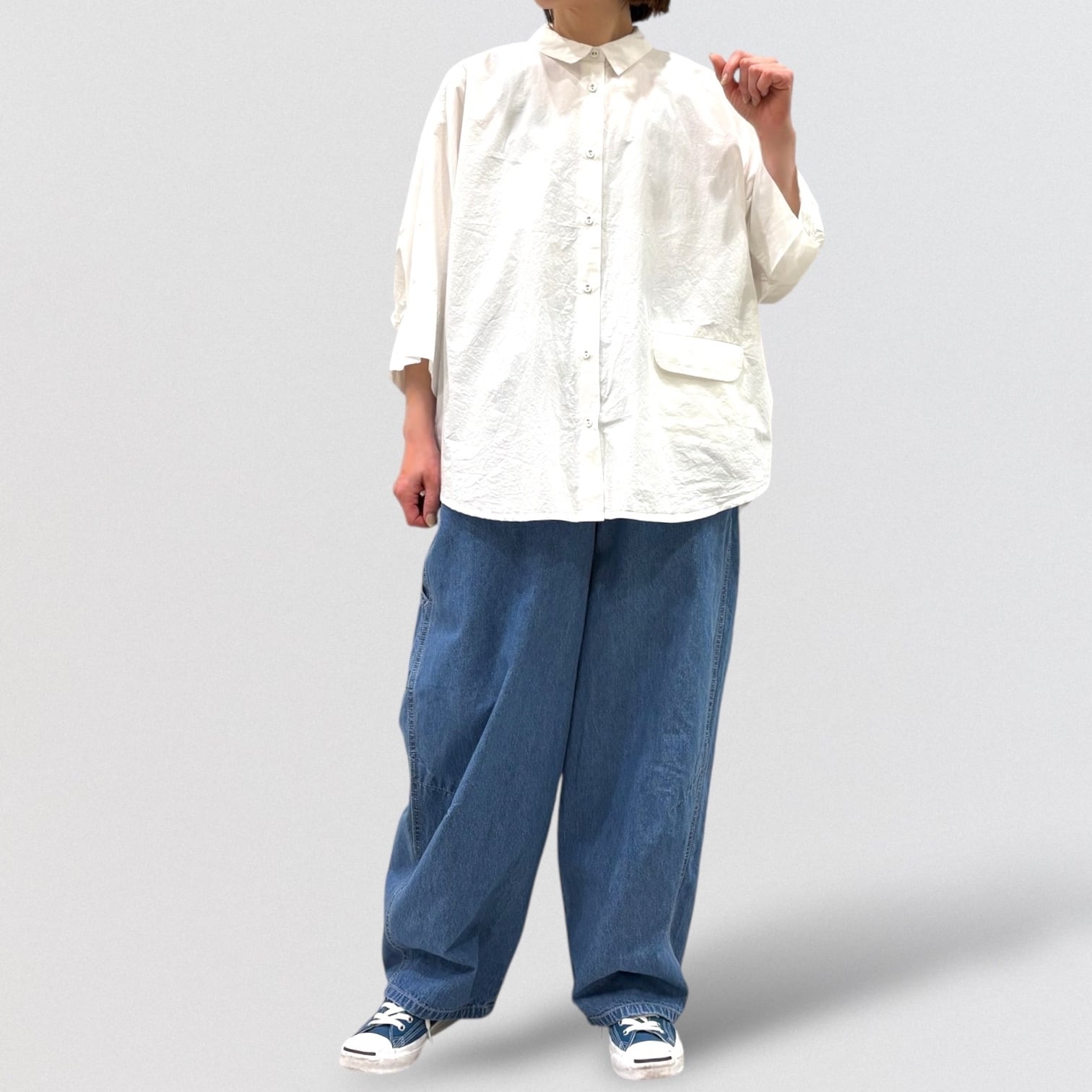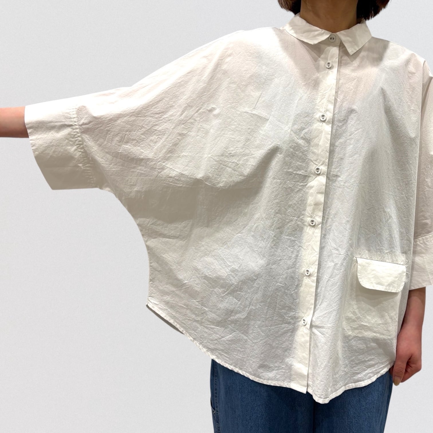 TANGの定番コットンドルマンシャツです。