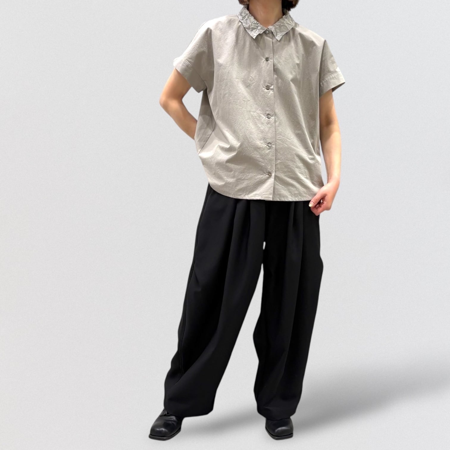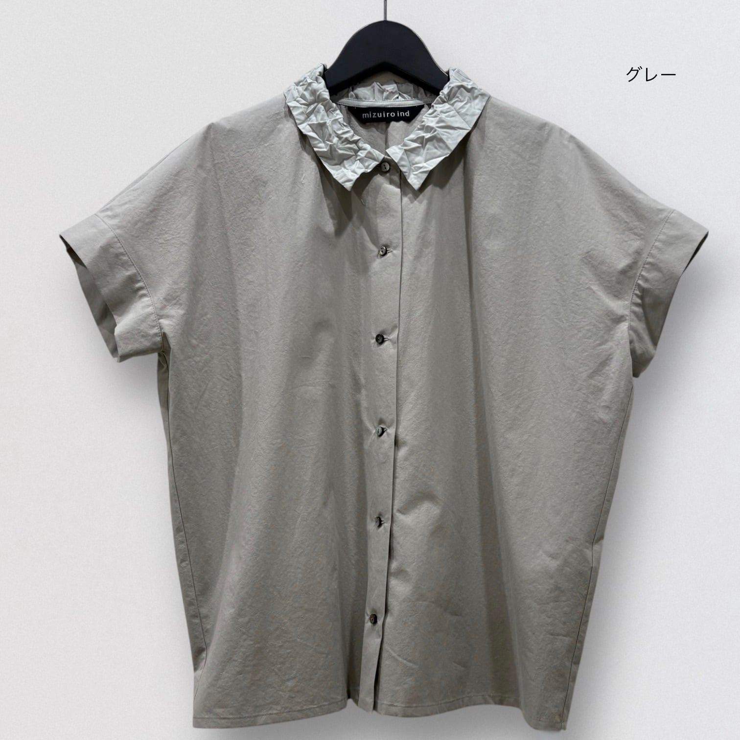 ワッシャー素材の襟は身頃の生地感とはカラーが異なり首元のアクセントになり、顔映りを華やかにしてくれます。